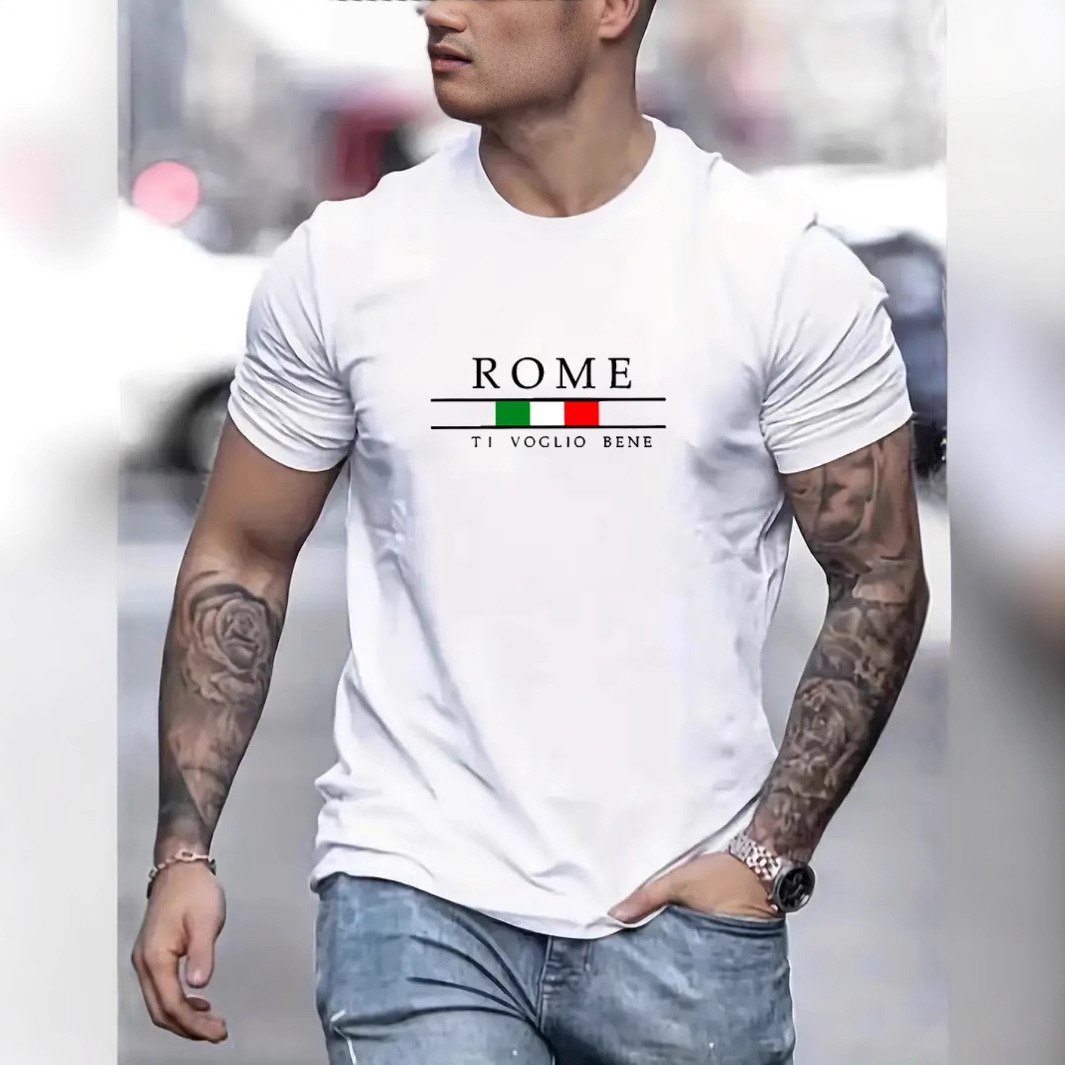 국경 간 대외 무역 남성 티셔츠 새로운 로마 편지 인쇄 패턴 짧은 소매 유럽과 미국베이스 코트 승무원 목 스웨트 셔츠