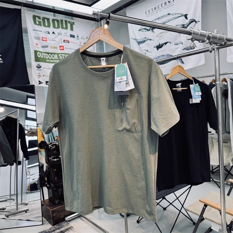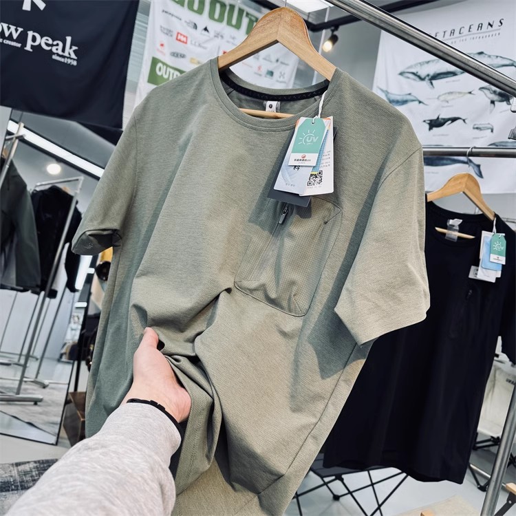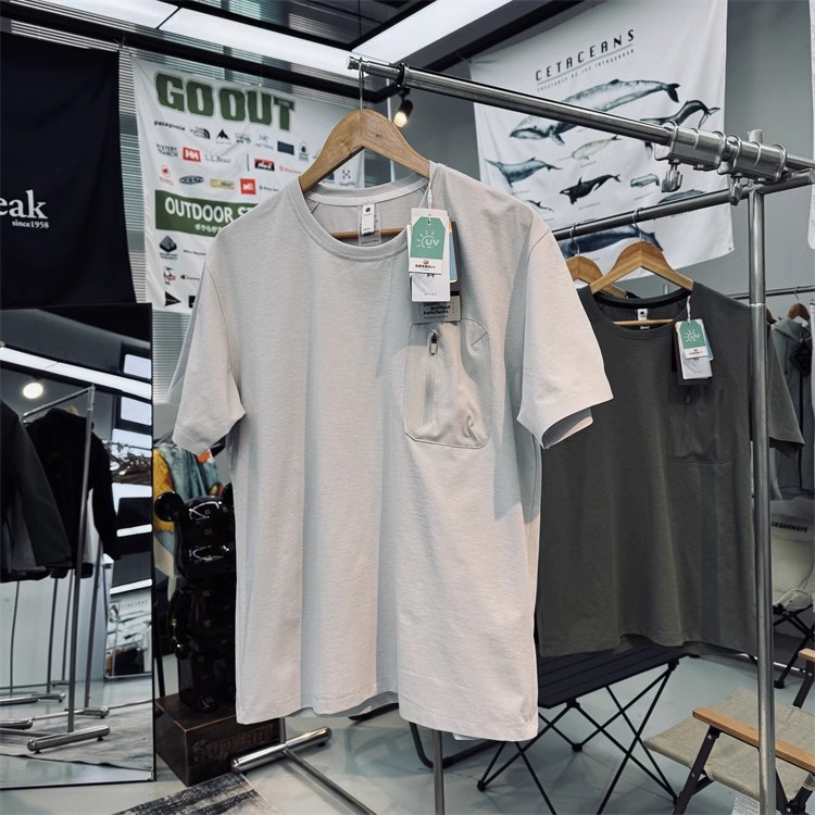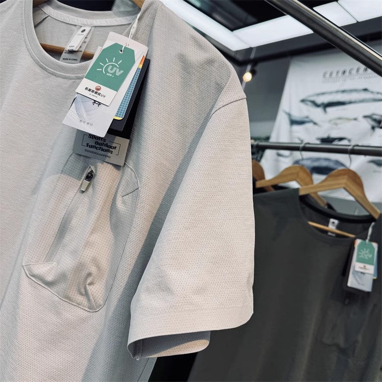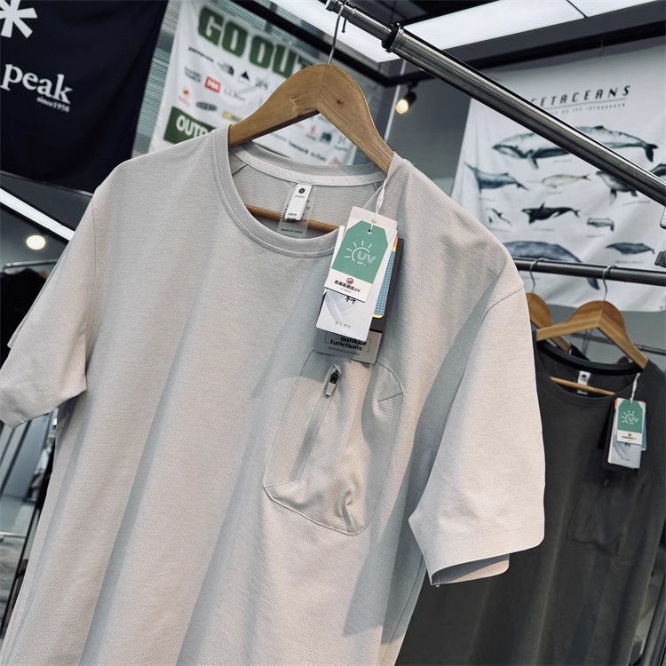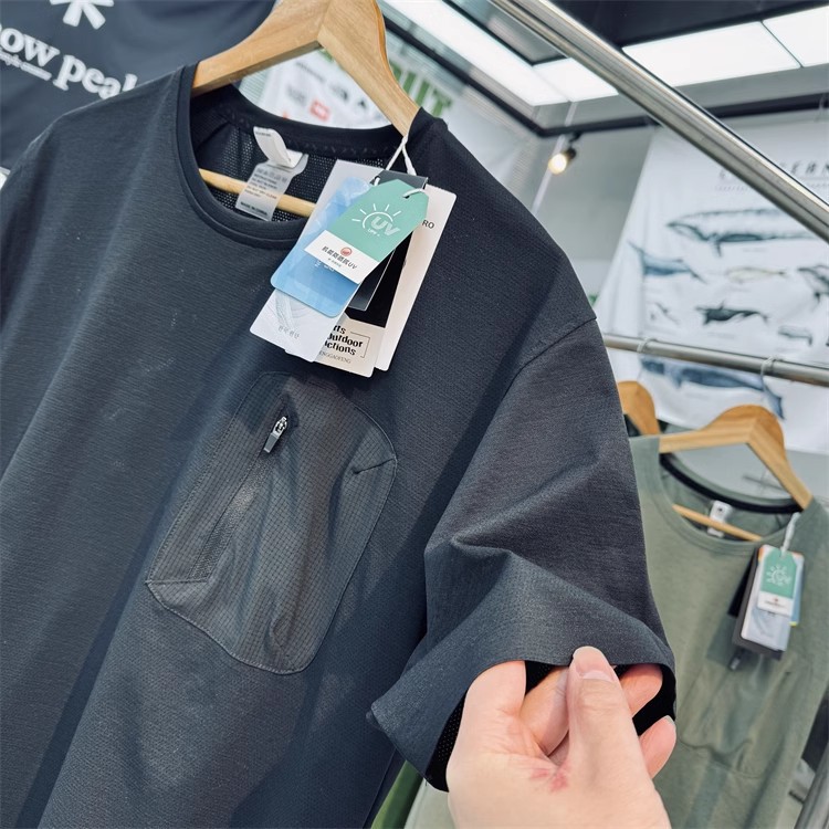 남성용 및 여성용 속건성 티셔츠, 아웃도어 마운틴 스타일 입체 포켓, 흡습성 및 통기성 메쉬 코튼 느낌 반팔 스포츠 언더셔츠스토어 가기
