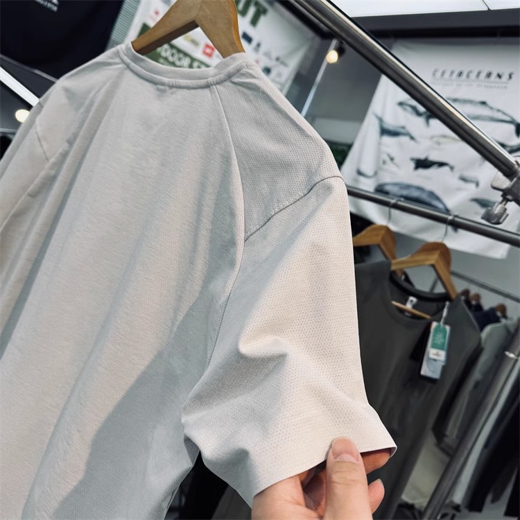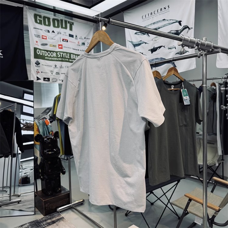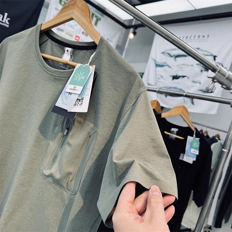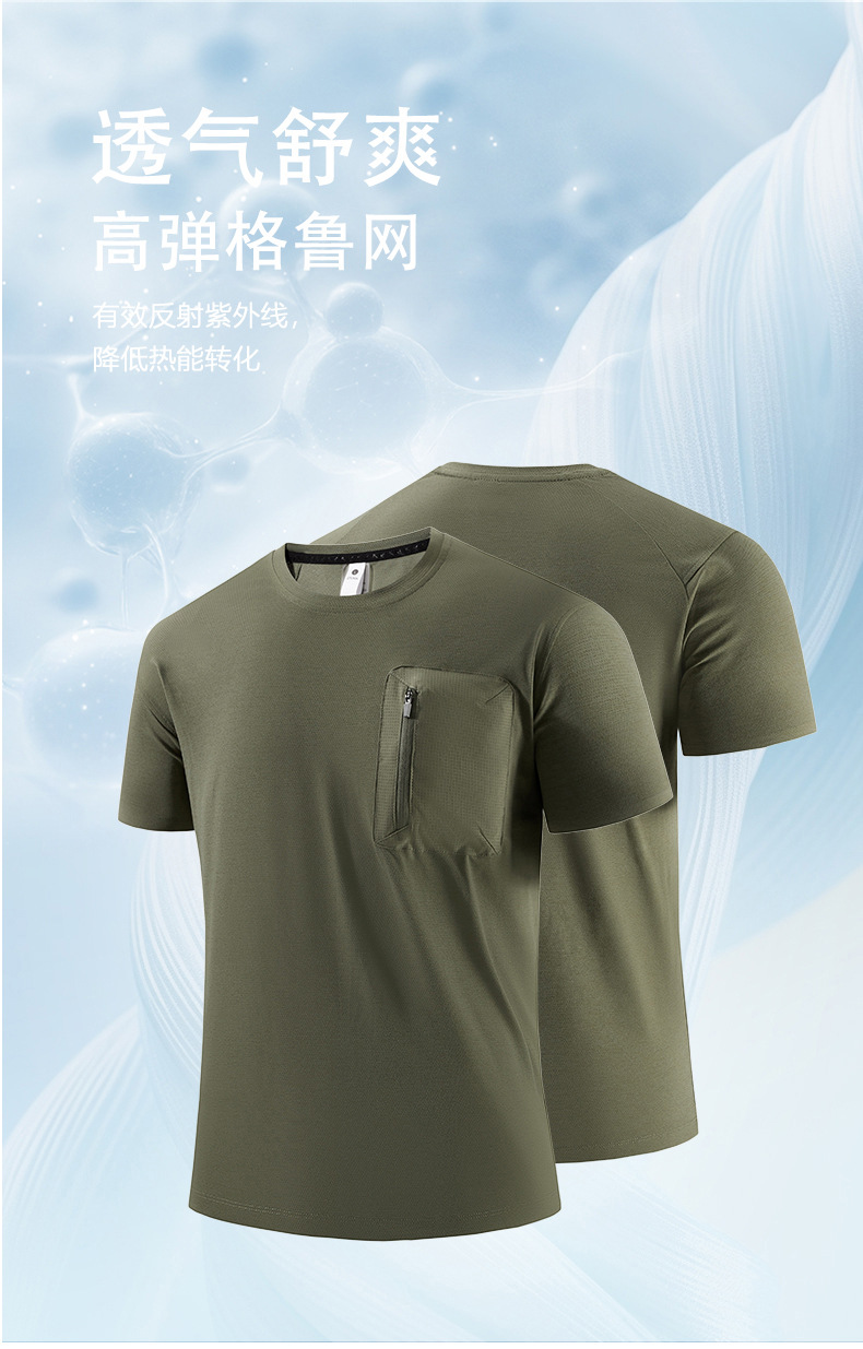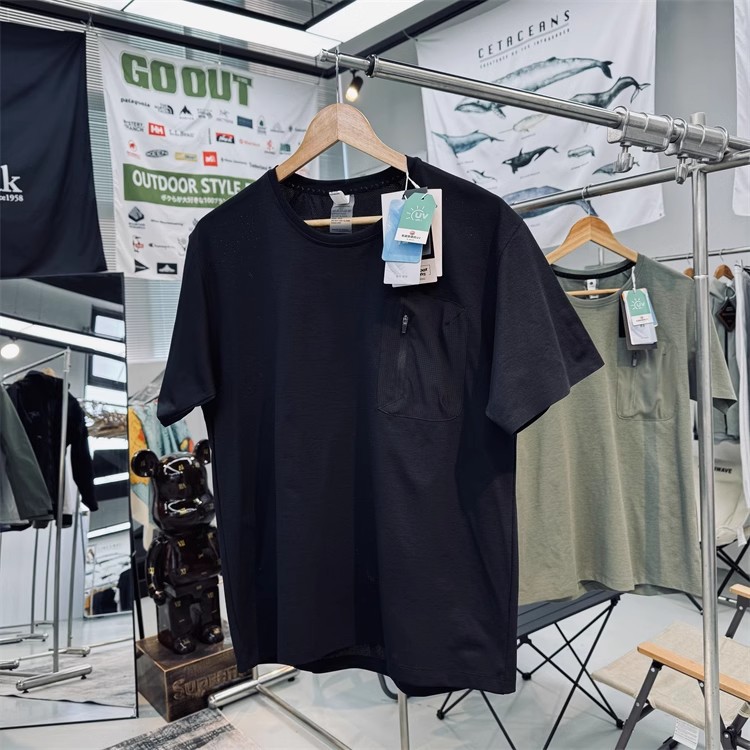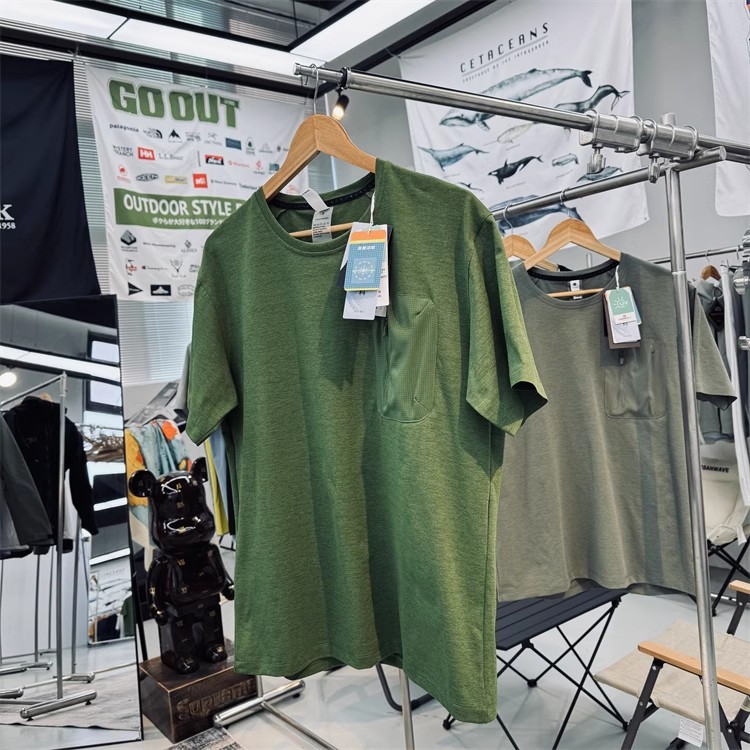 남성용 및 여성용 속건성 티셔츠, 아웃도어 마운틴 스타일 입체 포켓, 흡습성 및 통기성 메쉬 코튼 느낌 반팔 스포츠 언더셔츠스토어 가기