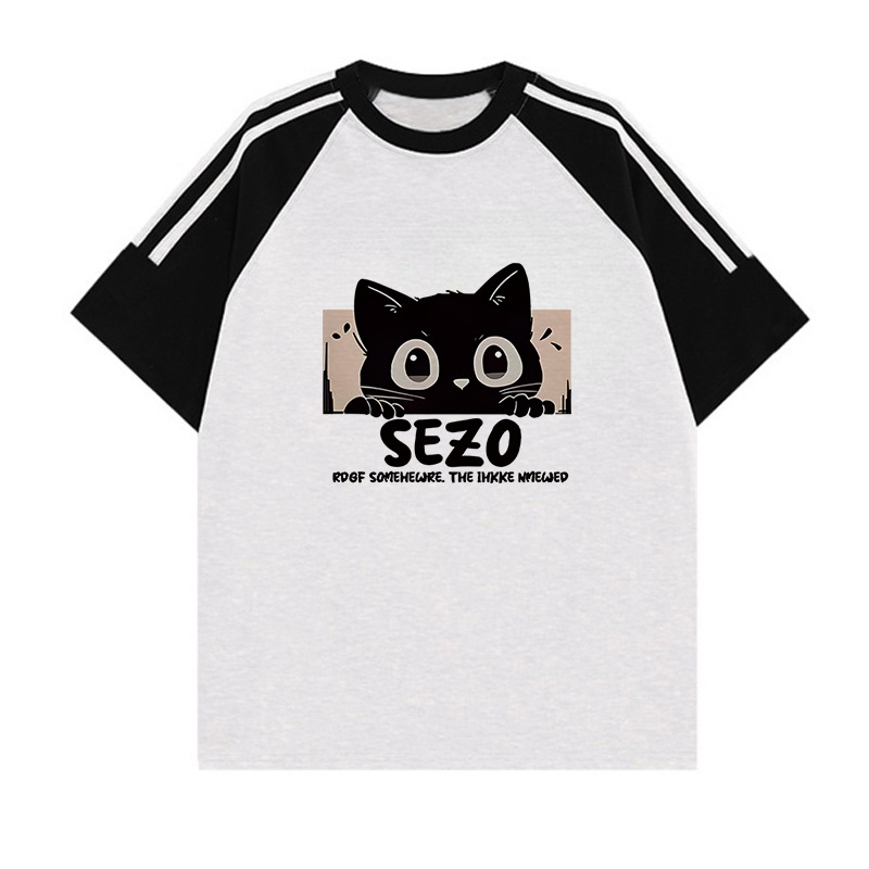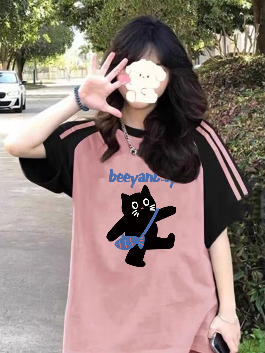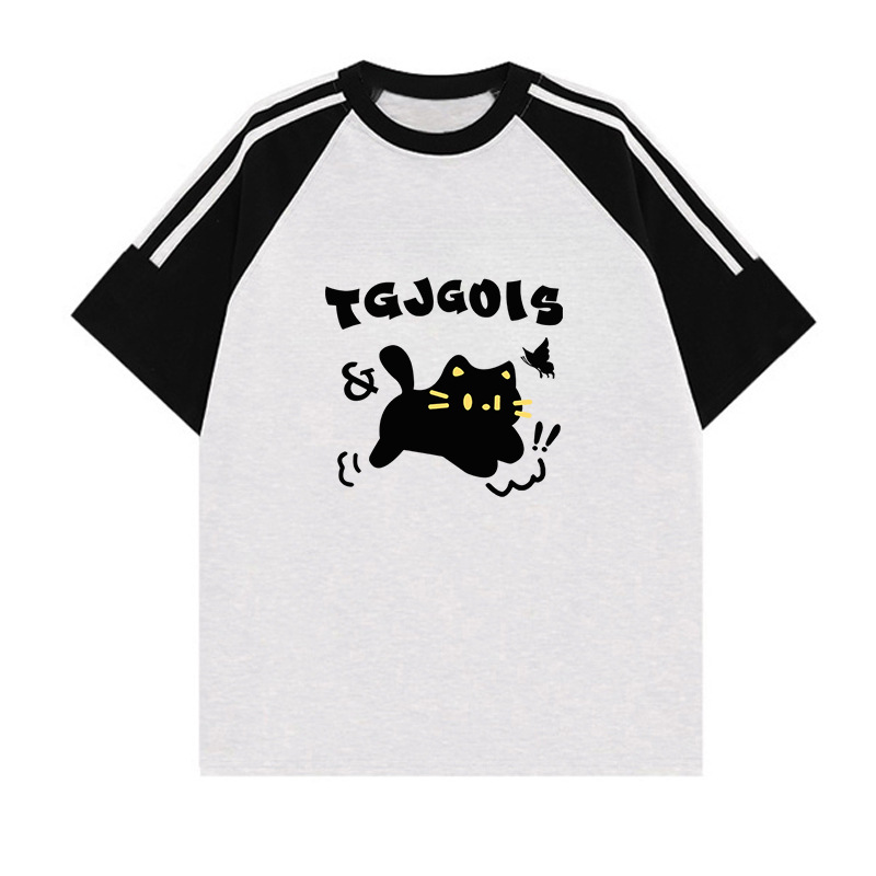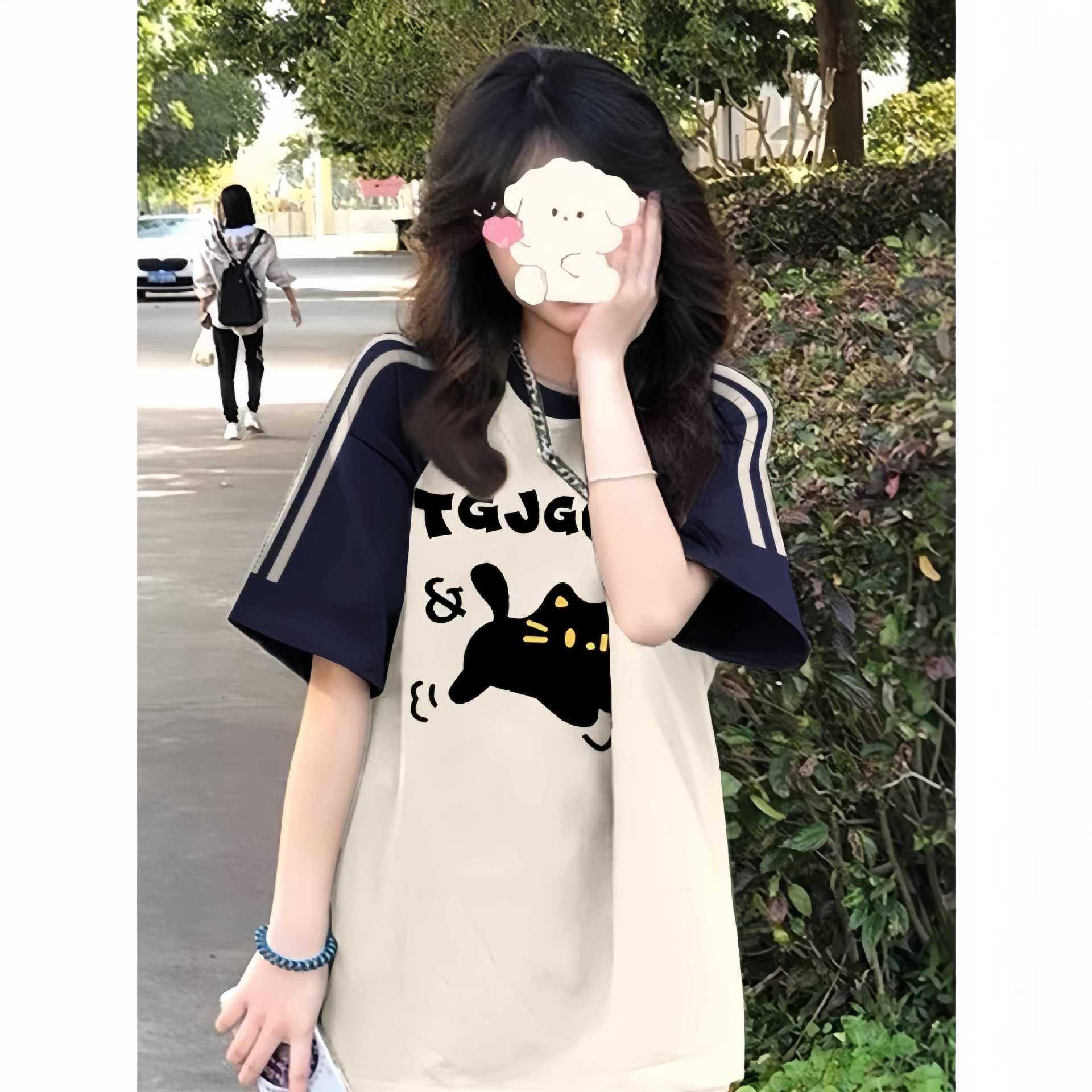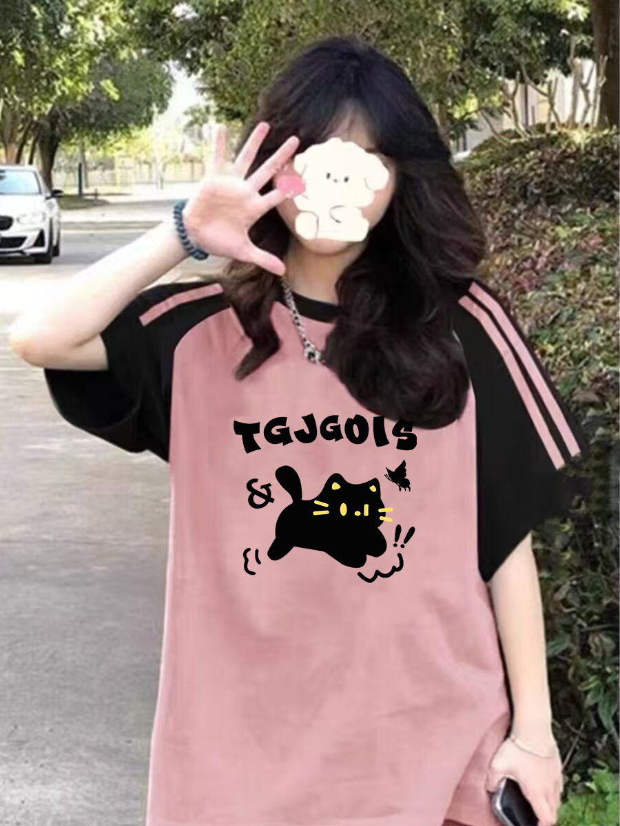 이른 여름 고등학생, 반소매 라운드 넥 아메리칸 라글란 소매 3 바 짧은 소매 티셔츠 소녀 탑스토어 가기