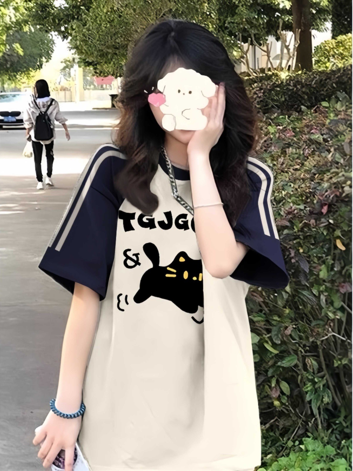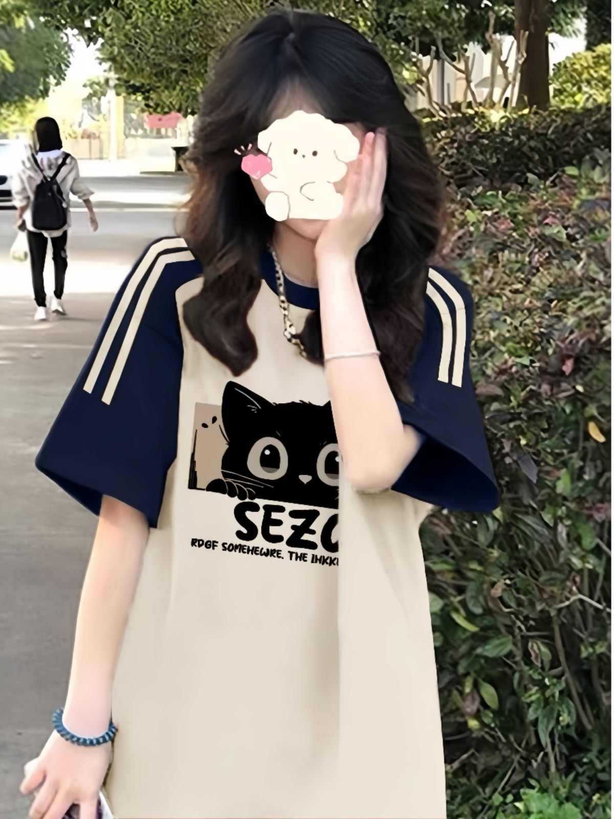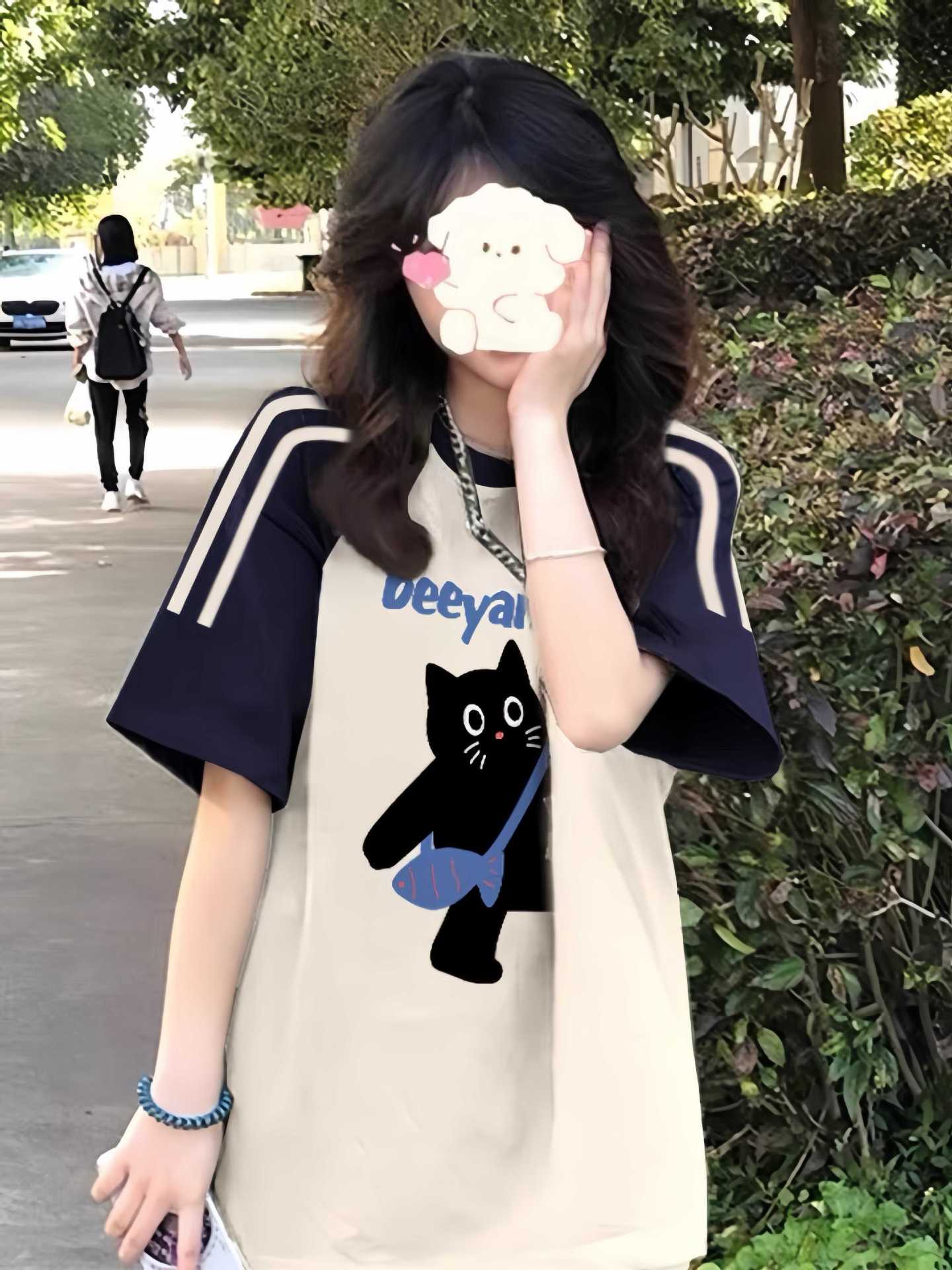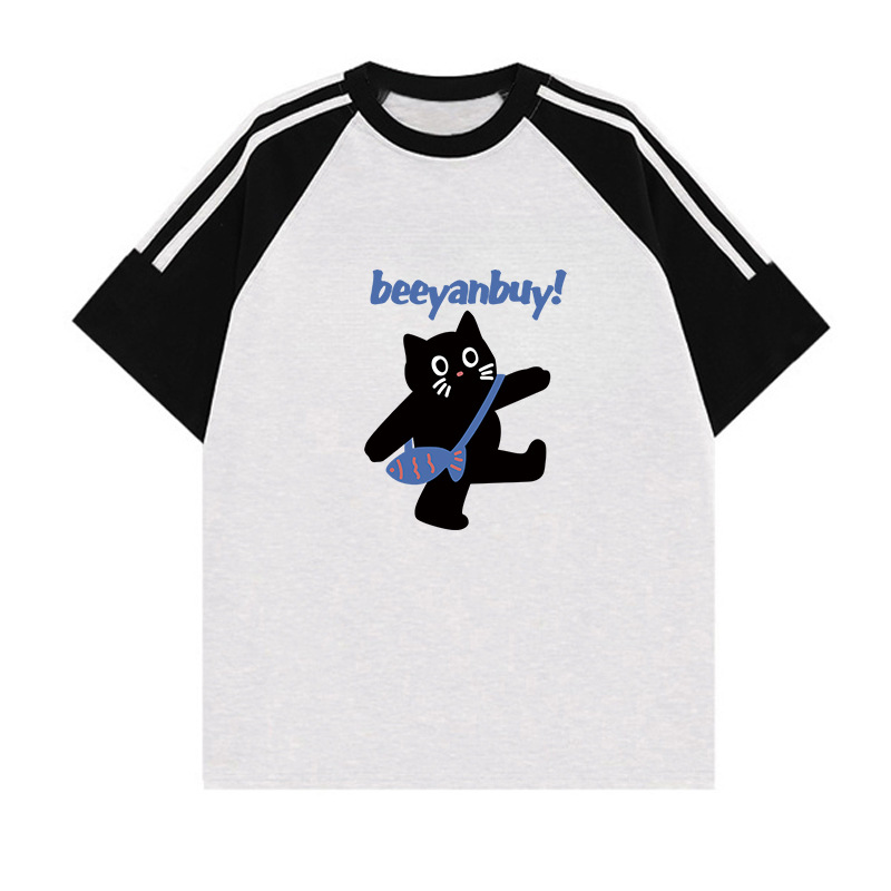 이른 여름 고등학생, 반소매 라운드 넥 아메리칸 라글란 소매 3 바 짧은 소매 티셔츠 소녀 탑스토어 가기