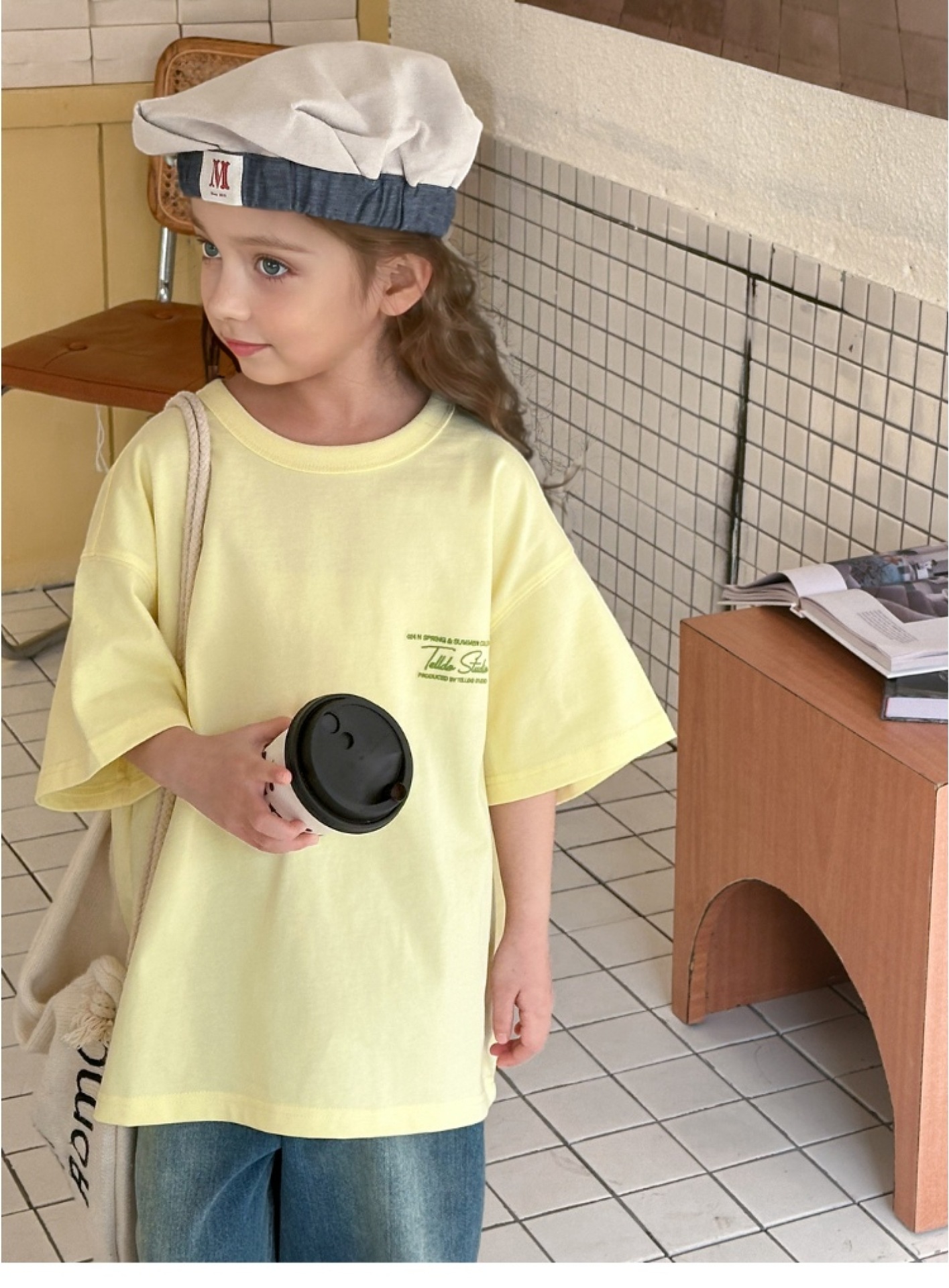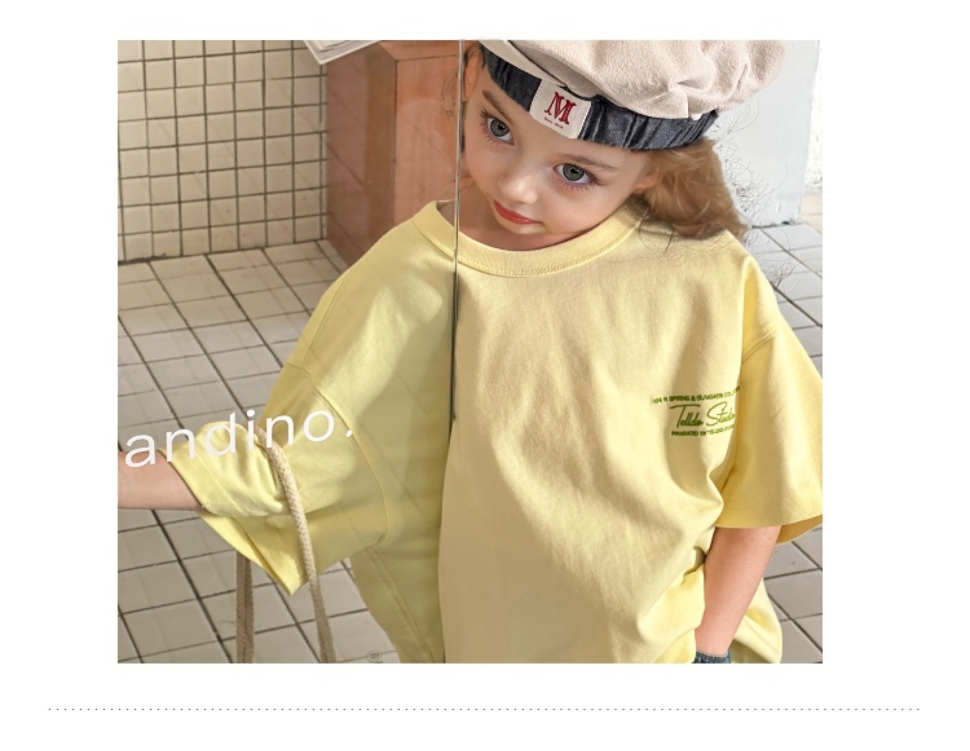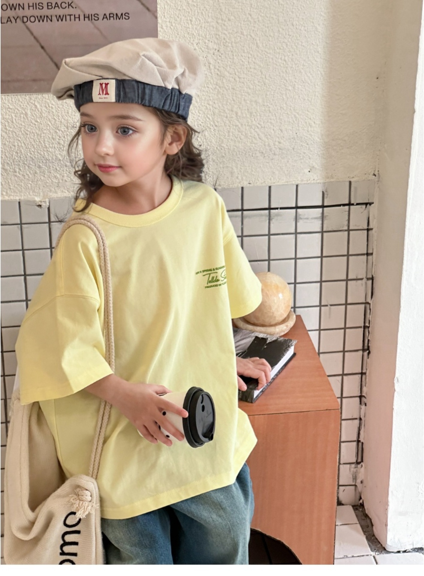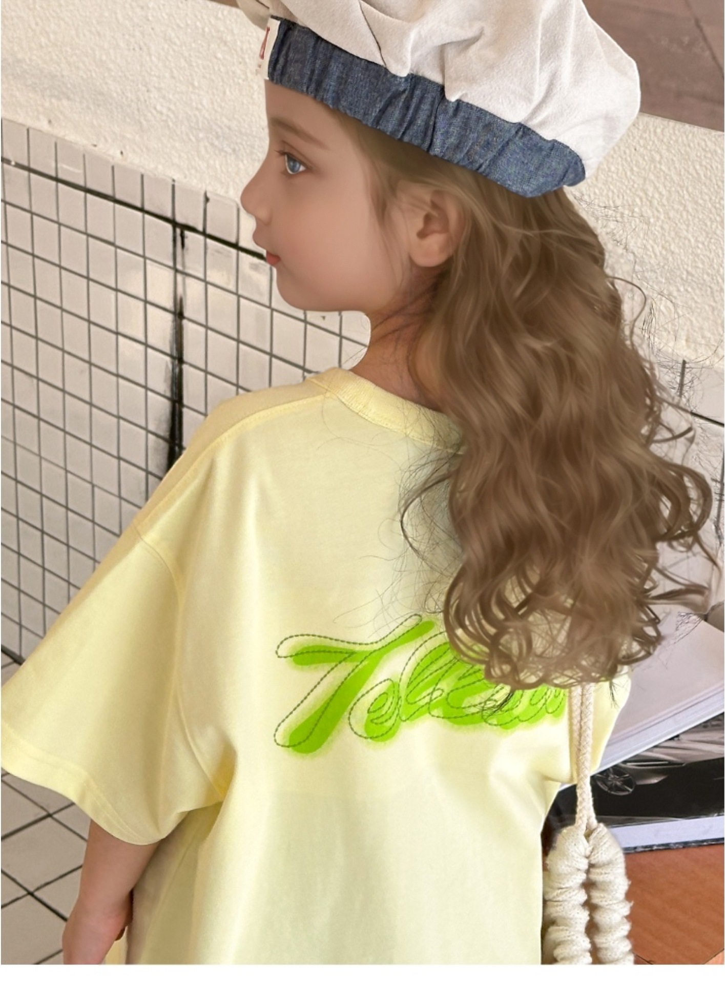 소녀 반팔 티셔츠 여름 2025 새로운 아동베이스 셔츠 여름 패션 느슨한 캐주얼 유행 편지 탑스토어 가기