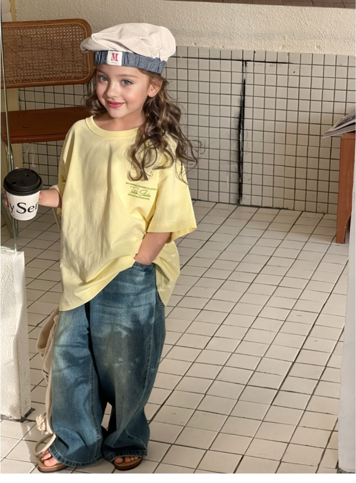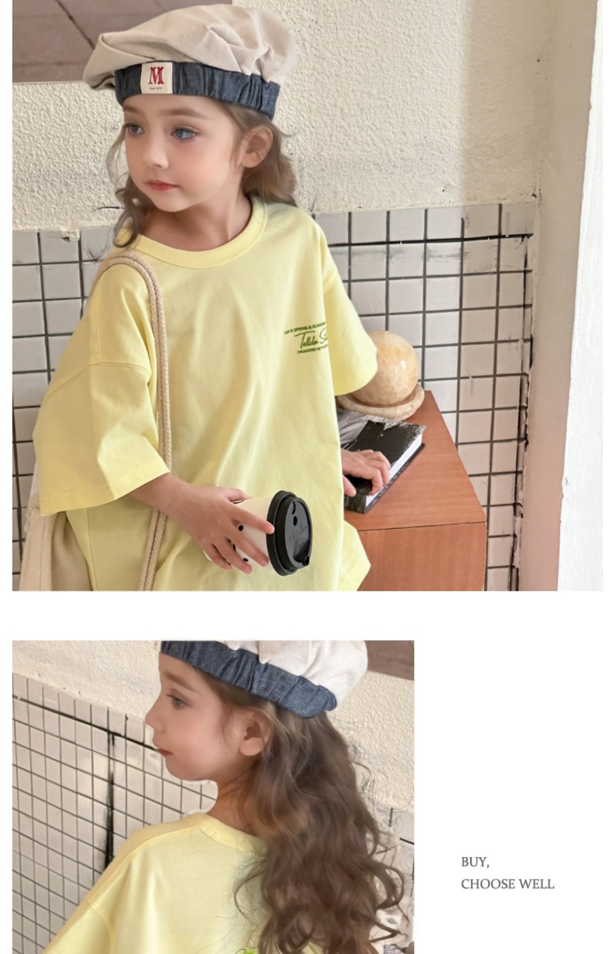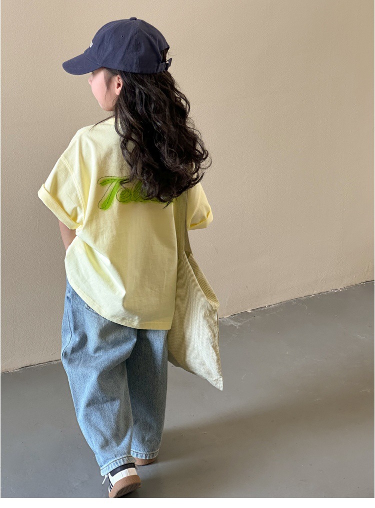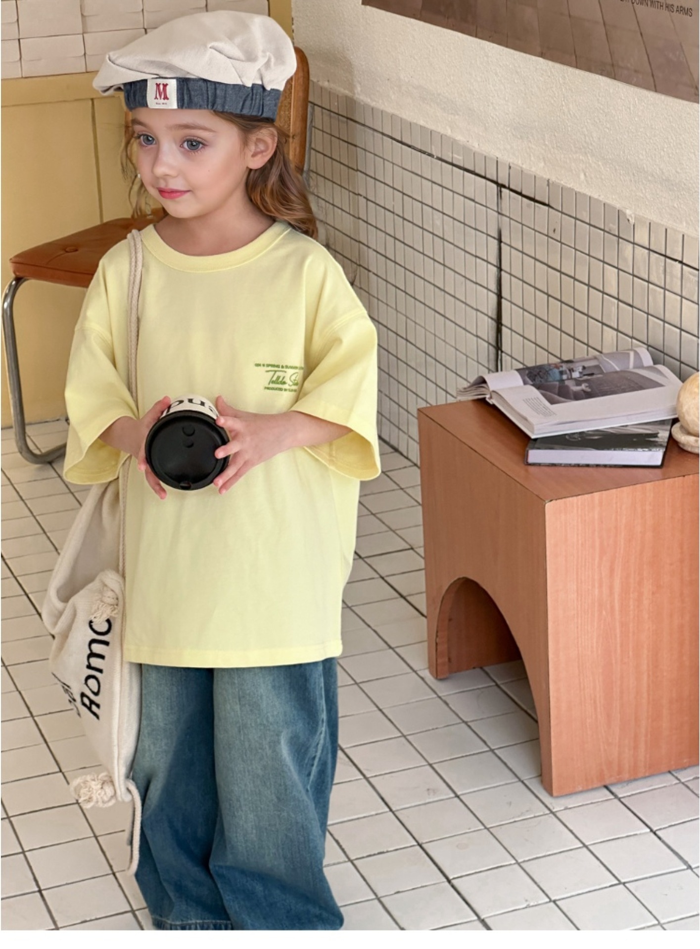 소녀 반팔 티셔츠 여름 2025 새로운 아동베이스 셔츠 여름 패션 느슨한 캐주얼 유행 편지 탑스토어 가기