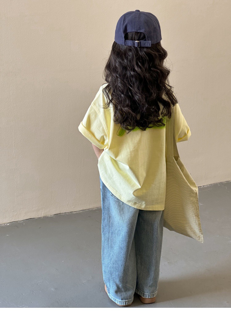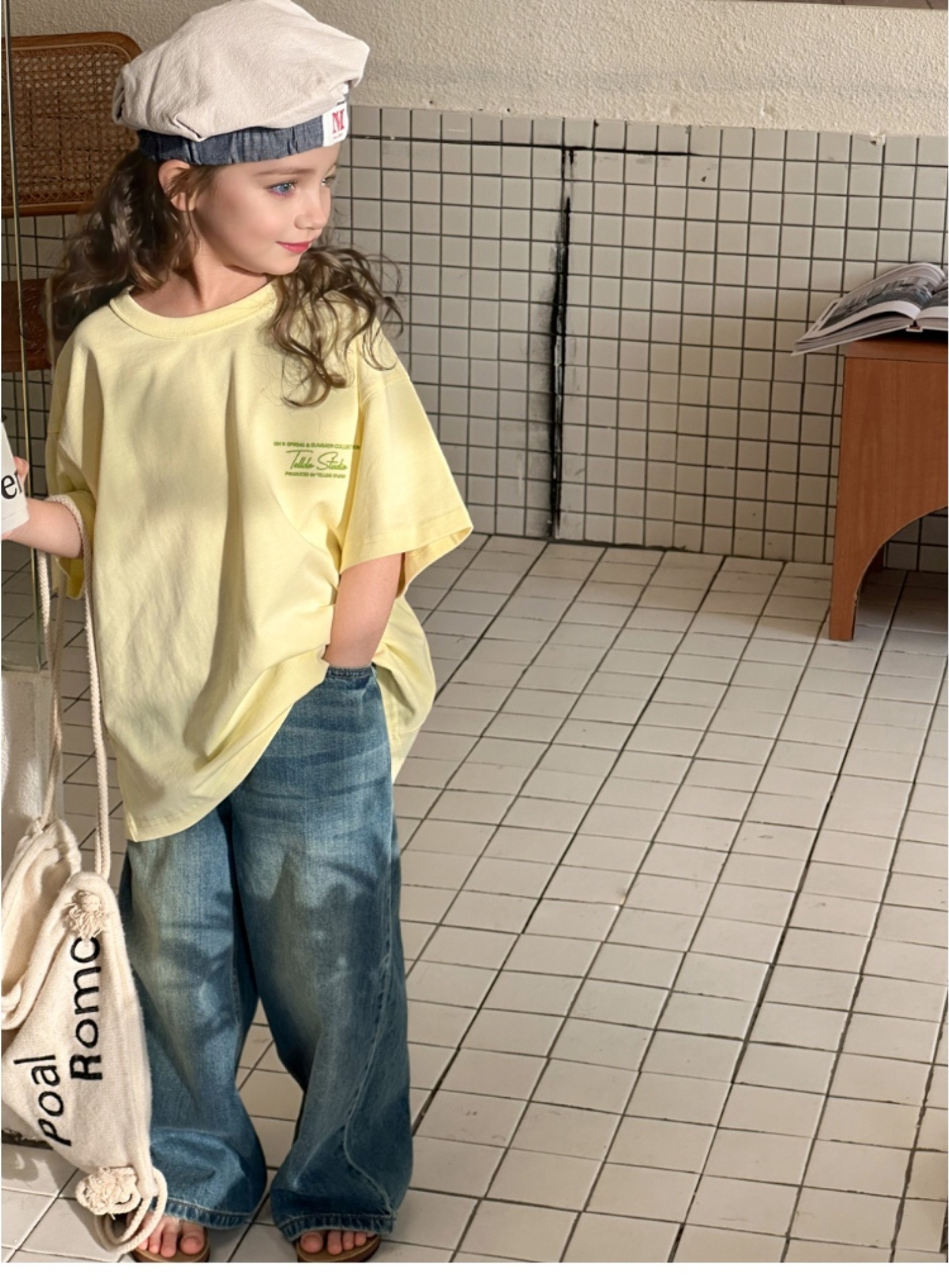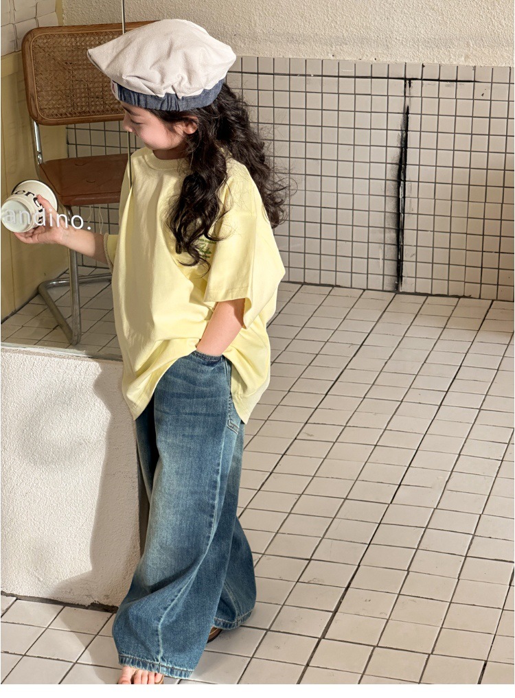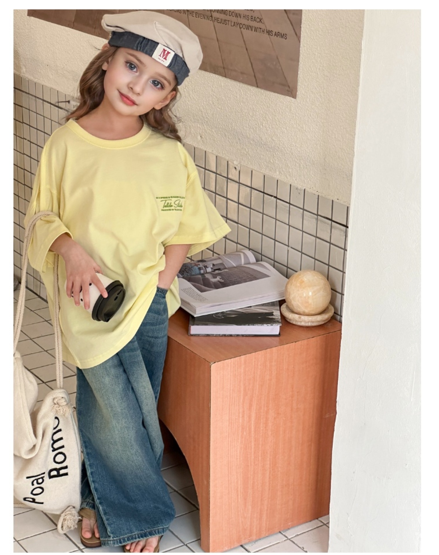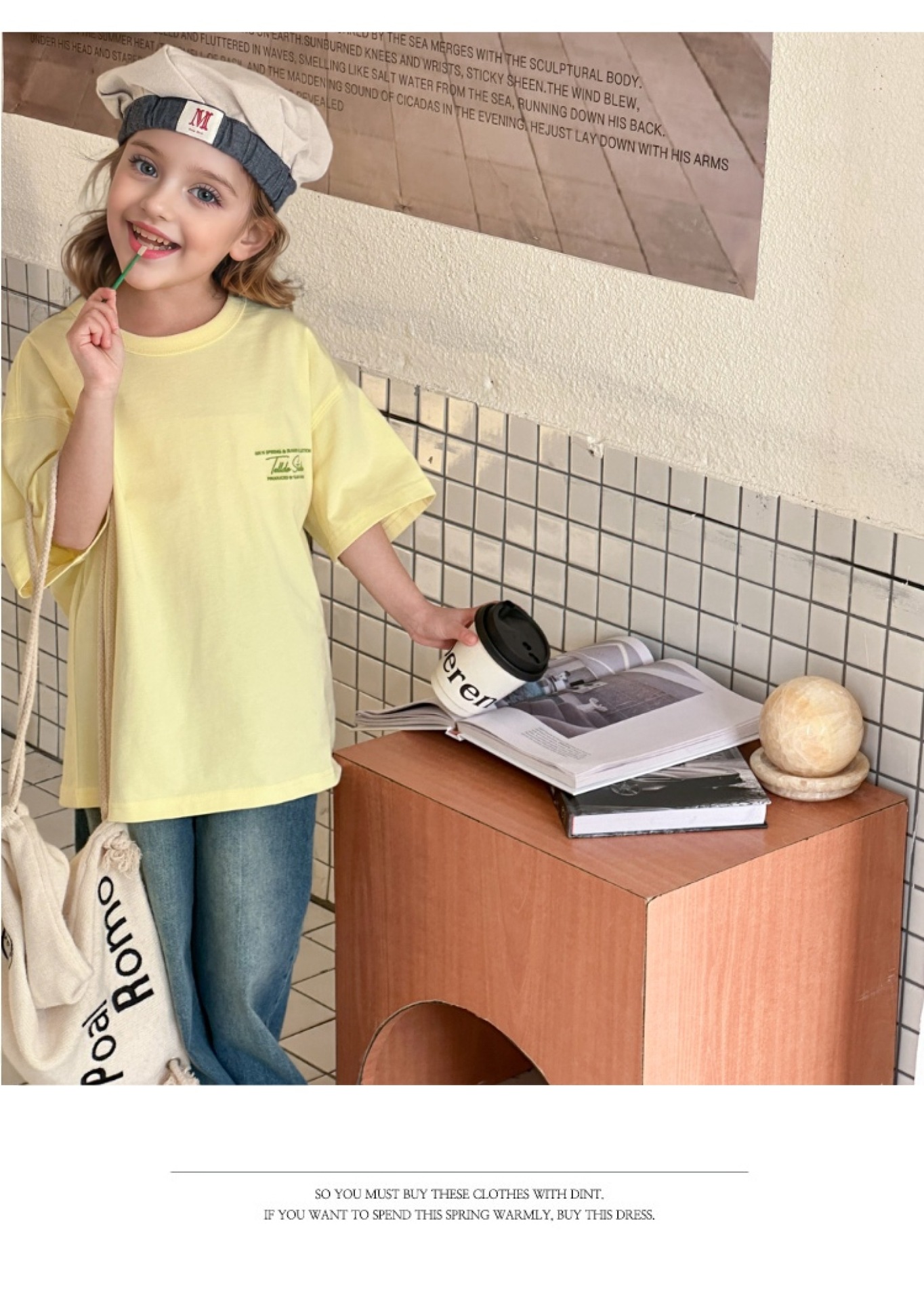 소녀 반팔 티셔츠 여름 2025 새로운 아동베이스 셔츠 여름 패션 느슨한 캐주얼 유행 편지 탑스토어 가기