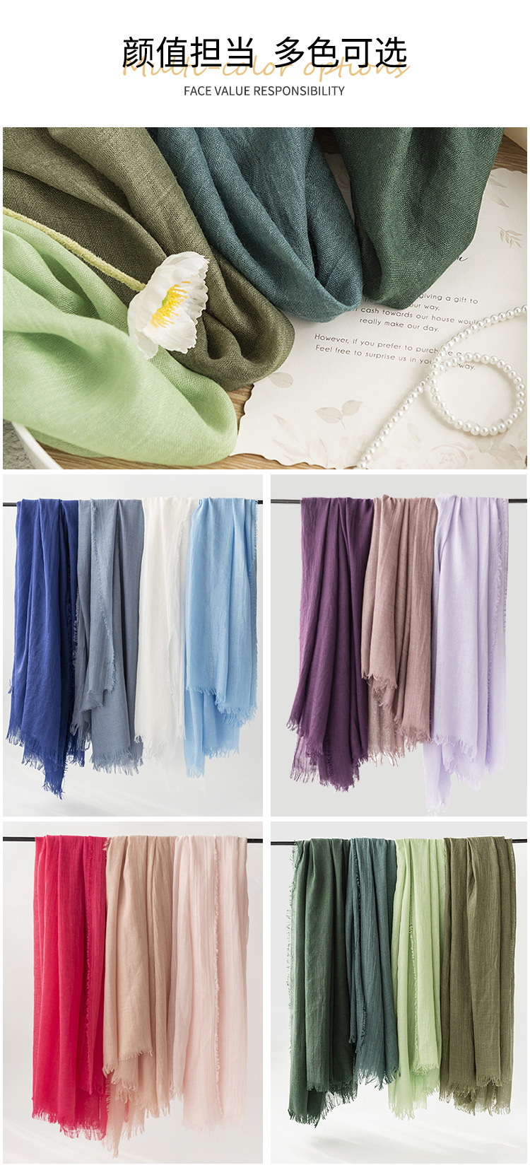 여름 여행 선스크린 목도리 모방 면화 및 리넨 질감 단색 간단한 스카프 여성의 고급 스카프스토어 가기