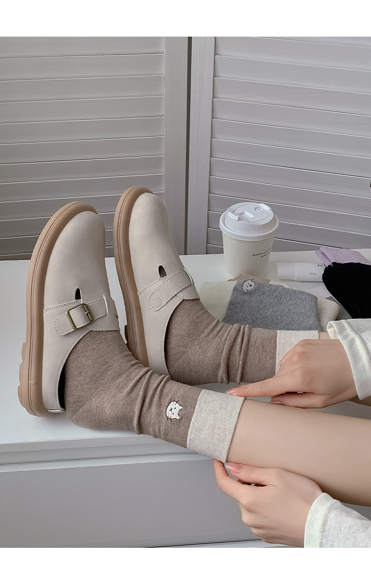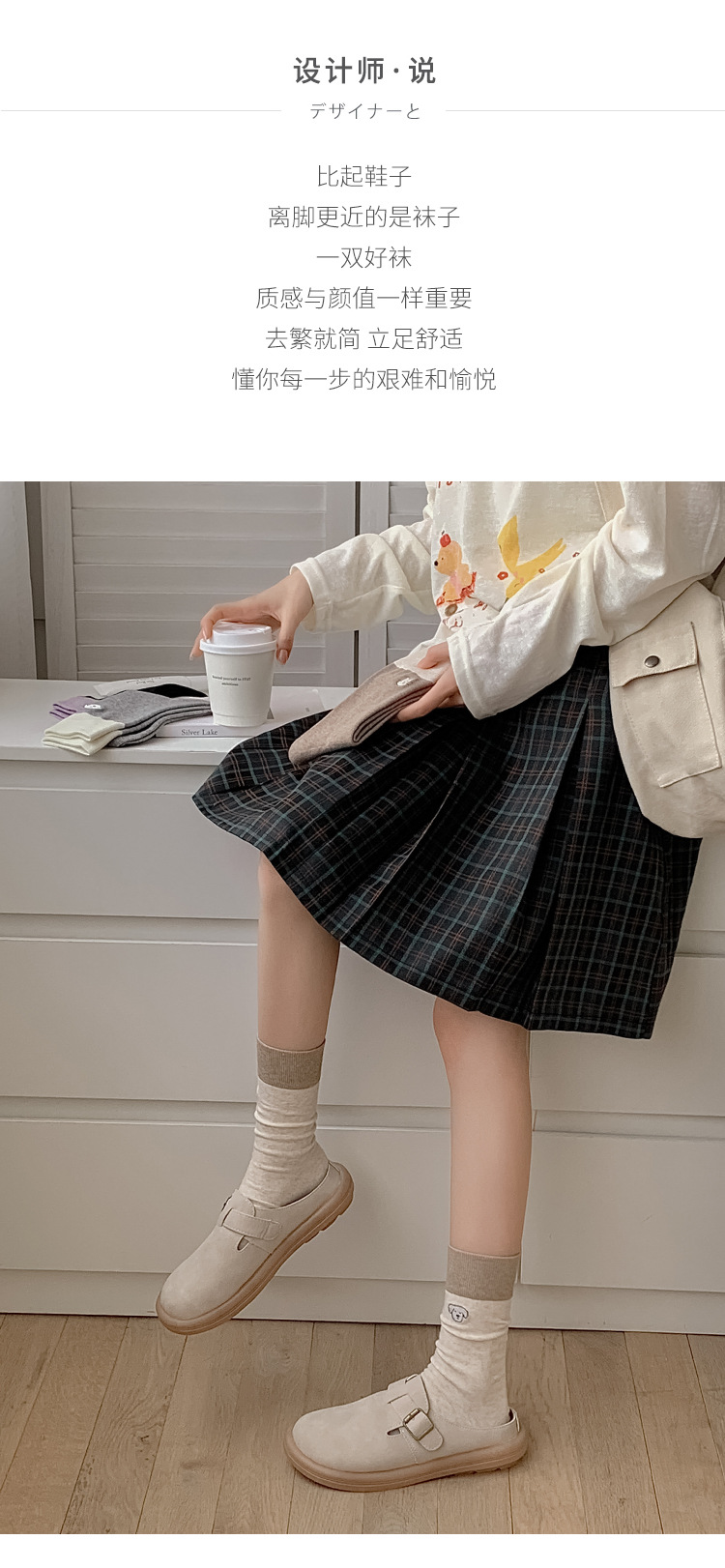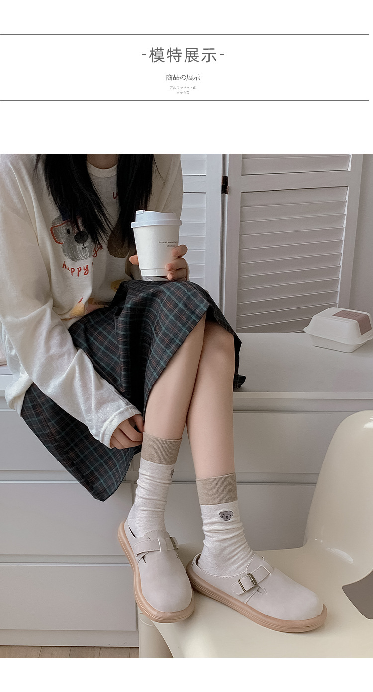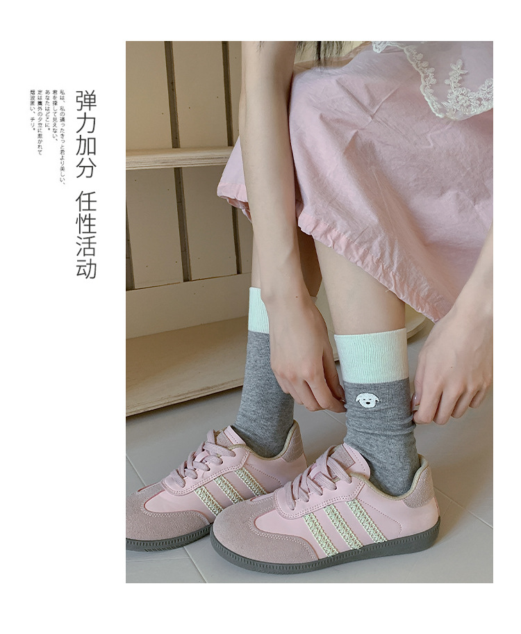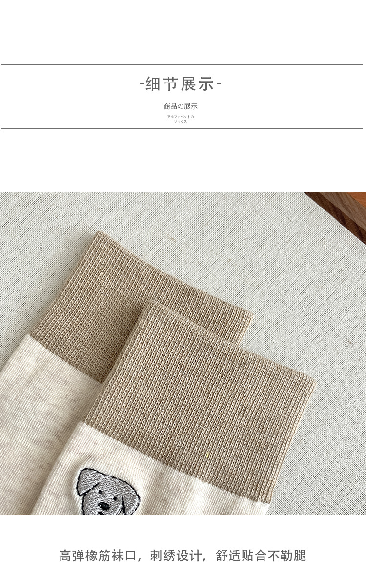 뼈없는 중간 길이 스타킹 어린이 봄과 가을 순수 코튼 Ins 트렌디 한 일본 스타일 대학 스타일 스타킹 강아지 자수 대비 컬러 스태킹 스타킹