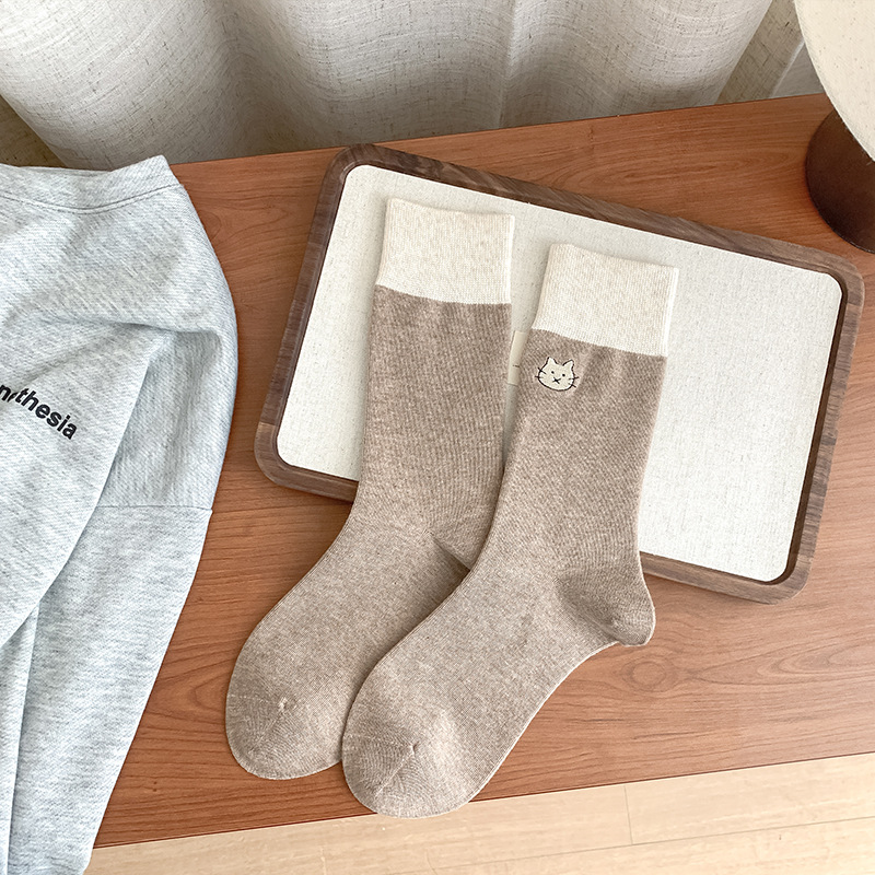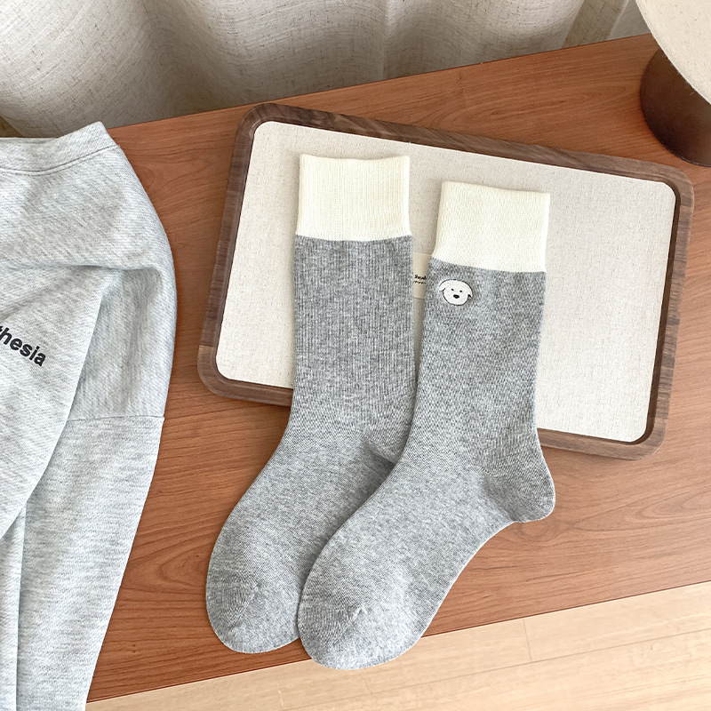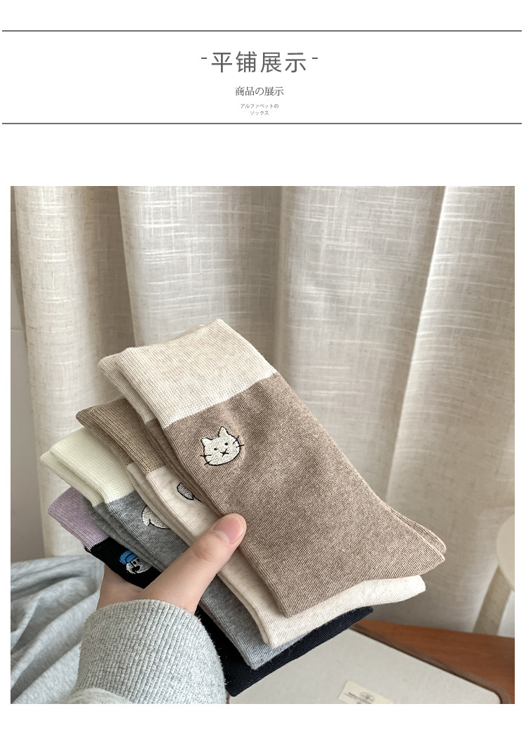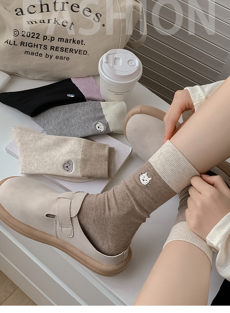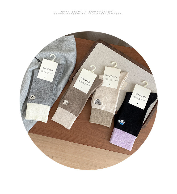 뼈없는 중간 길이 스타킹 어린이 봄과 가을 순수 코튼 Ins 트렌디 한 일본 스타일 대학 스타일 스타킹 강아지 자수 대비 컬러 스태킹 스타킹스토어 가기