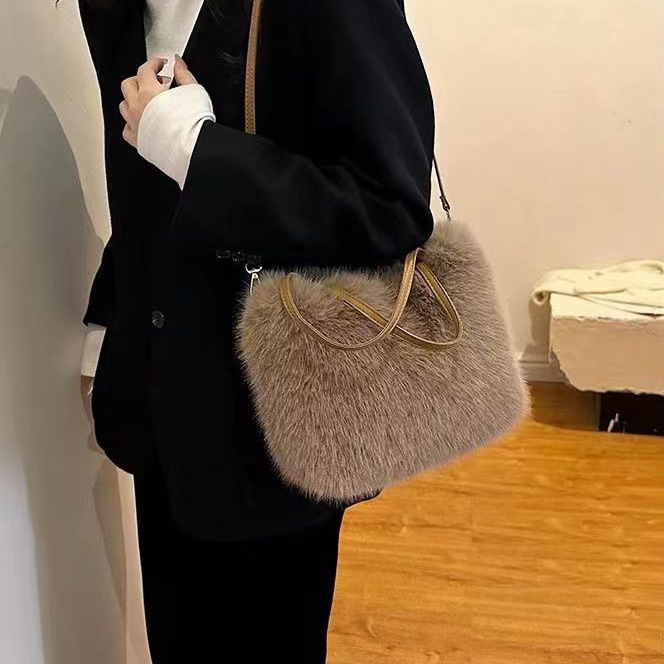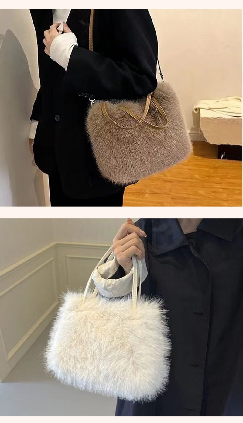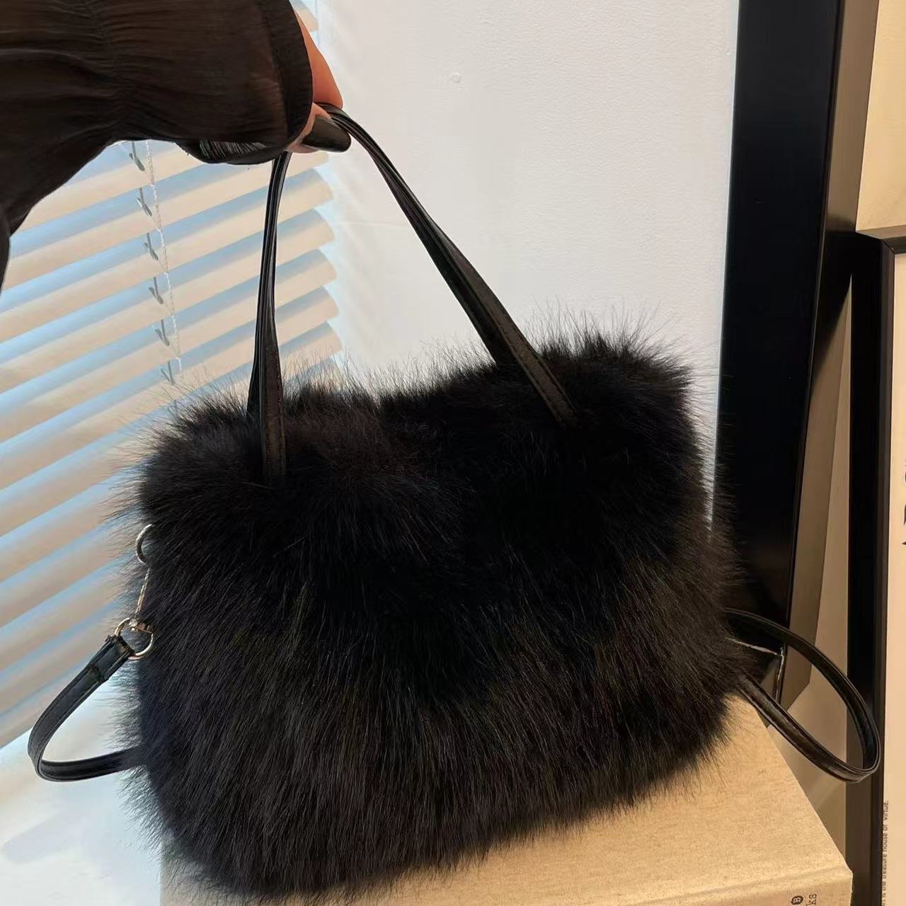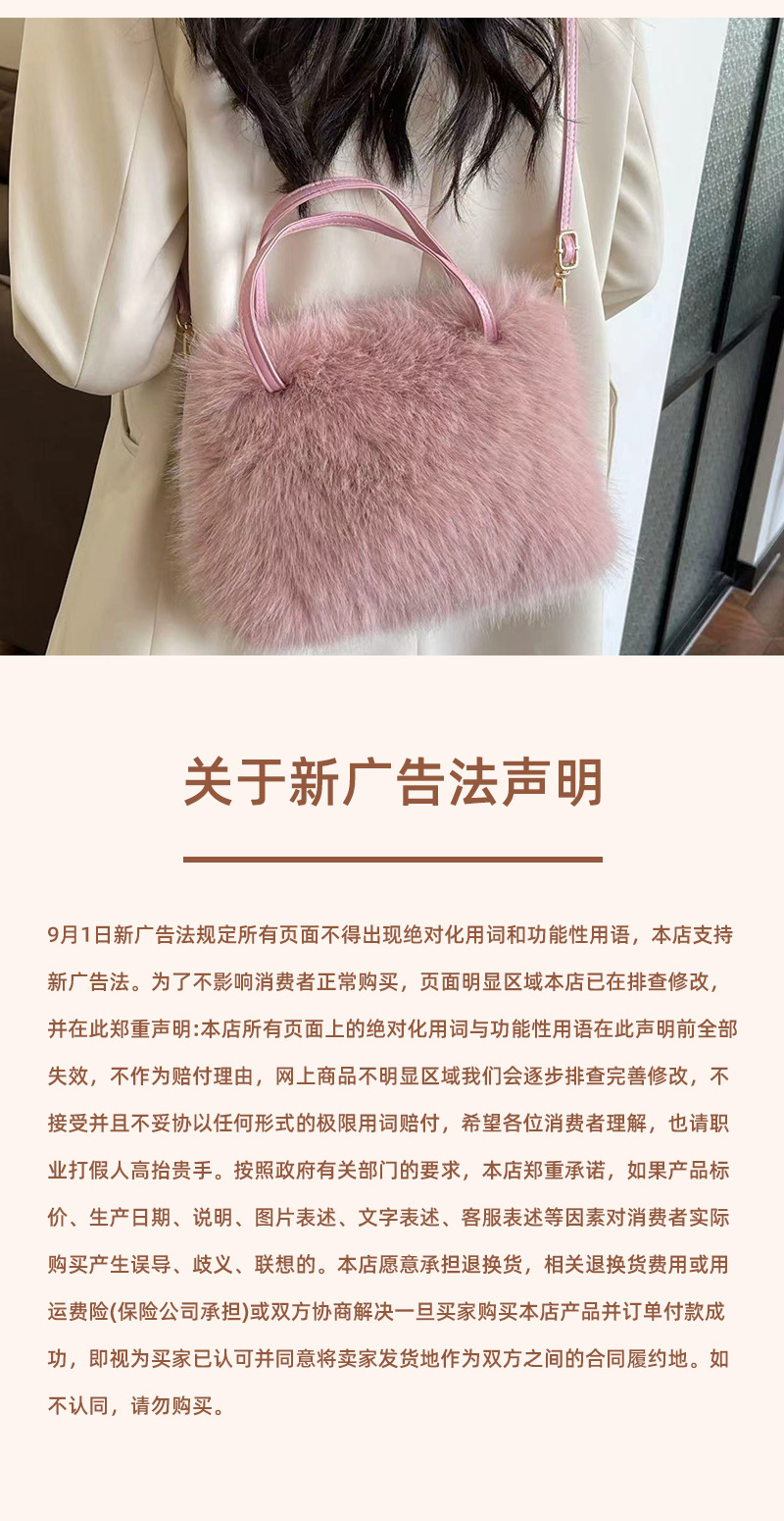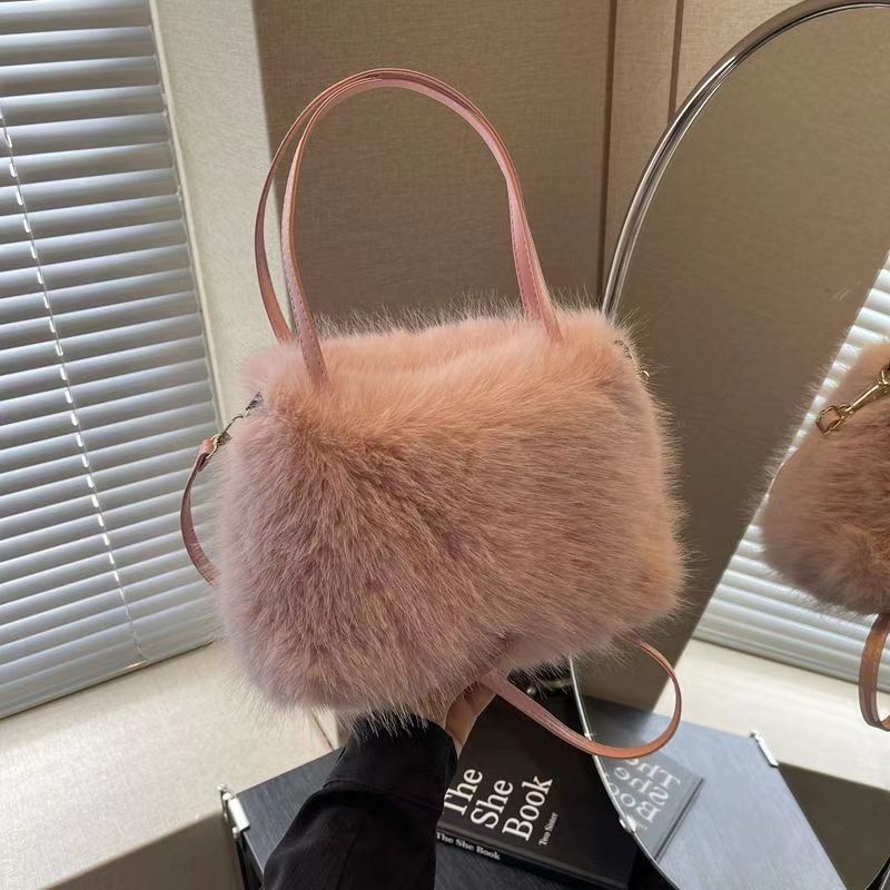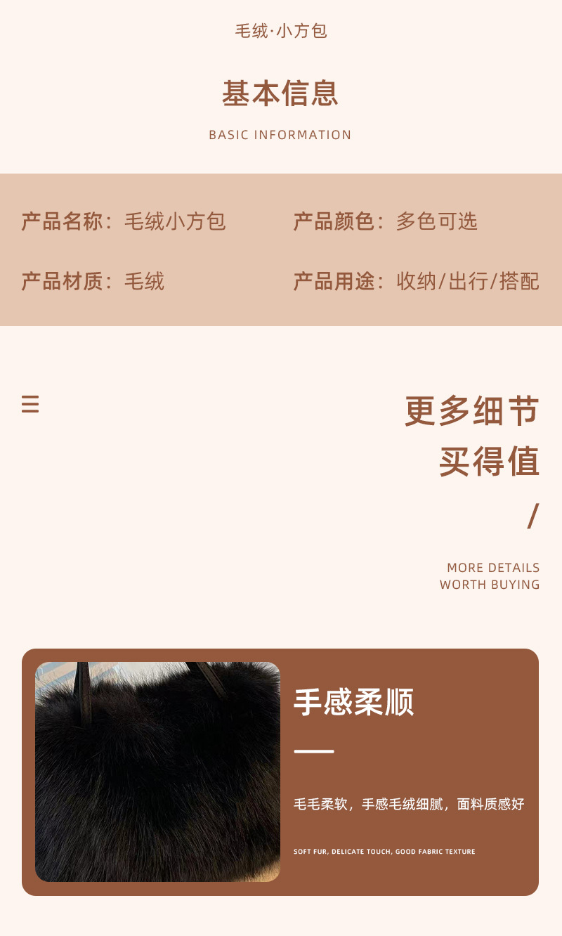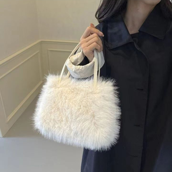 가을과 겨울 새로운 모조 여우 모피 여성 가방 핸드백 트렌드 한국인은 단색 봉제 작은 사각형 가방 제조 업체스토어 가기
