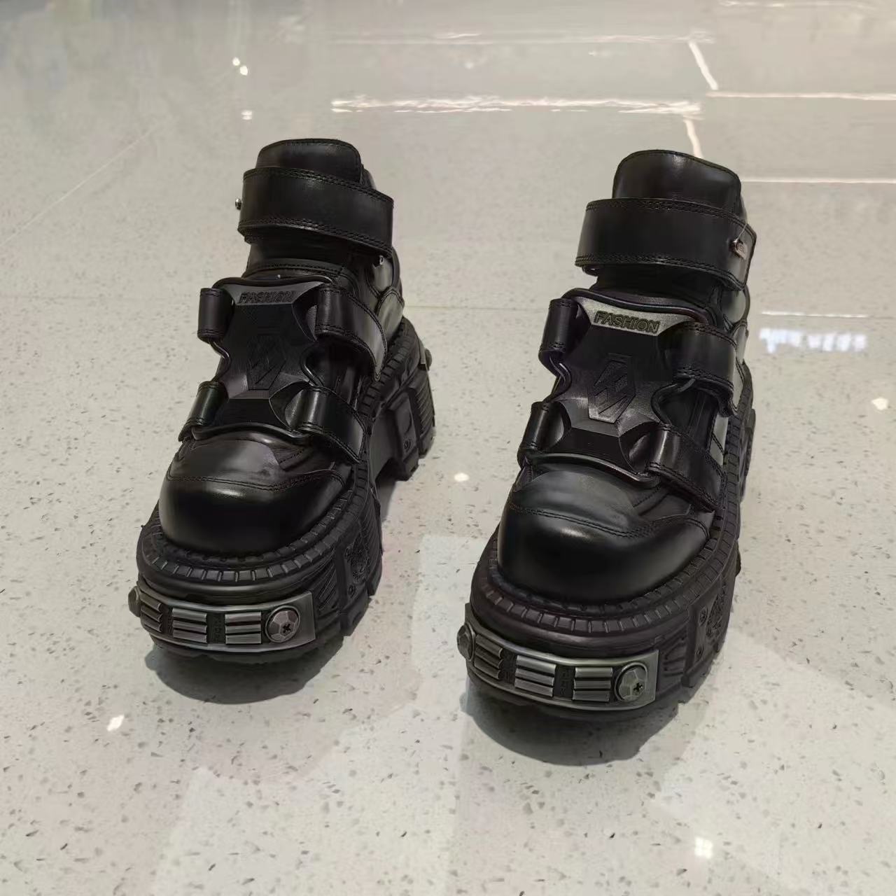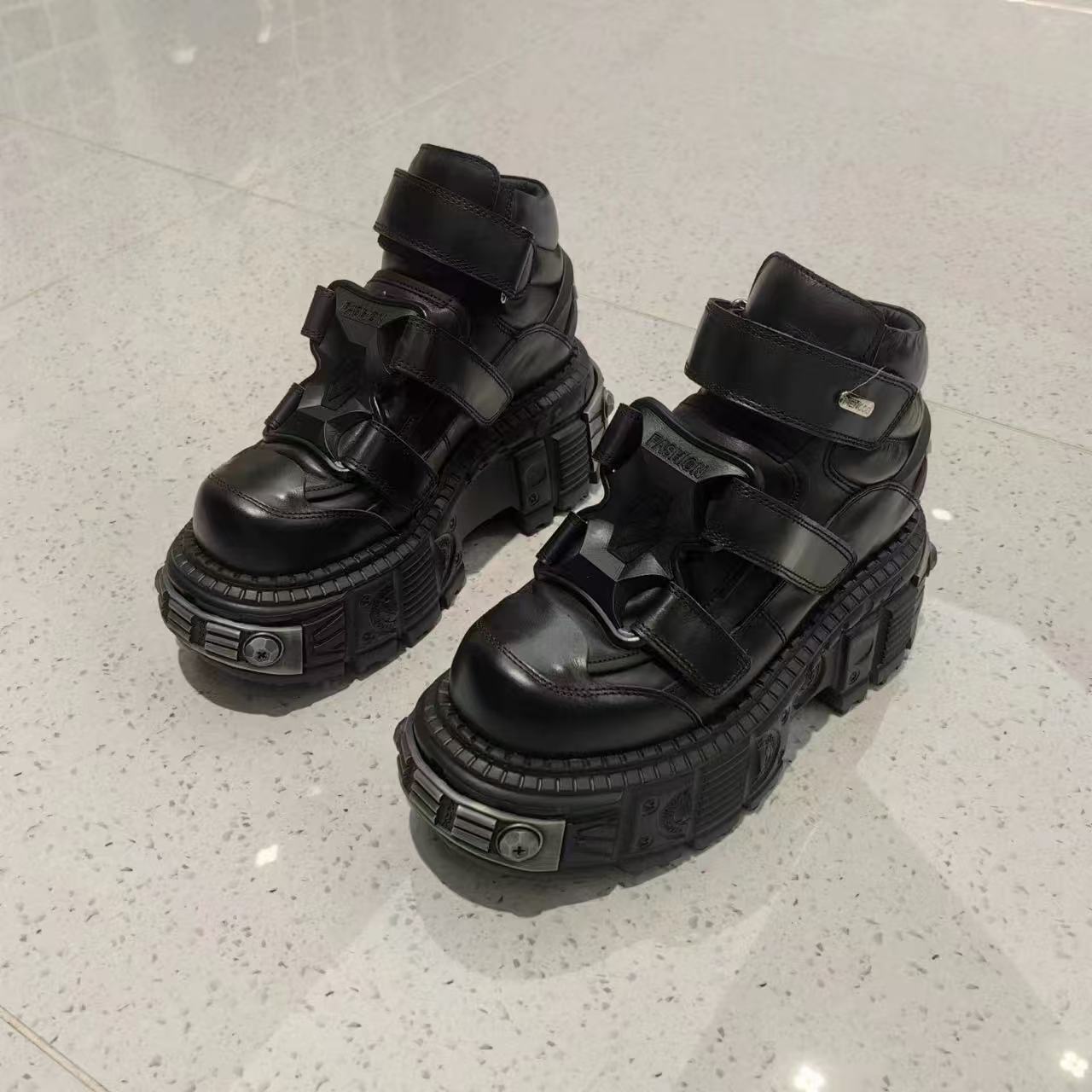 여성용 키높이 가죽 신발 2023 가을 스페인 신상 트렌디 플랫폼 두꺼운 밑창 캐주얼 록 스타일 신발 다용도스토어 가기