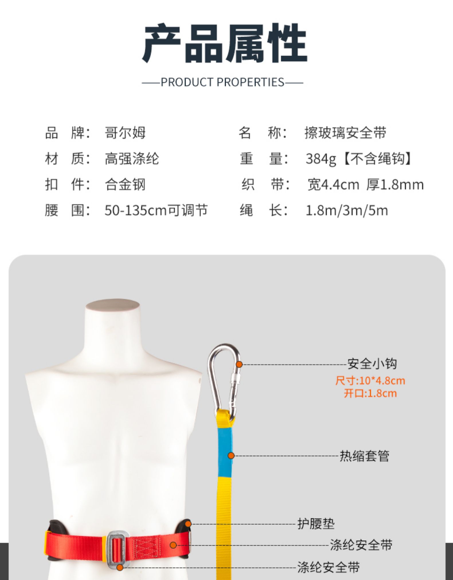 높은 고도 닦아 유리 안전 벨트 유모차 청소 안전 벨트 청소 안전 로프 단일 허리 벨트스토어 가기