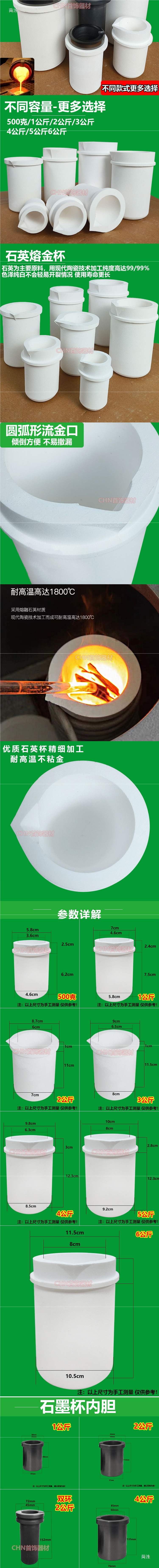고순도 석영 컵 고온 저항하는 비 스틱 금 흑연 도가니 금 녹는 실버 백금 작은 유도로 주조 금 녹는 냄비