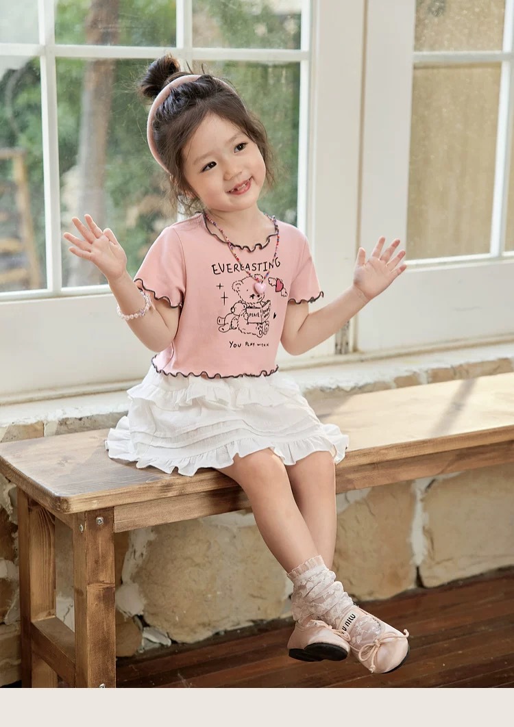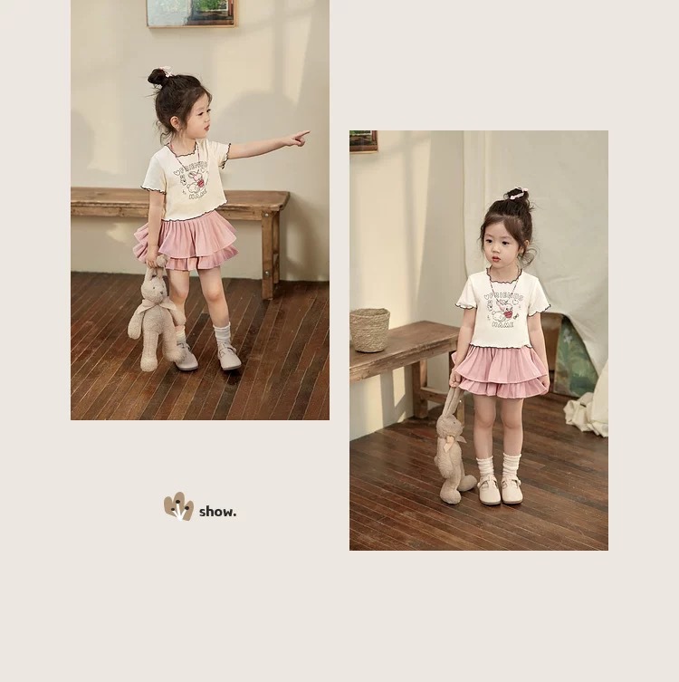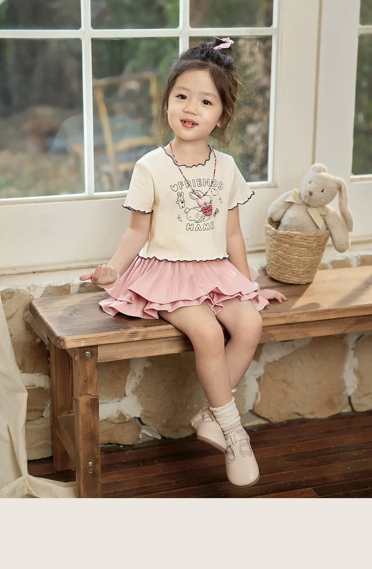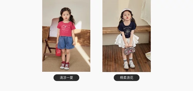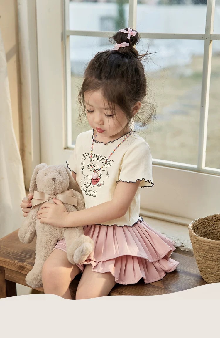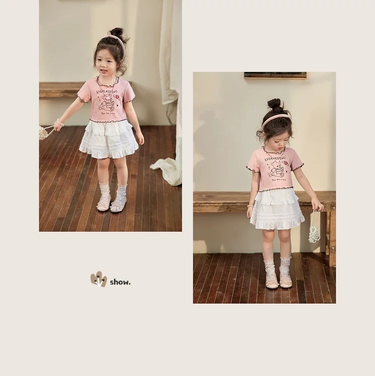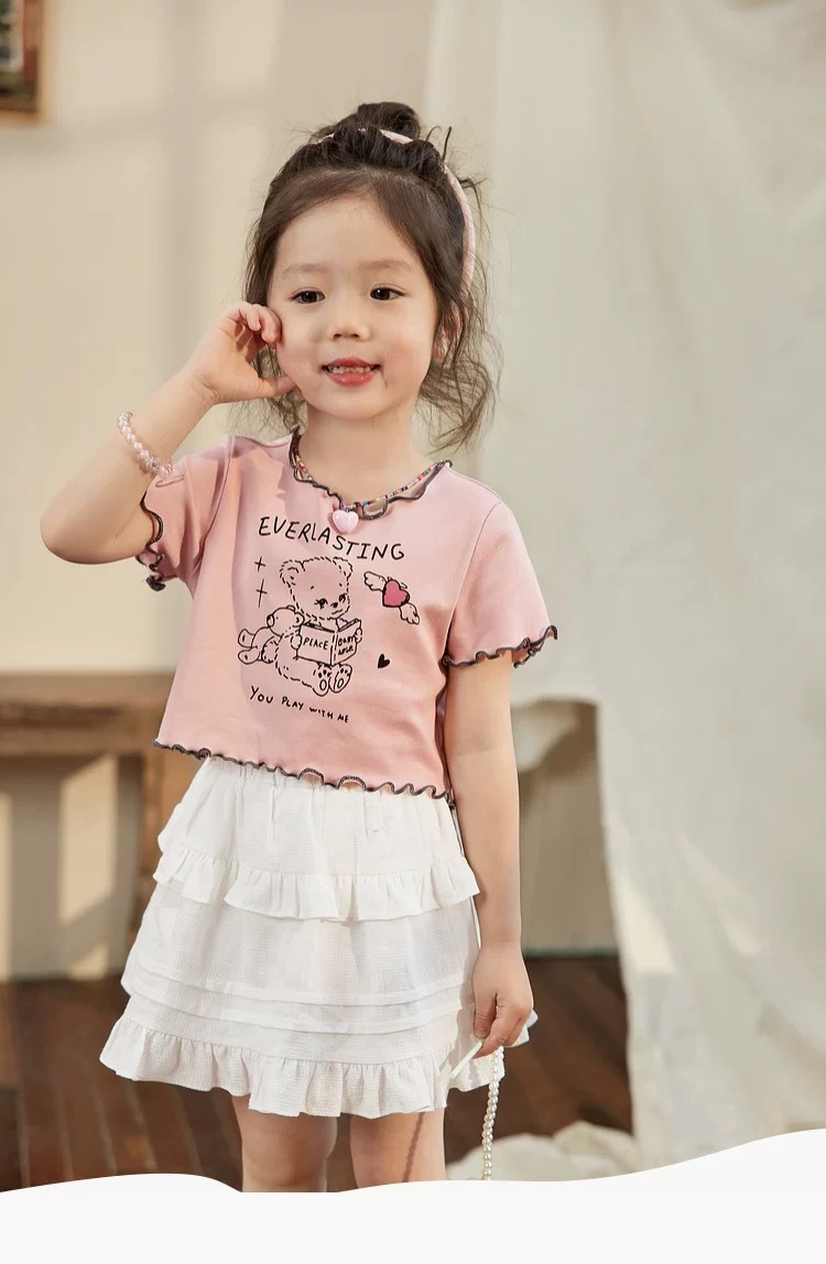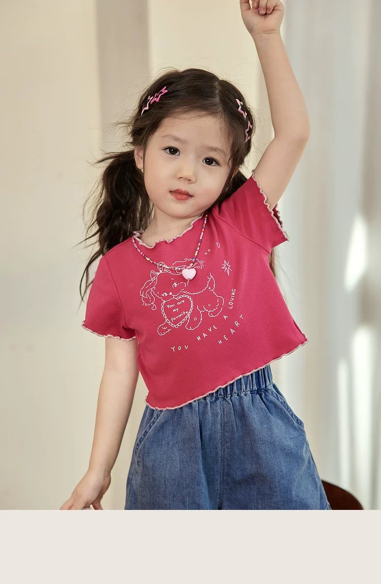 아동복 소녀 반팔 티셔츠 여름 2025 새로운 어린이 올매치 우드 이어 탑 트렌디 프린트 티셔츠 아기 소녀 용스토어 가기