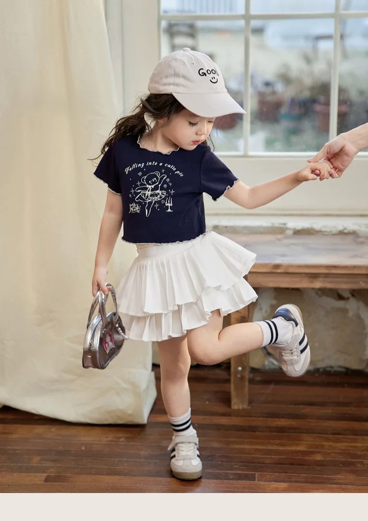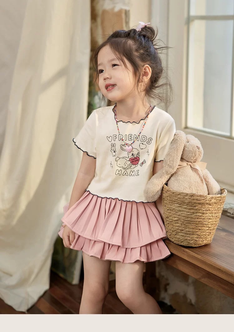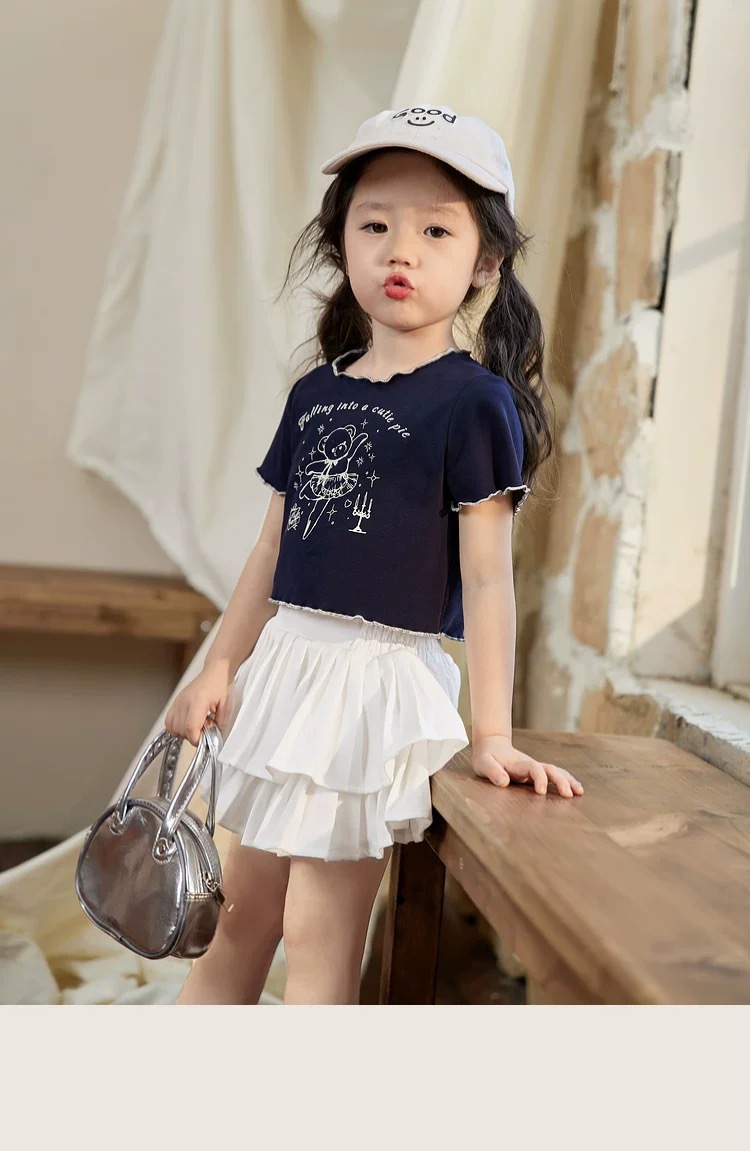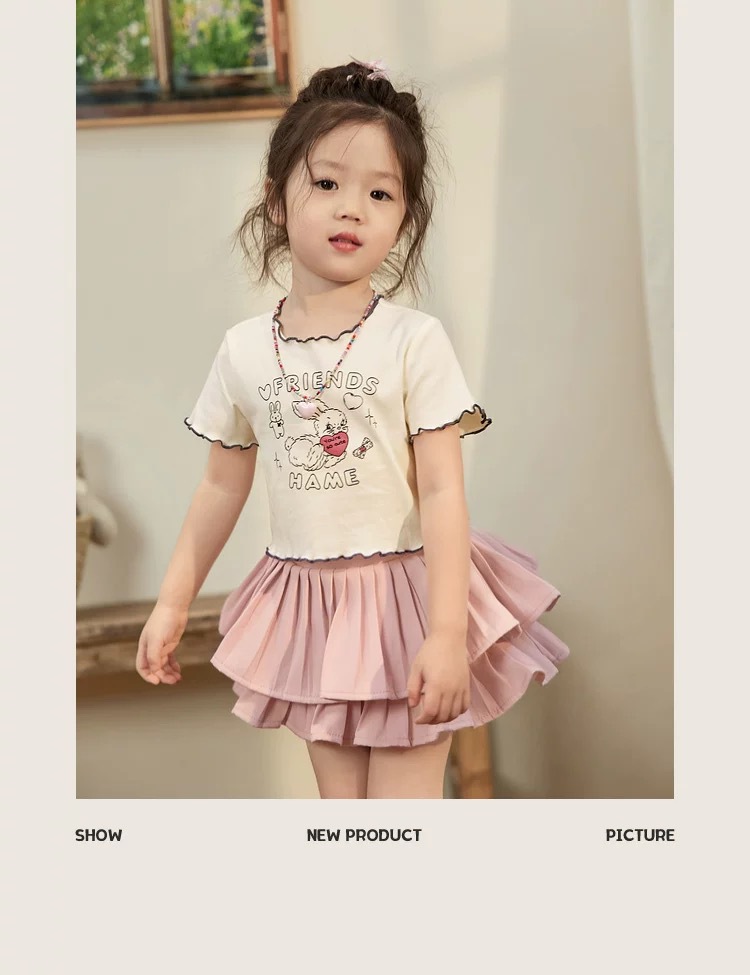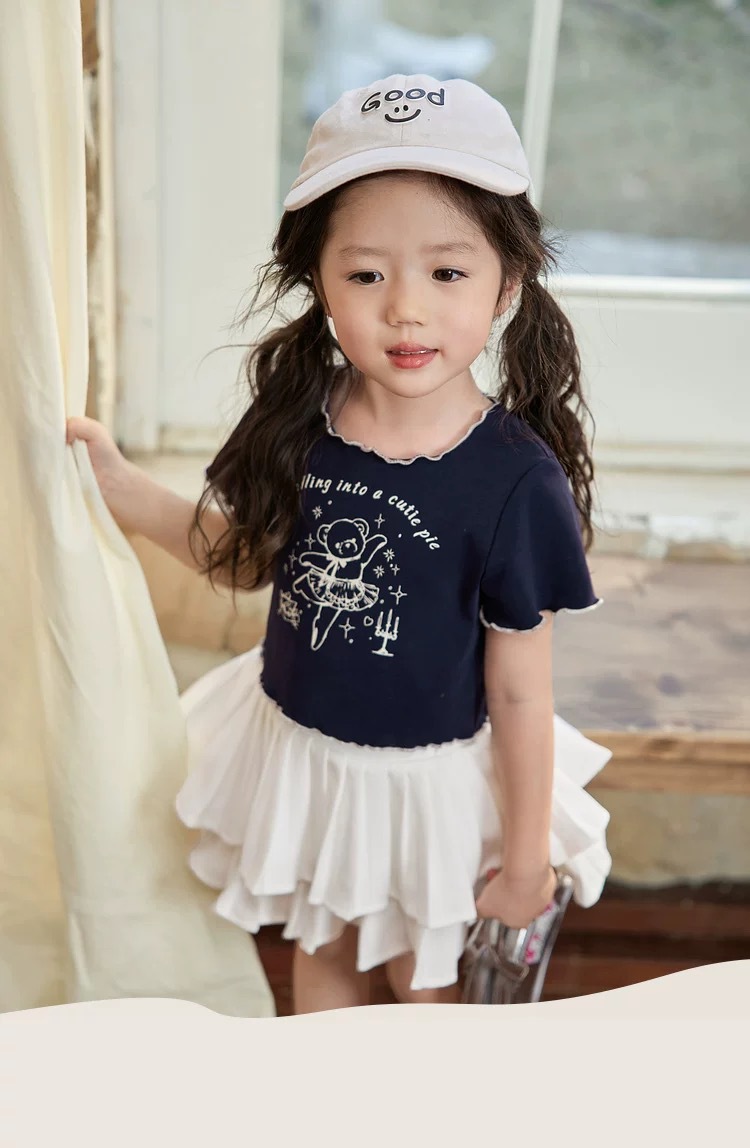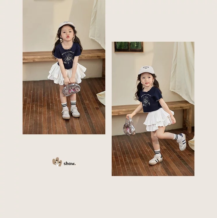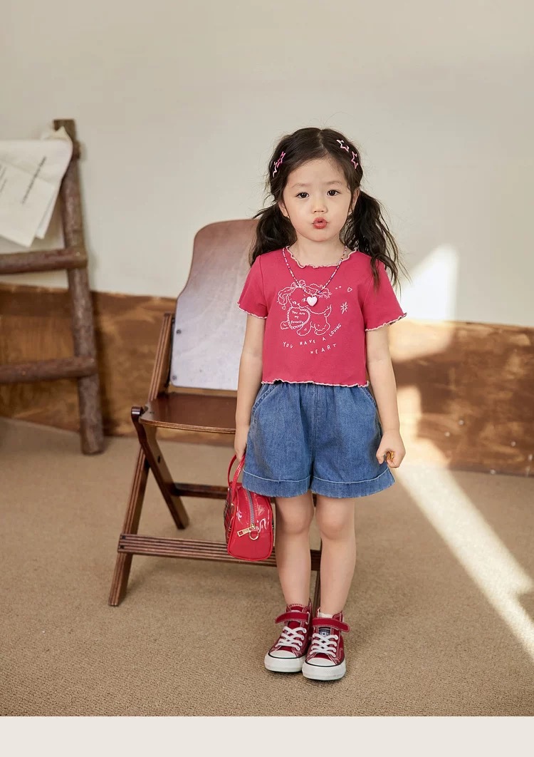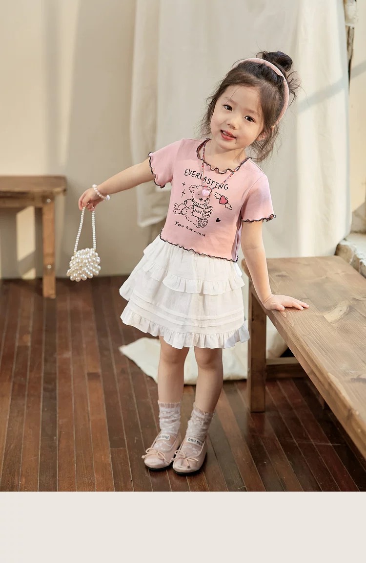 아동복 소녀 반팔 티셔츠 여름 2025 새로운 어린이 올매치 우드 이어 탑 트렌디 프린트 티셔츠 아기 소녀 용스토어 가기