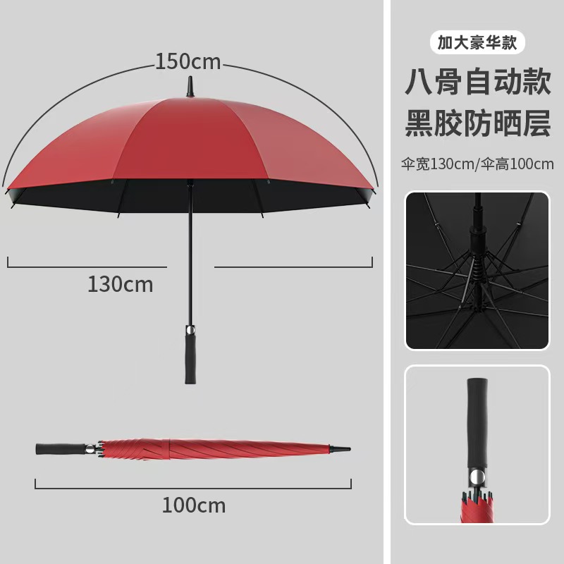 맞춤형 로고 골프용 긴 손잡이 직립형 우산 자동 우산 두꺼워지고 확대된 강화형 방풍 우산 비와 햇볕 모두 사용 가능