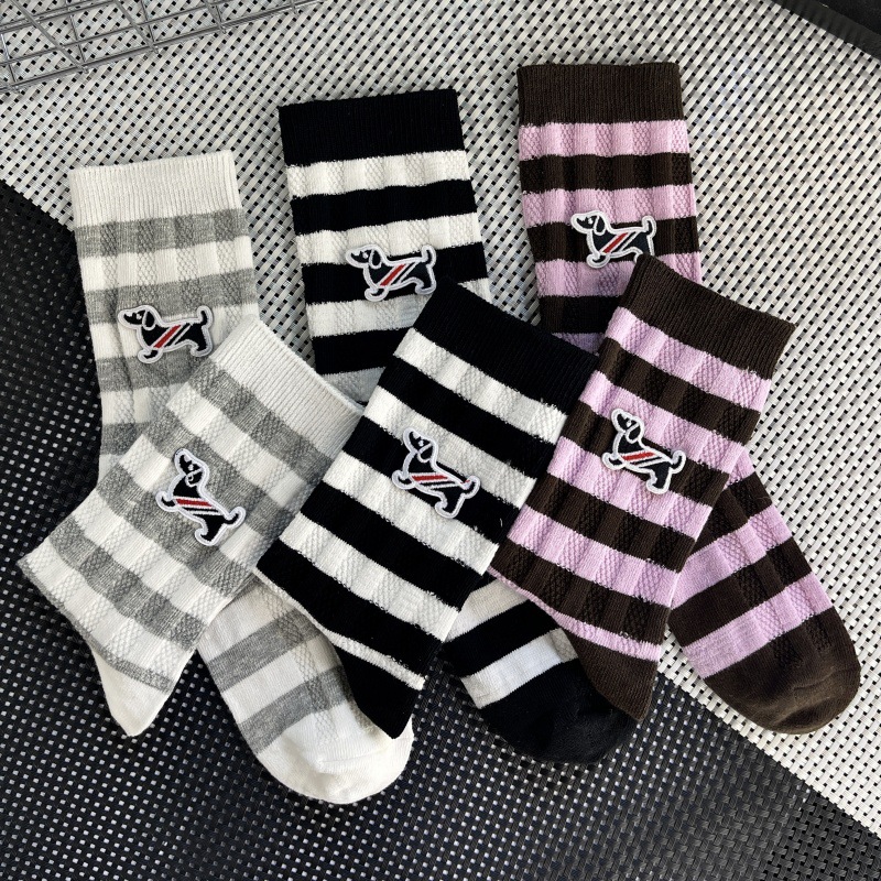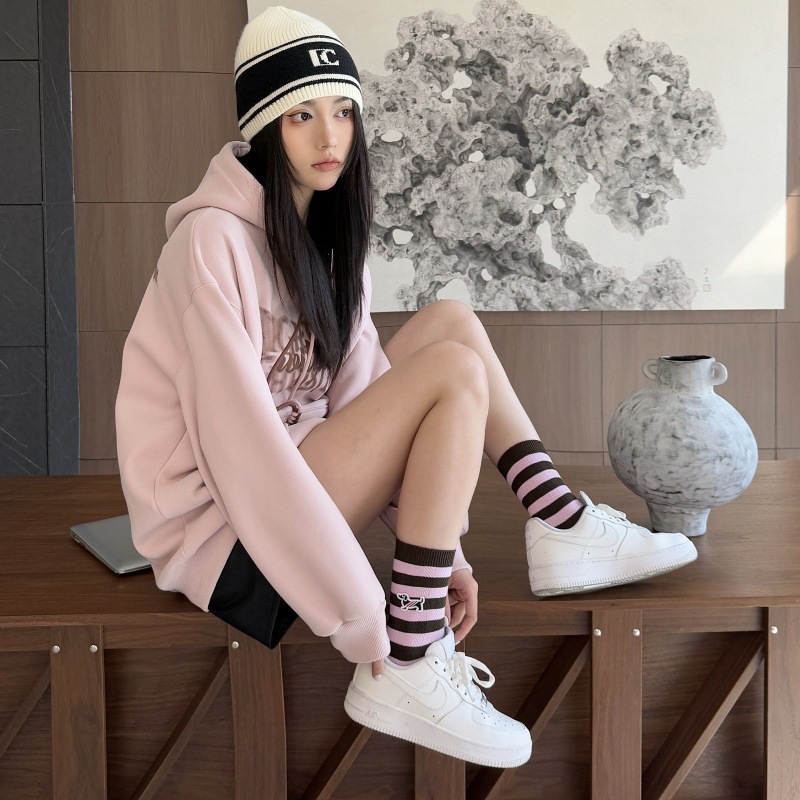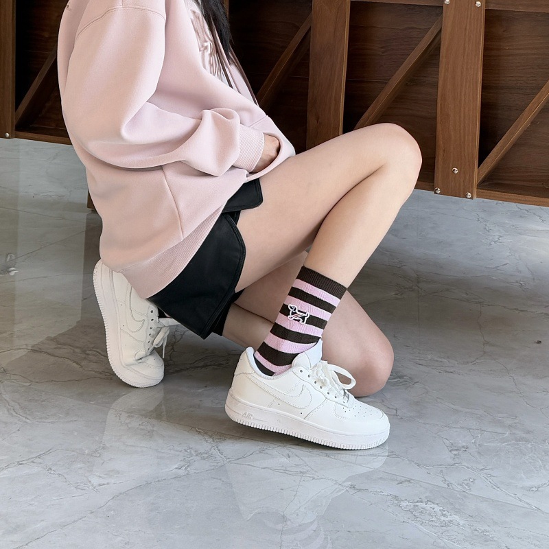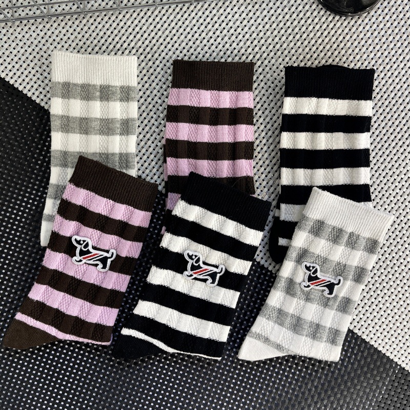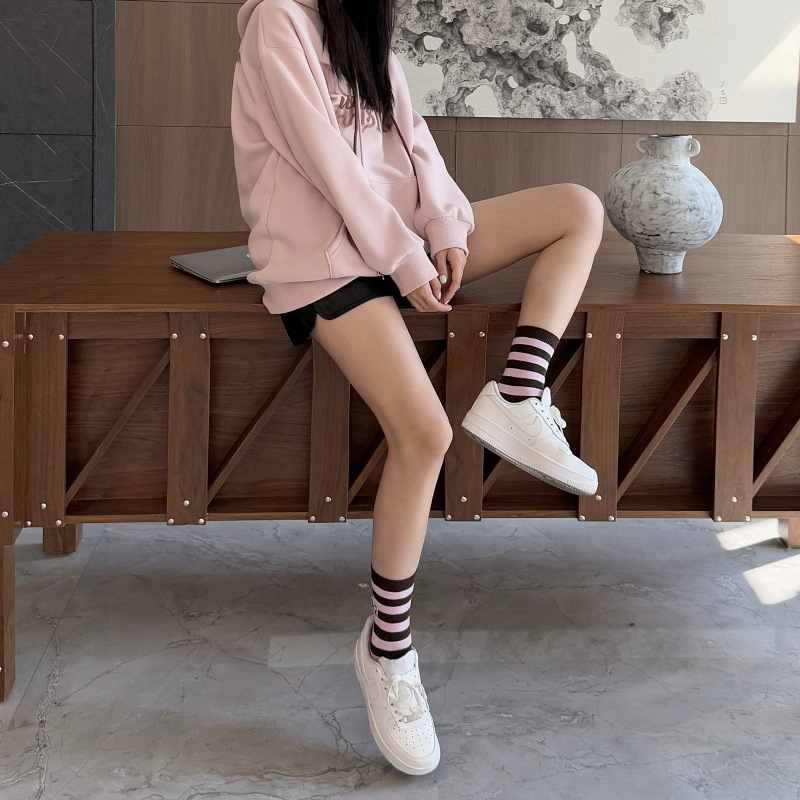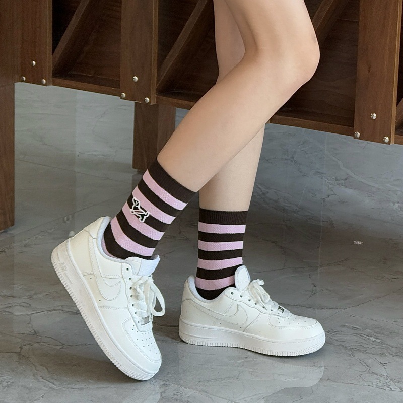 2025 봄과 여름 새로운 유럽 양말 여성의 세련된 양말 긴 개 줄무늬 세련된 스택 양말 외부 착용 중간 길이 양말스토어 가기