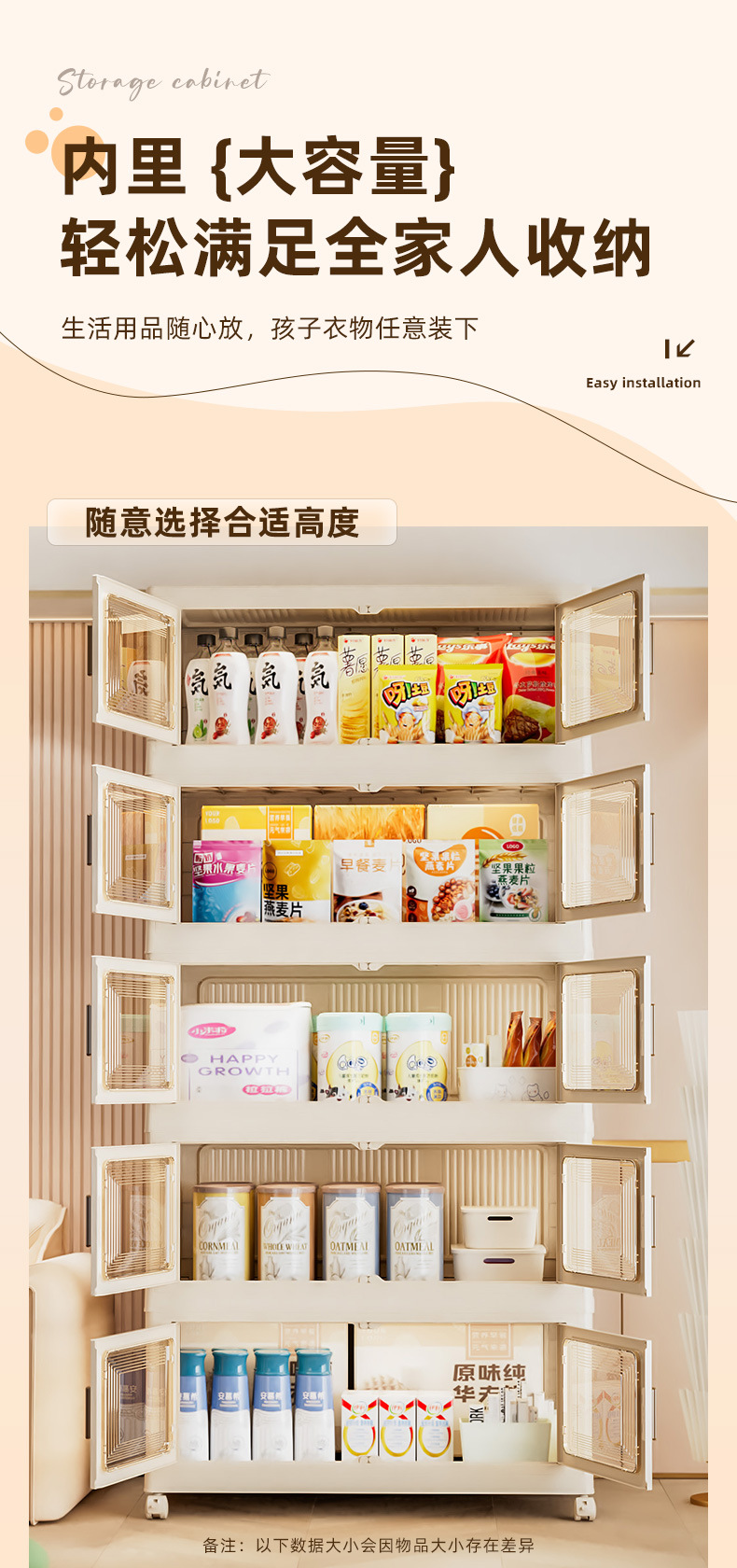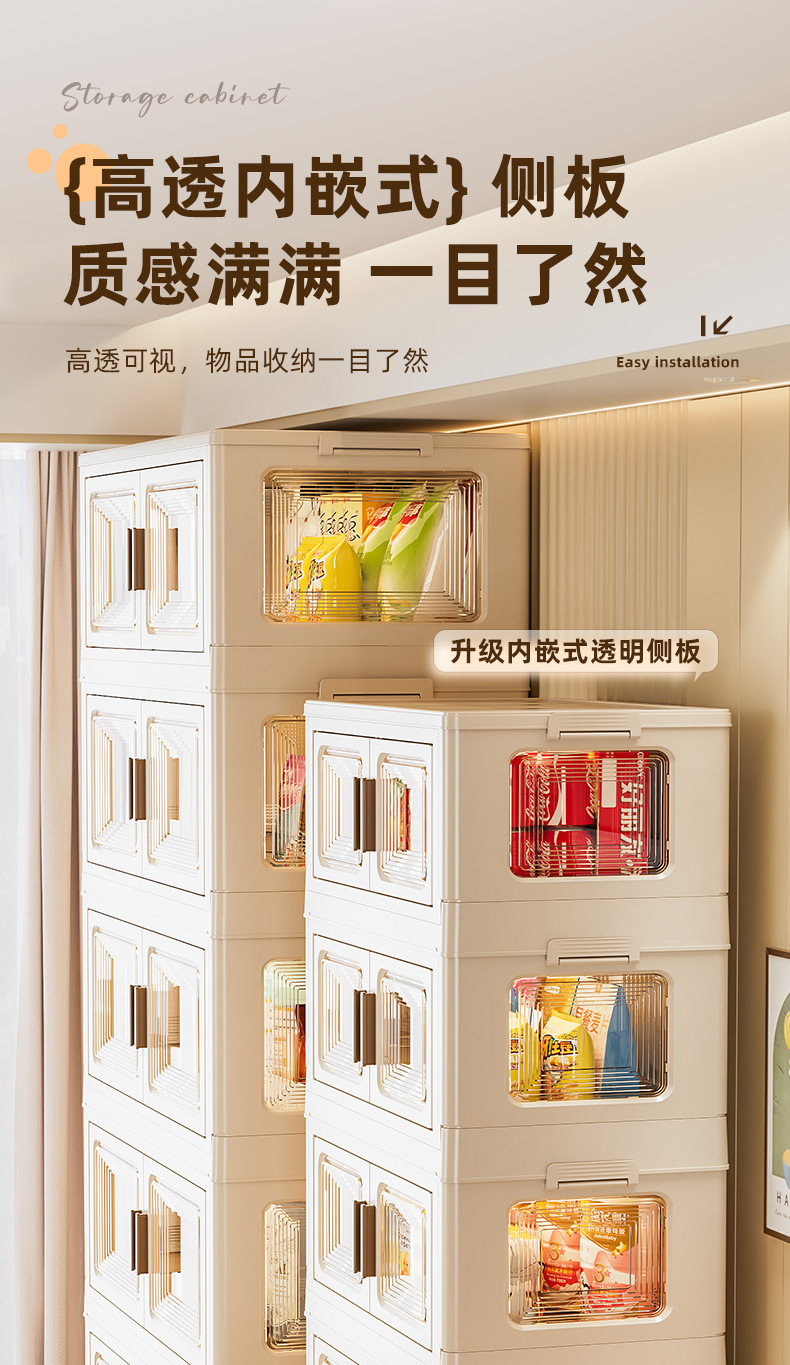 가정용 스낵 장난감 플라스틱 보관 캐비닛 캐비닛 설치 무료 보관 캐비닛 접이식 어린이 옷장 옷
