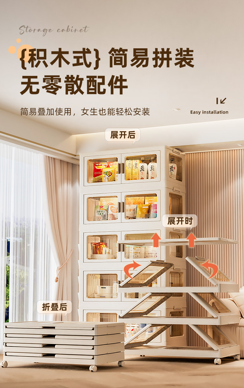 가정용 스낵 장난감 플라스틱 보관 캐비닛 캐비닛 설치 무료 보관 캐비닛 접이식 어린이 옷장 옷스토어 가기