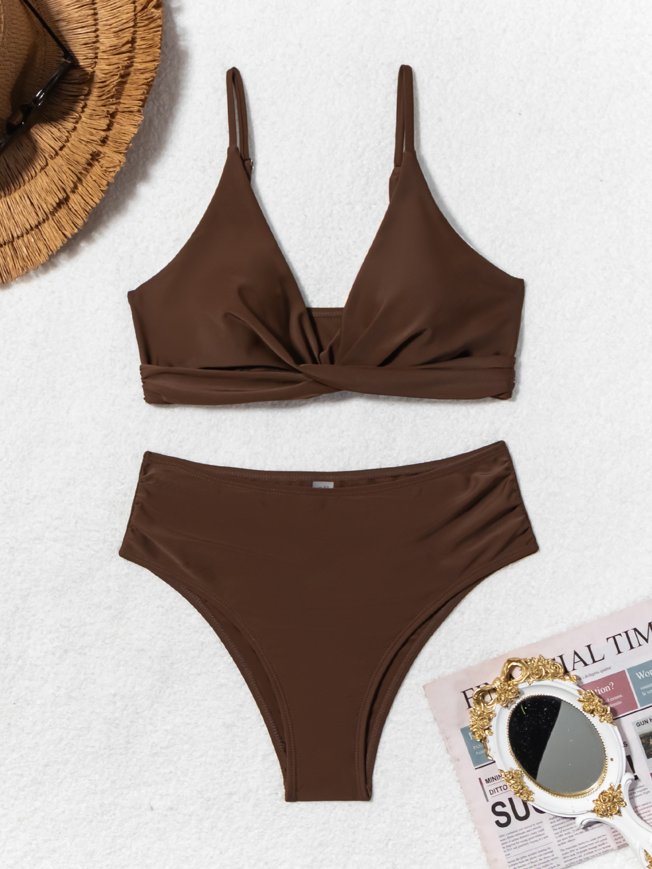 해외 창고 직배송 인기 여성용 단색 심플 패션 섹시한 끈 비키니 분리형 수영복 도매스토어 가기