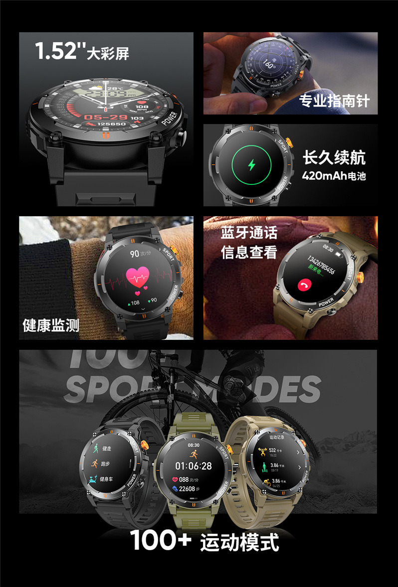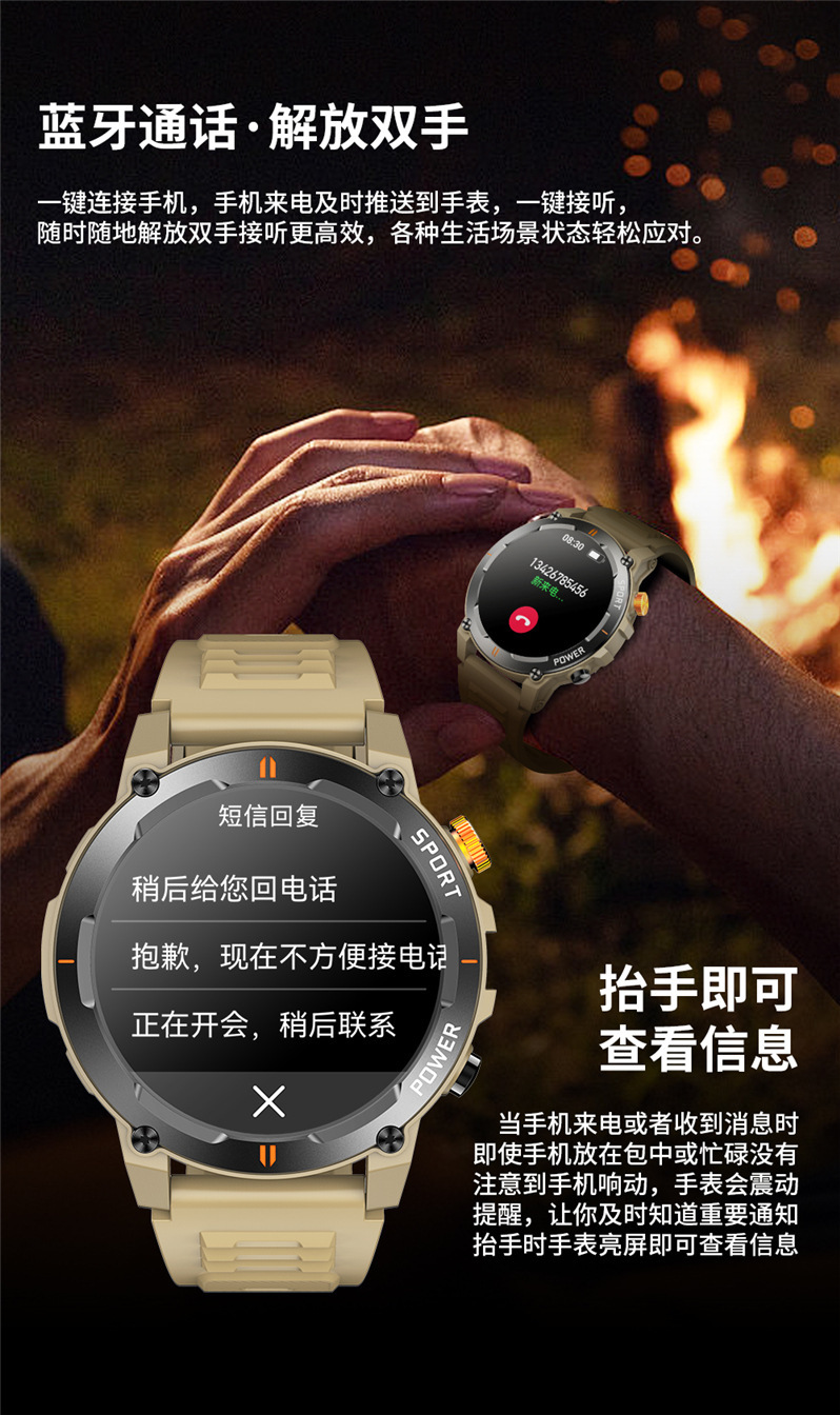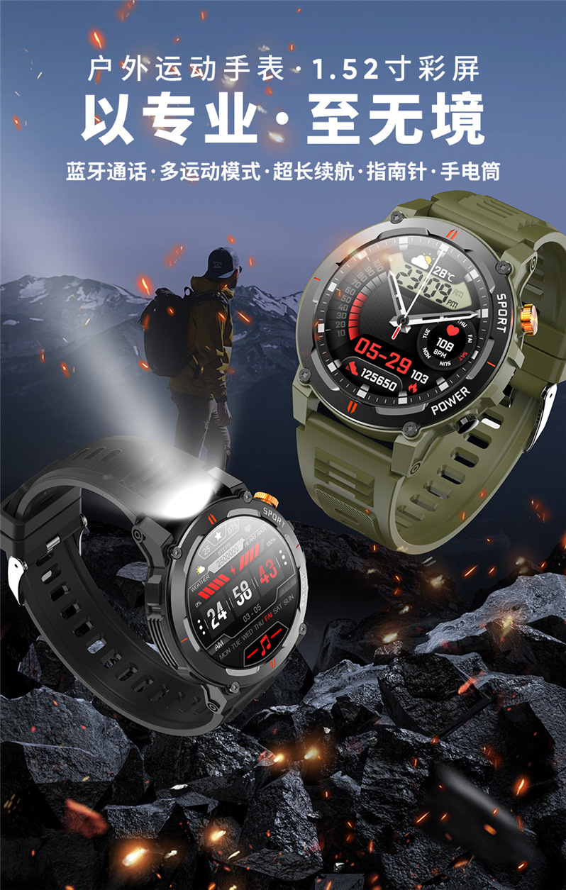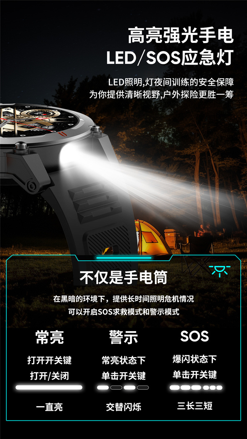 새로운 J300 스마트워치 블루투스 통화 LED 손전등 음성 어시스턴트 만보계 야외용 남성용 팔찌