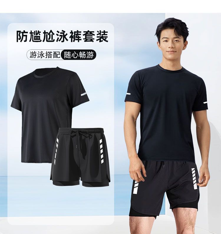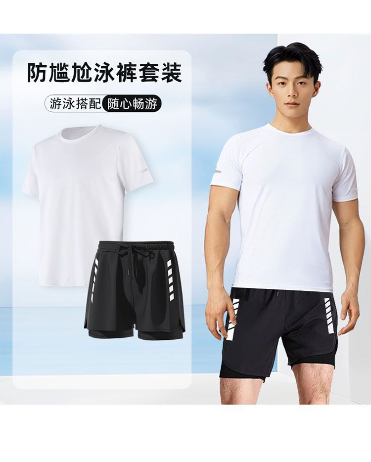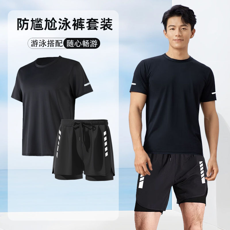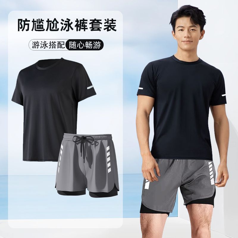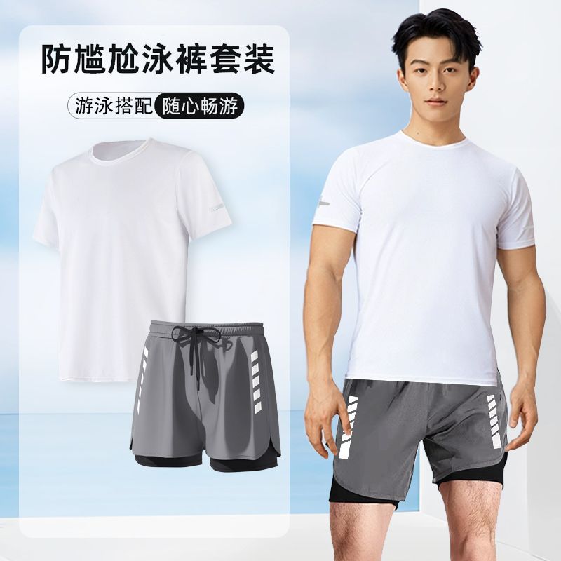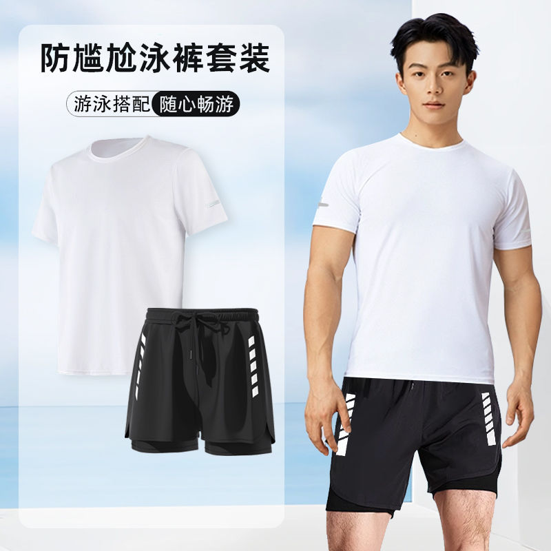 수영복 남자 세트 느슨한 해변 수영 전신 빠른 건조 장비 당황하지 않는 수영 트렁크 남자 온천 수영복