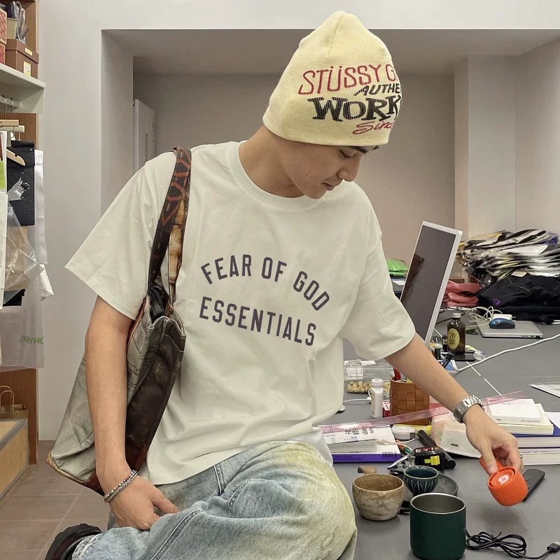 FOG STACK ESSENTIALS 틈새 트렌드 브랜드 아메리칸 스타일 여름 순면 루즈핏 남녀공용 반팔 티셔츠스토어 가기