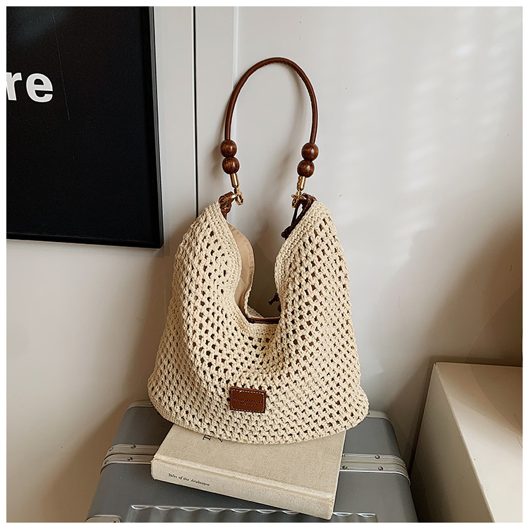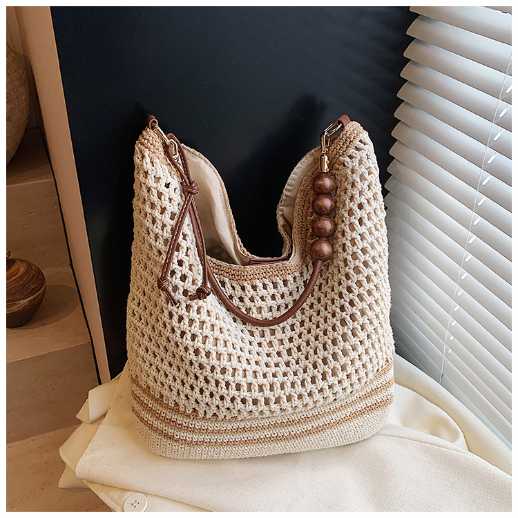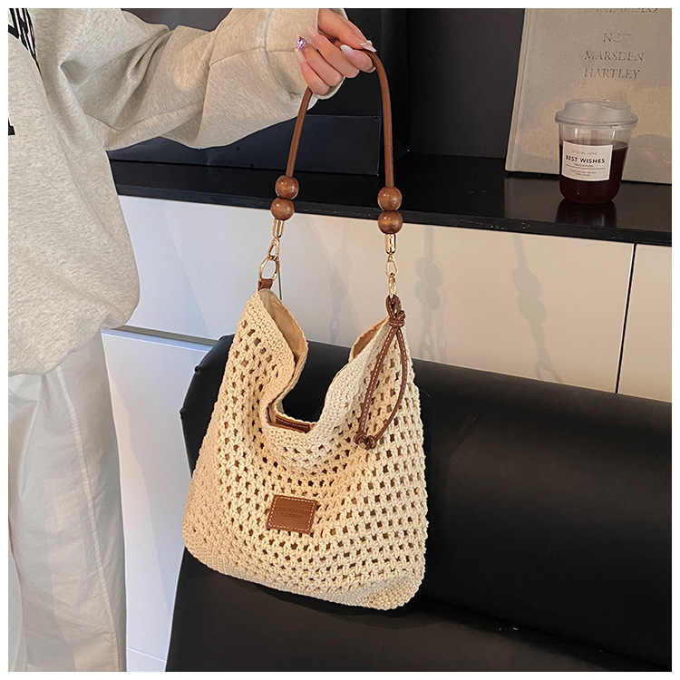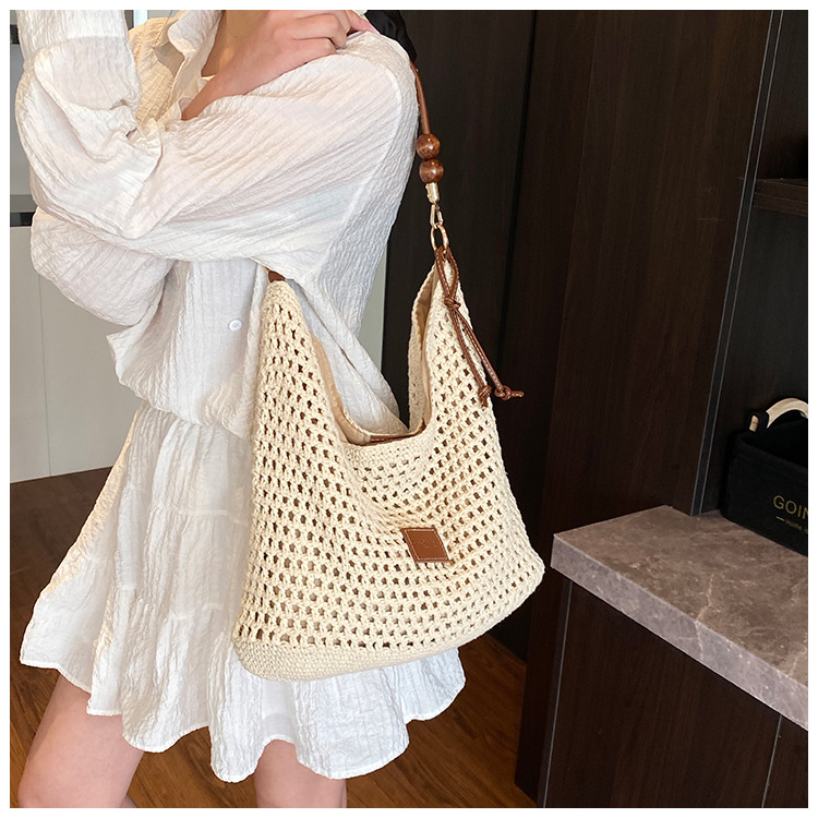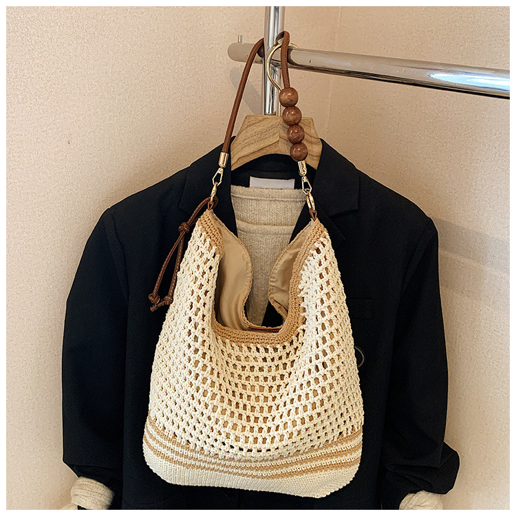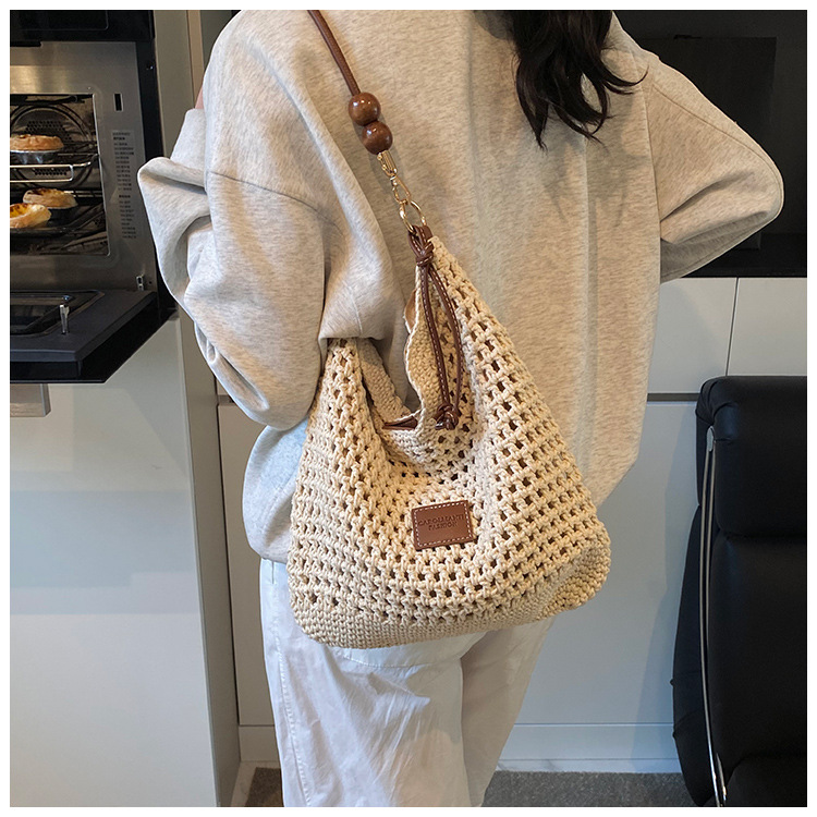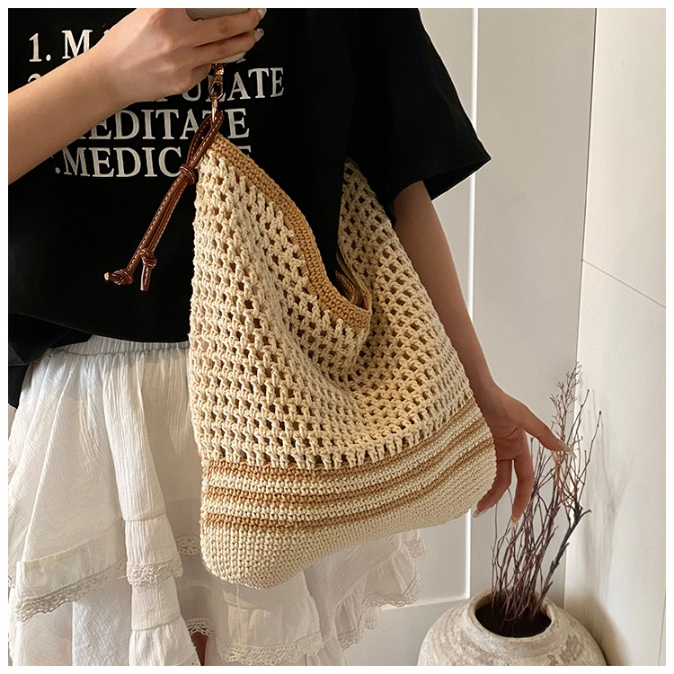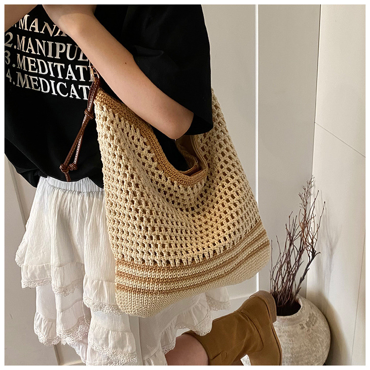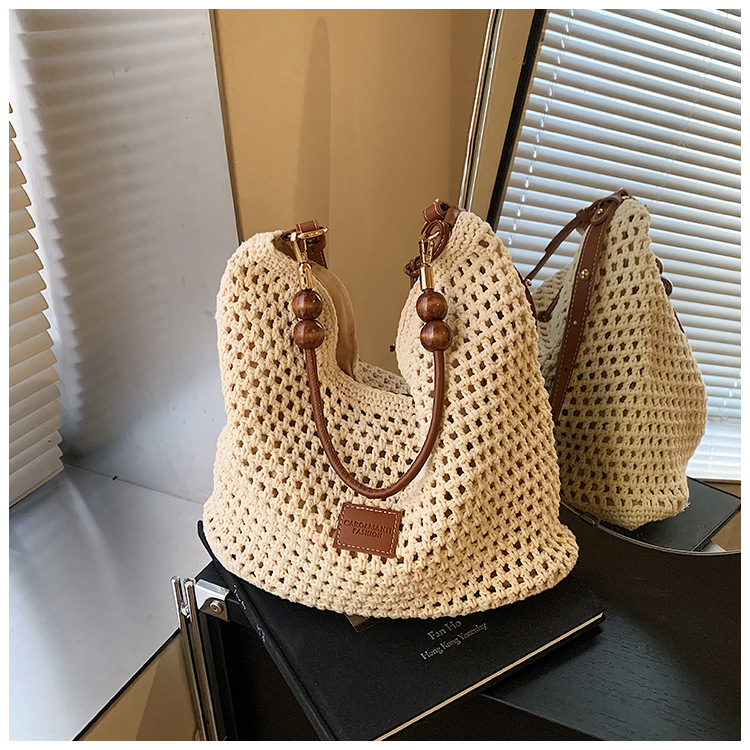 휴가 스타일 여성용 니트 가방 2026 여름 신상 패션 속이 비치는 니트 숄더백 대용량 통근 토트백