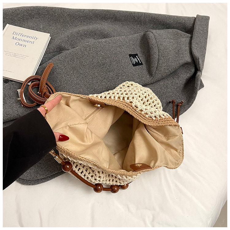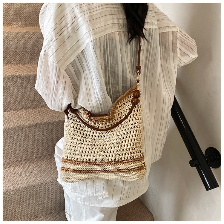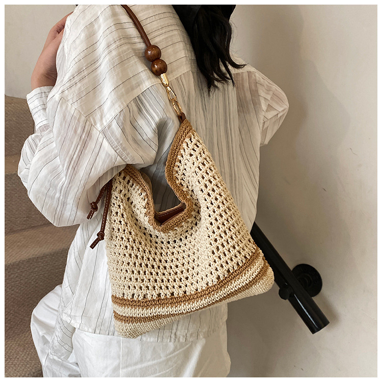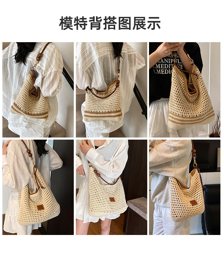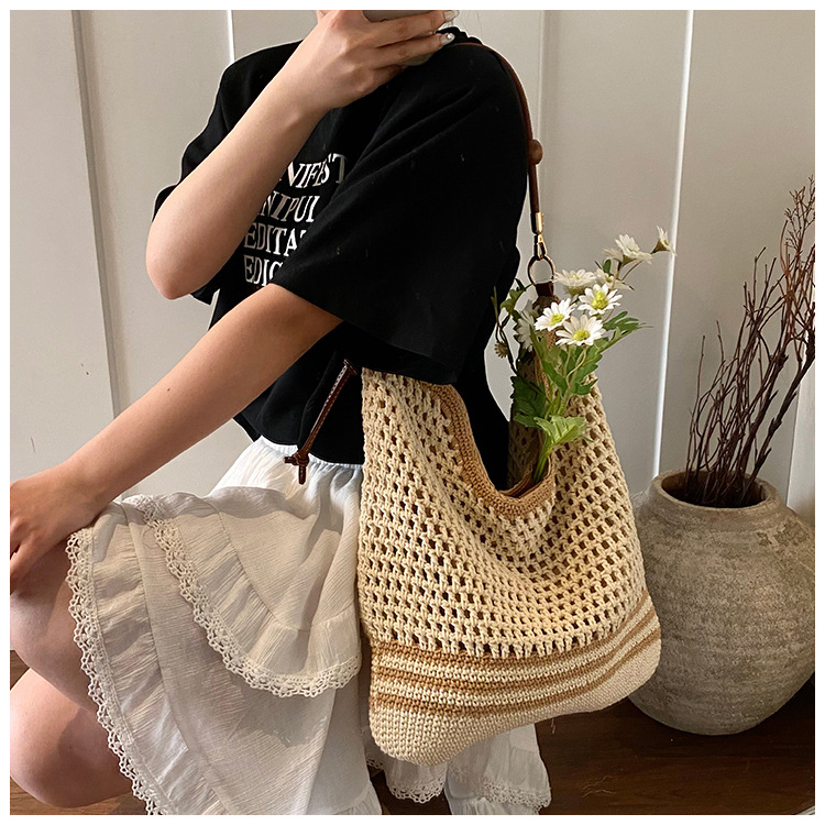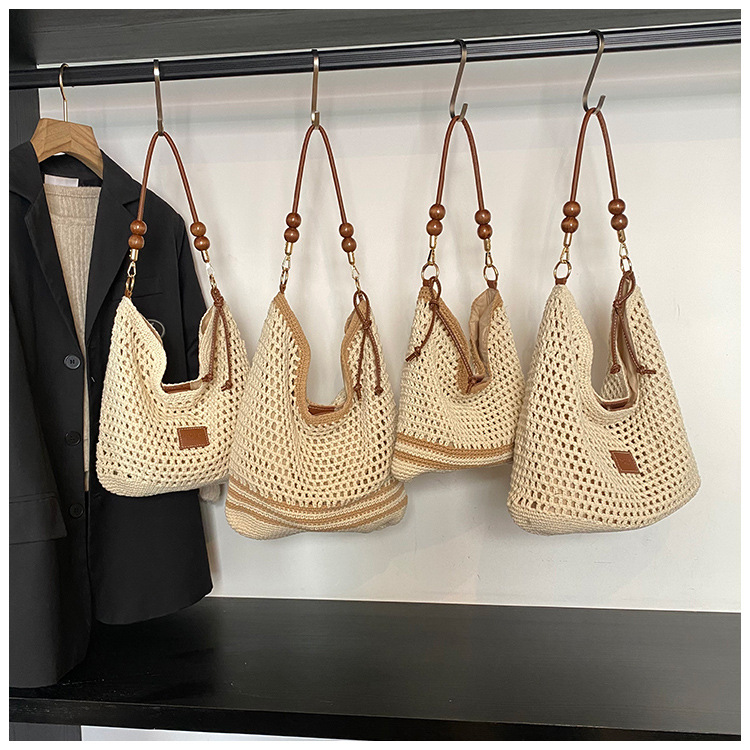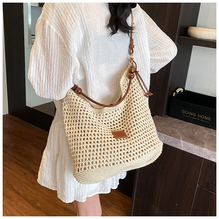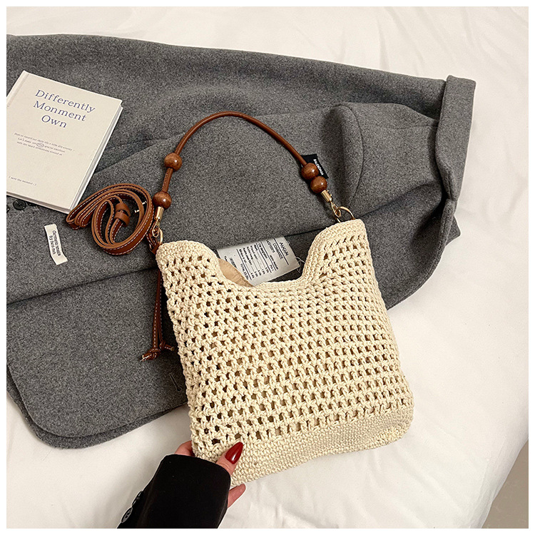 휴가 스타일 여성용 니트 가방 2026 여름 신상 패션 속이 비치는 니트 숄더백 대용량 통근 토트백