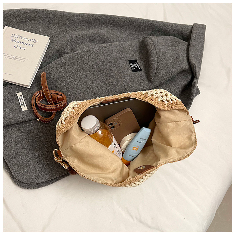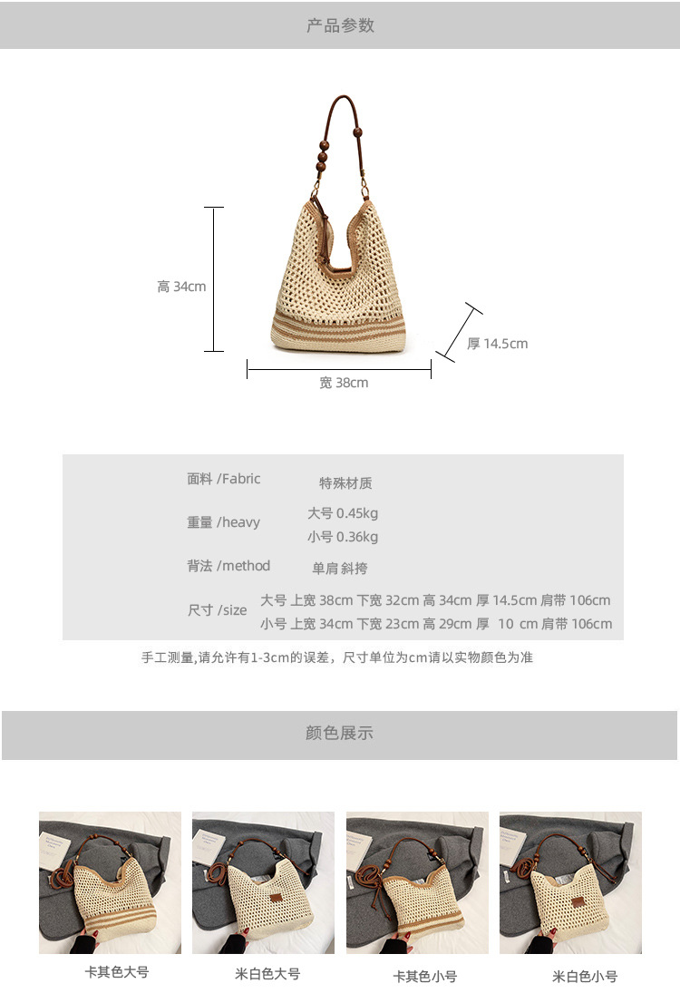 휴가 스타일 여성용 니트 가방 2026 여름 신상 패션 속이 비치는 니트 숄더백 대용량 통근 토트백스토어 가기