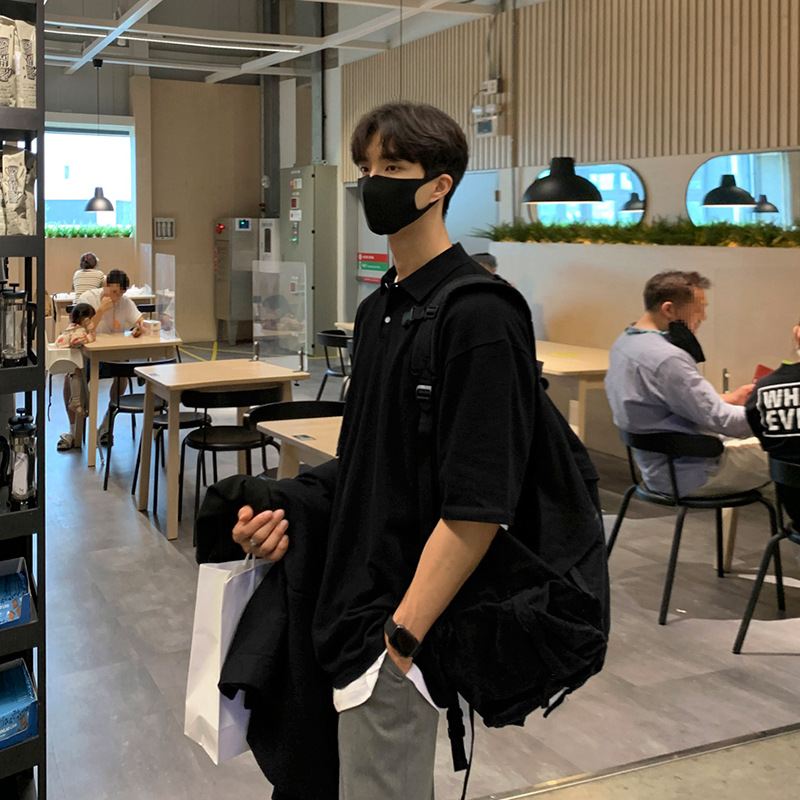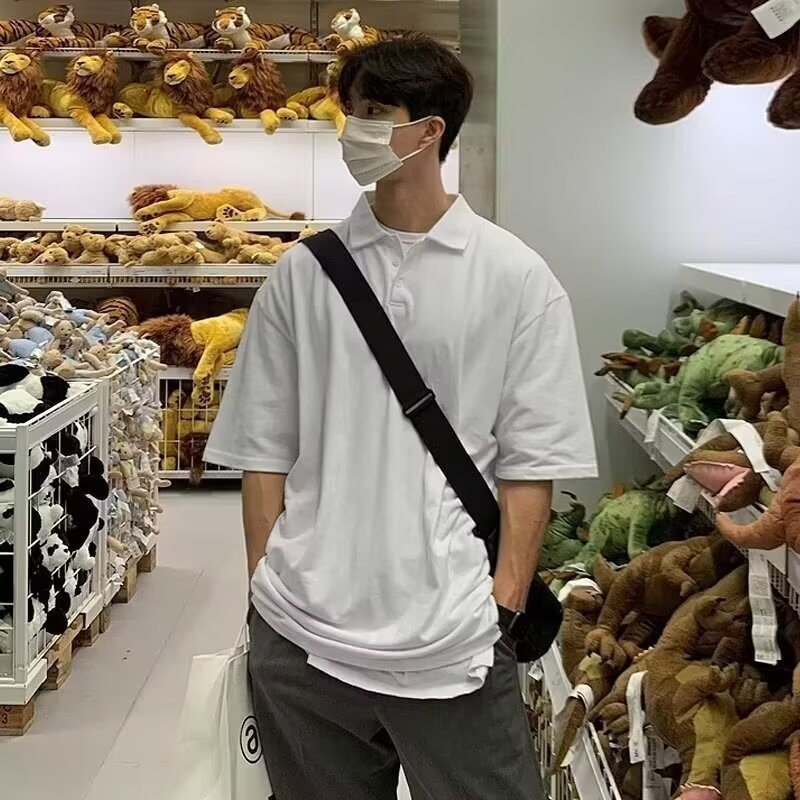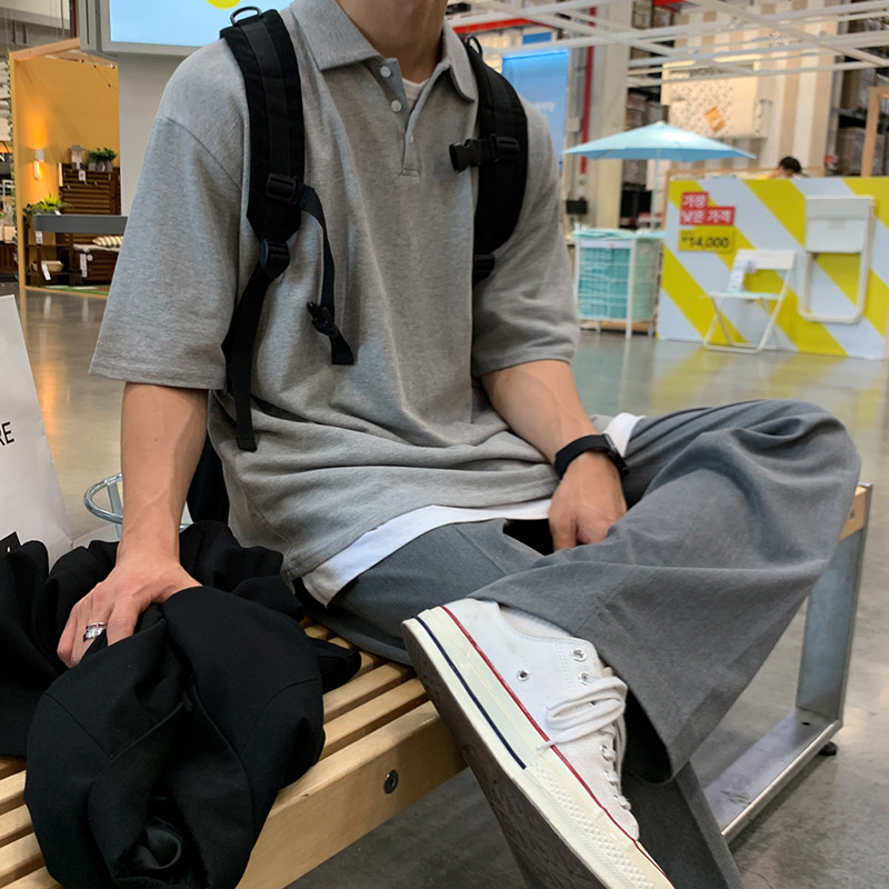 솔리드 컬러 반팔 폴로 셔츠 남자 여름 간단한 잘 생긴 반소매 티셔츠 한국식 루즈 트렌디 반소매 티셔츠스토어 가기