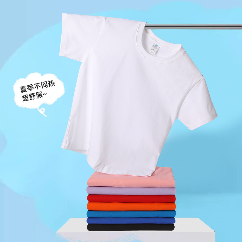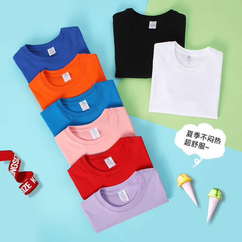 210g 오프 숄더 아동용 반팔 티셔츠 부모-자식 반팔 클래스 유니폼 그룹 유니폼 광고 셔츠 문화 셔츠 인쇄 로고스토어 가기