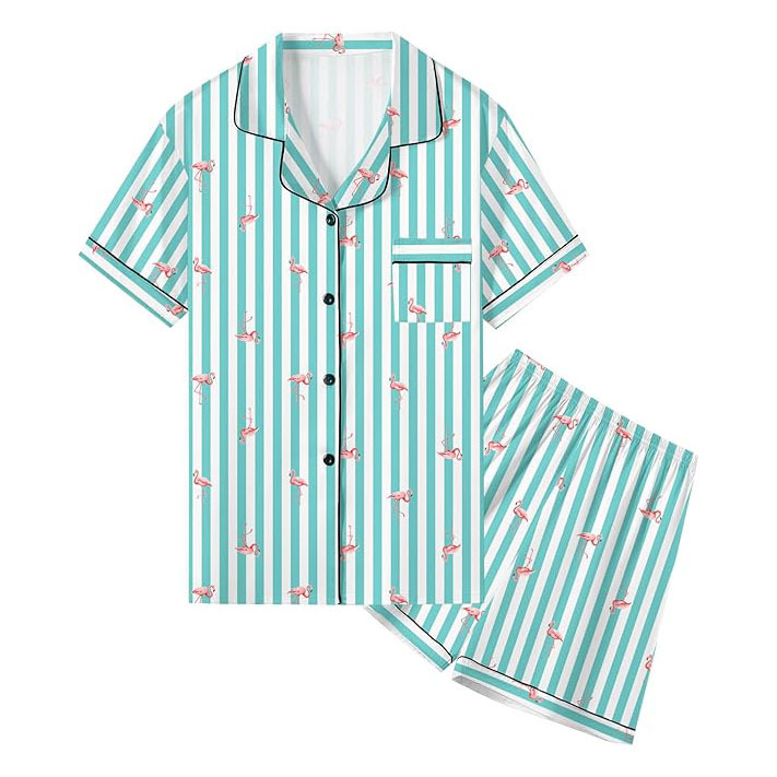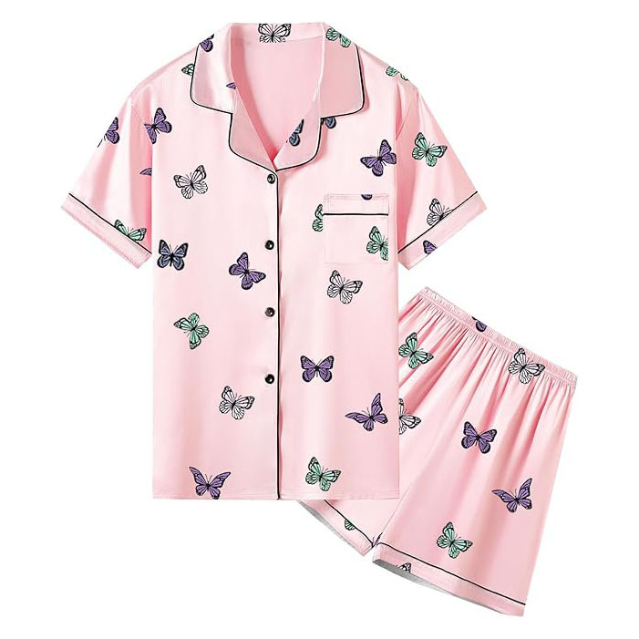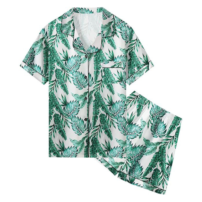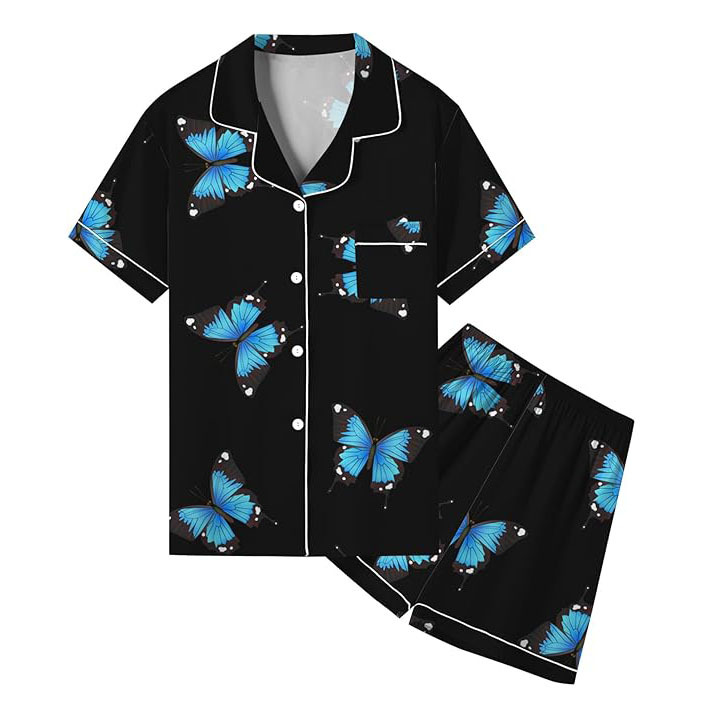 대외 무역 패션 새로운 나비 인쇄 아이스 실크 파자마 세트 유럽과 미국의 격자 무늬 소설 홈 의류 세트