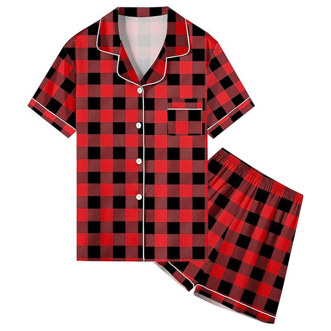 대외 무역 패션 새로운 나비 인쇄 아이스 실크 파자마 세트 유럽과 미국의 격자 무늬 소설 홈 의류 세트스토어 가기