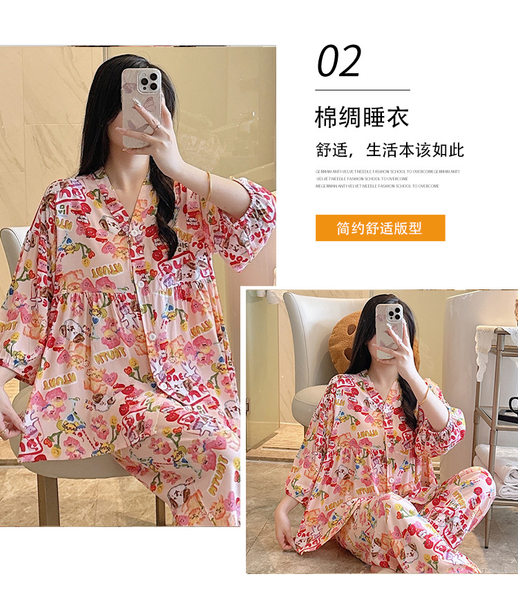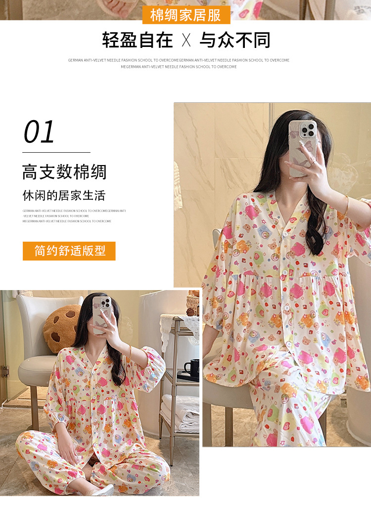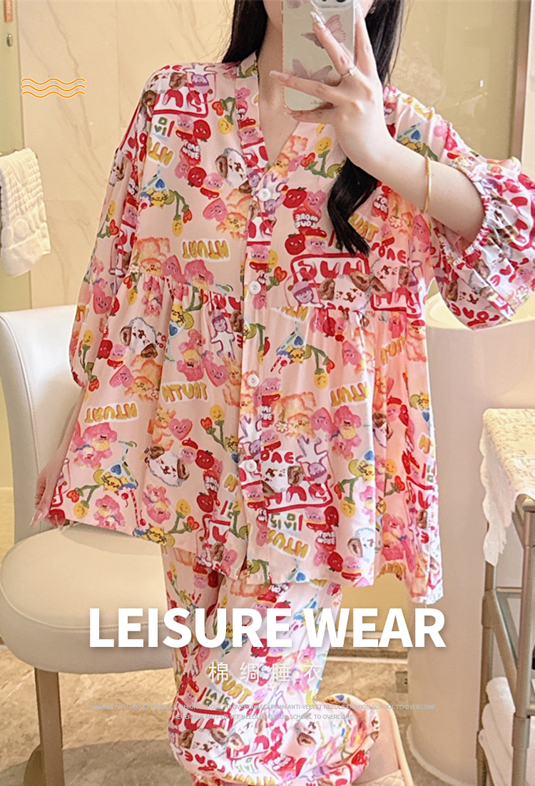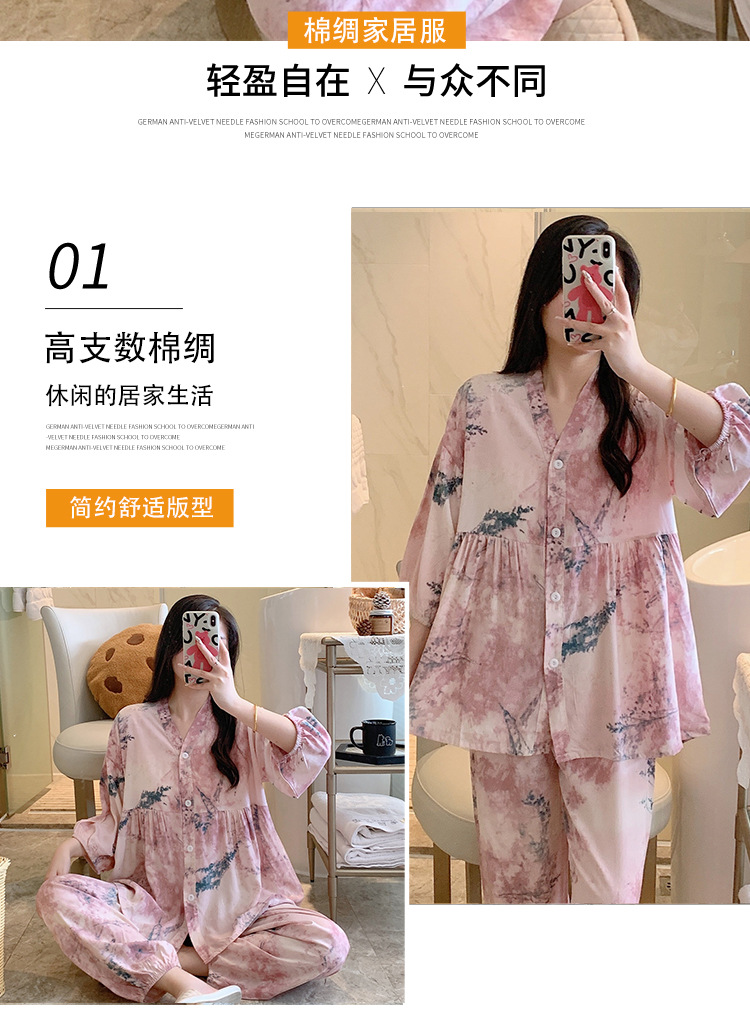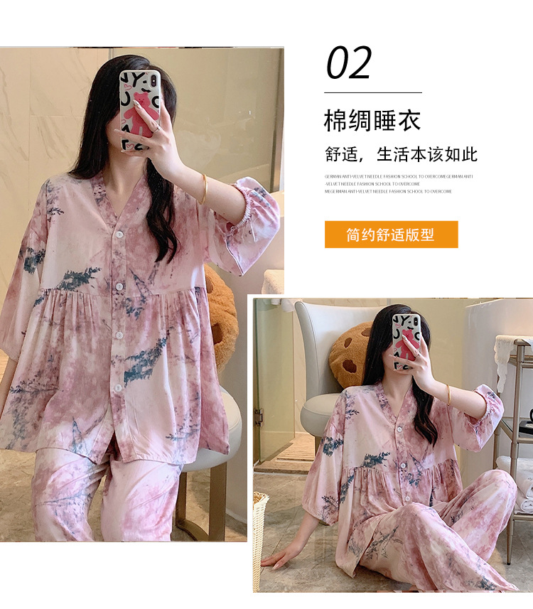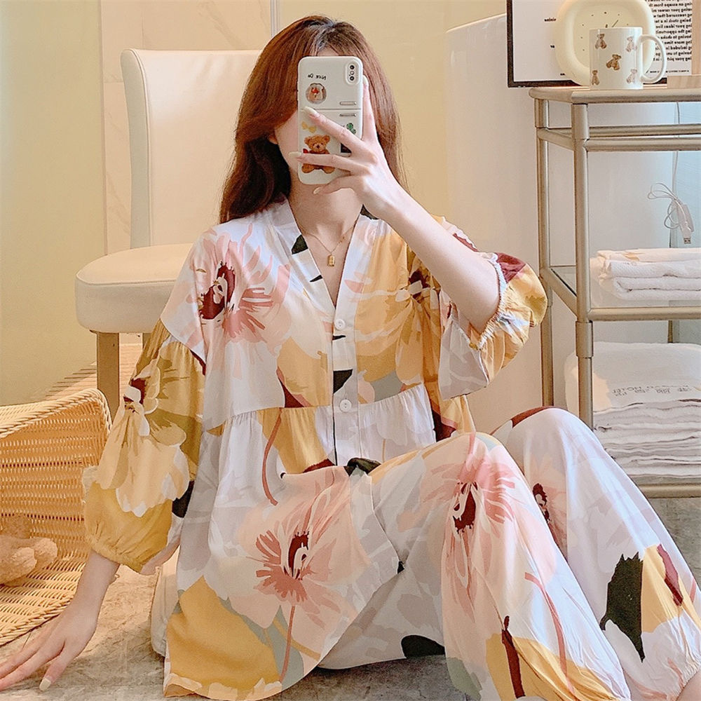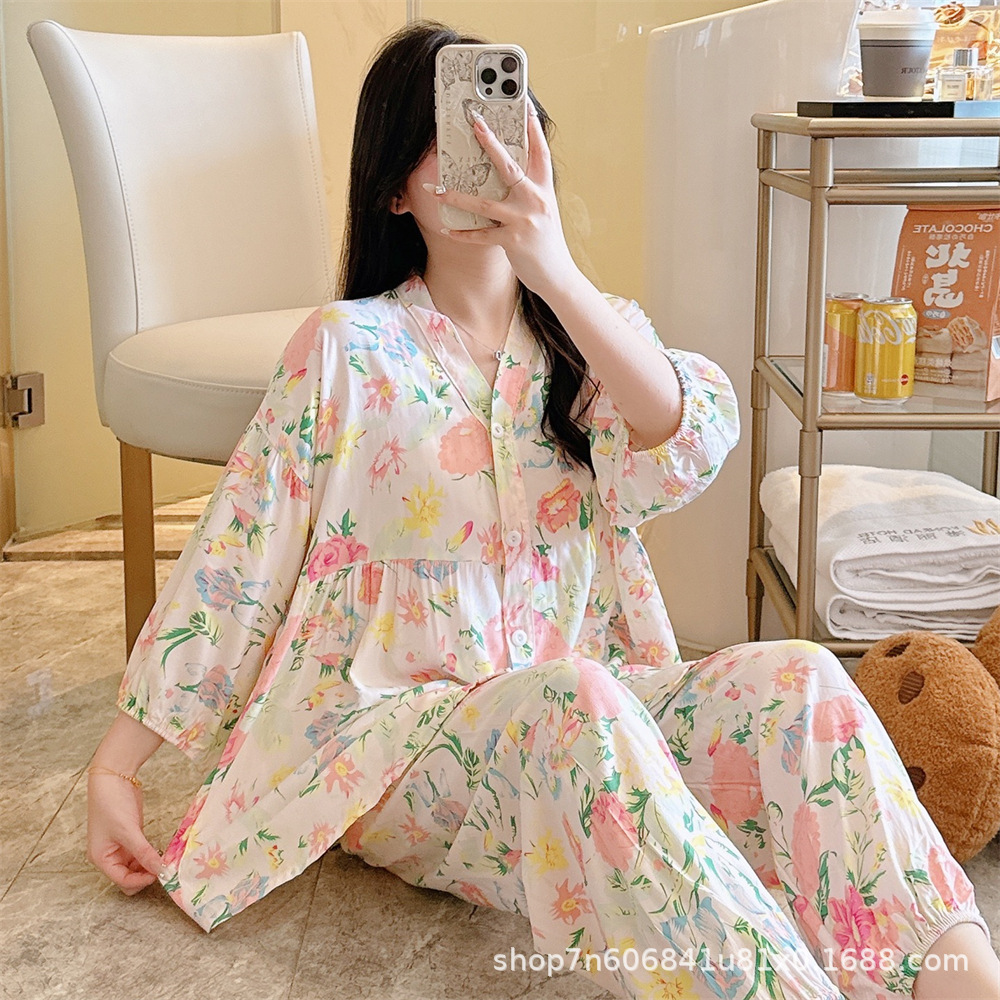 뉴 코튼 실크 파자마 여성 달콤한 봄과 여름 아우터 입고 플러스 사이즈 한국 스타일 달콤한 자른 슬리브 바지 하이 엔드 홈스토어 가기