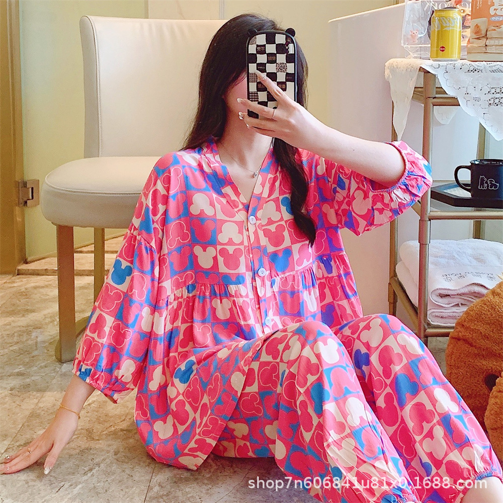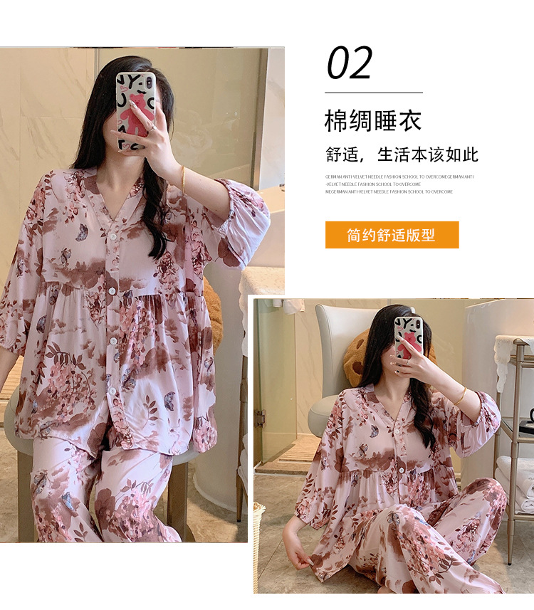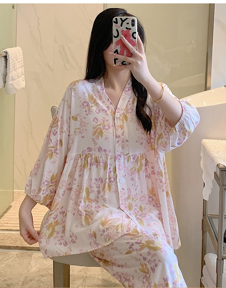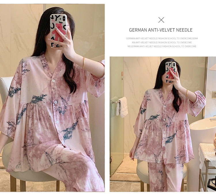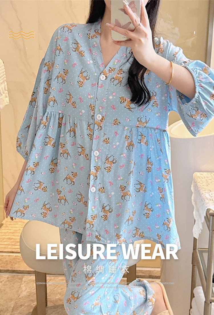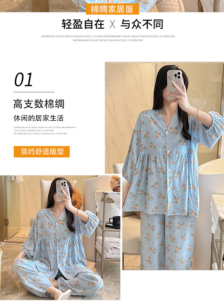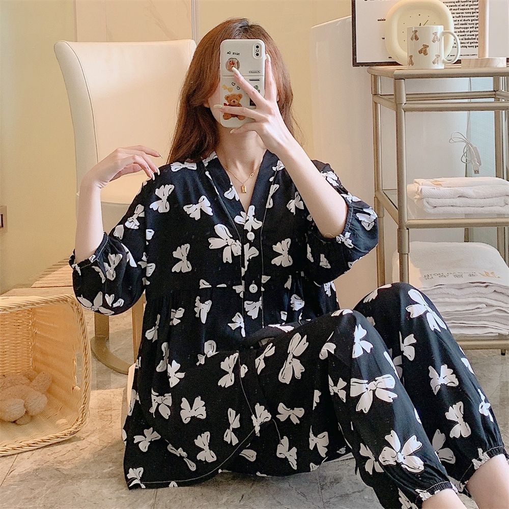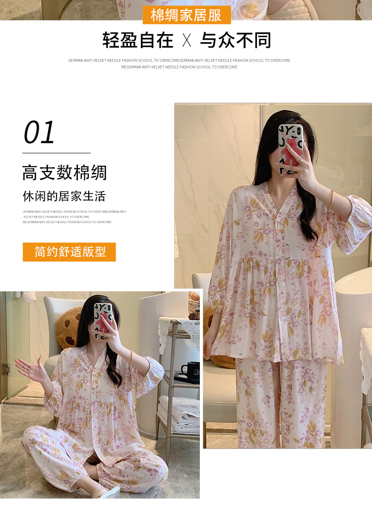 뉴 코튼 실크 파자마 여성 달콤한 봄과 여름 아우터 입고 플러스 사이즈 한국 스타일 달콤한 자른 슬리브 바지 하이 엔드 홈스토어 가기