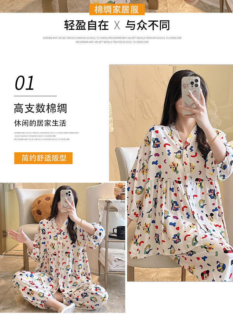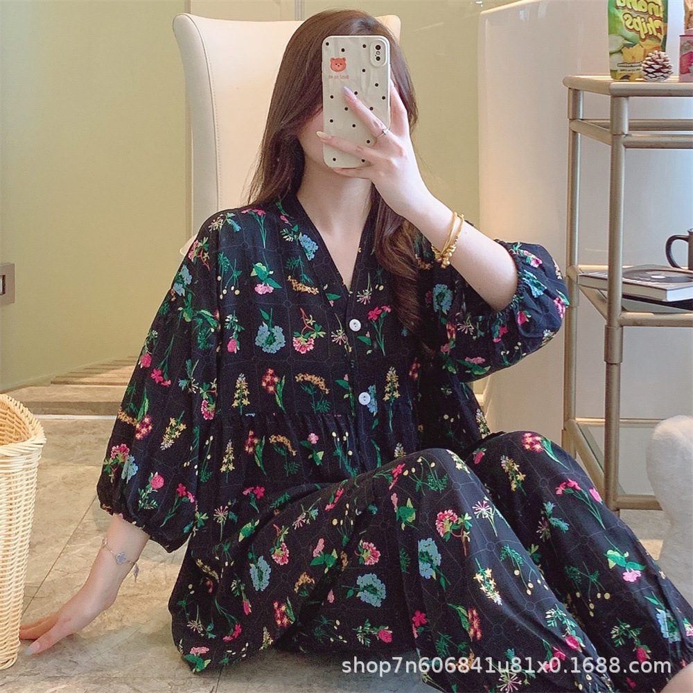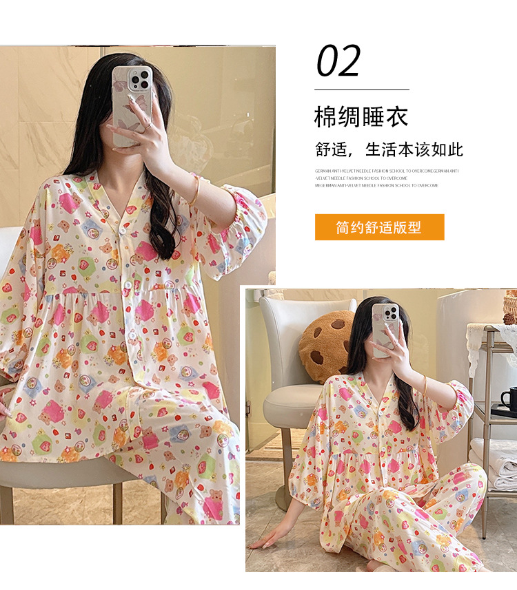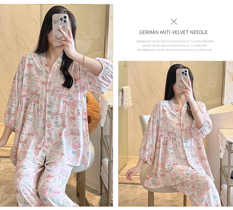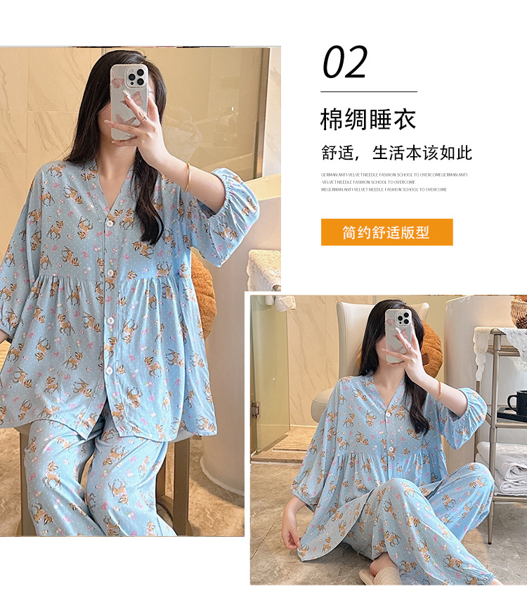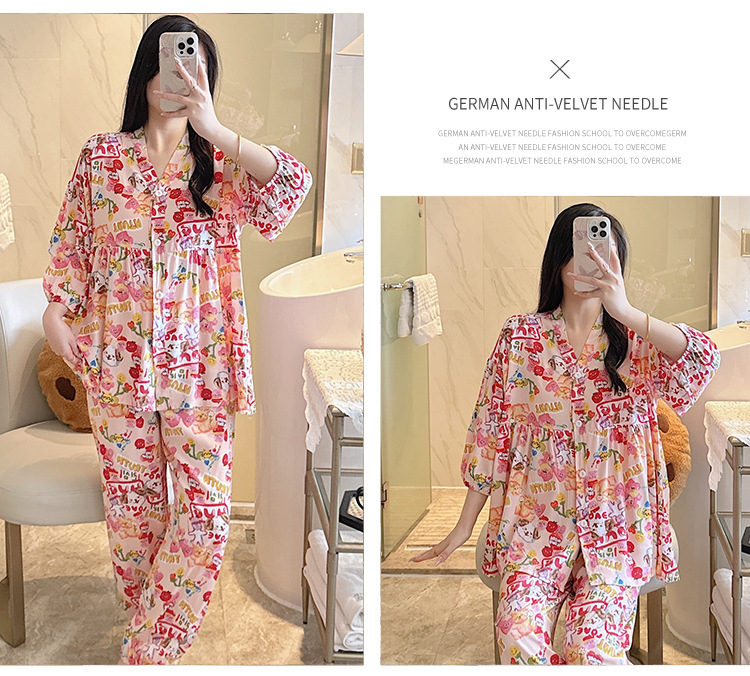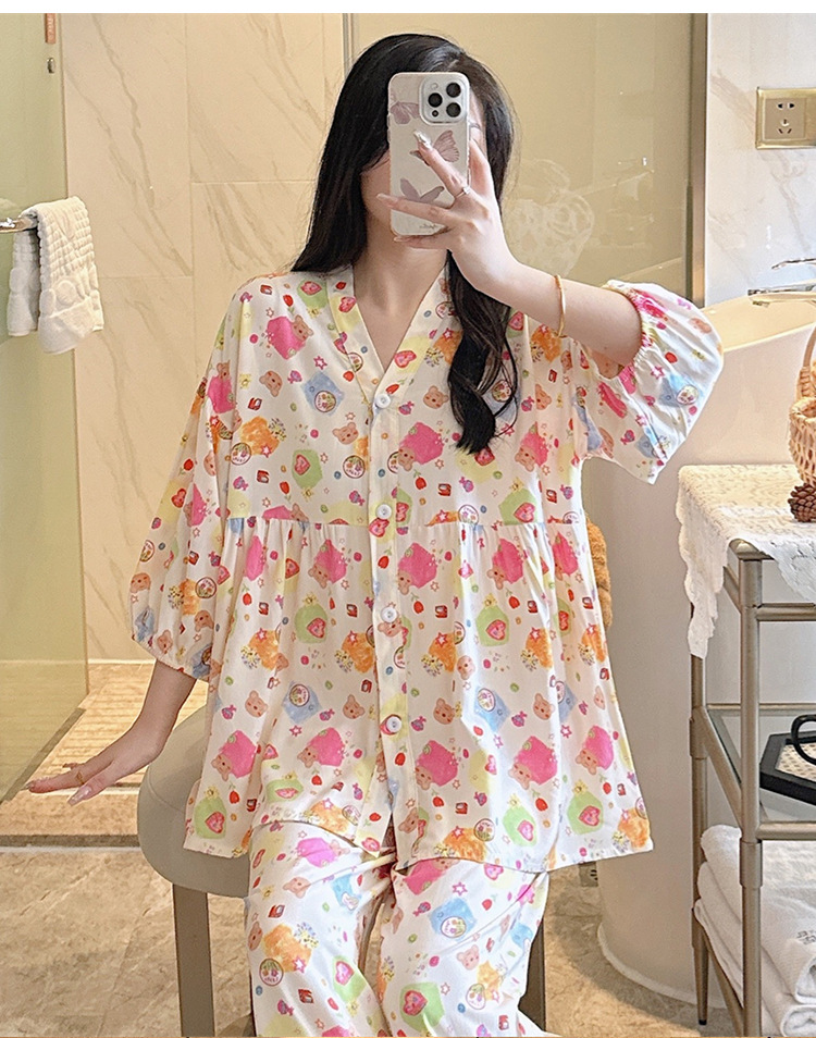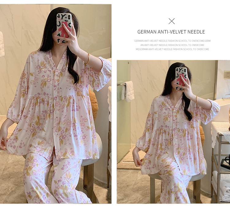 뉴 코튼 실크 파자마 여성 달콤한 봄과 여름 아우터 입고 플러스 사이즈 한국 스타일 달콤한 자른 슬리브 바지 하이 엔드 홈스토어 가기