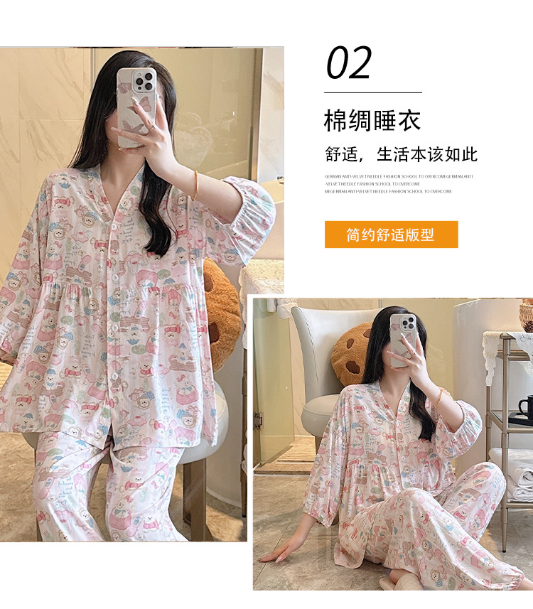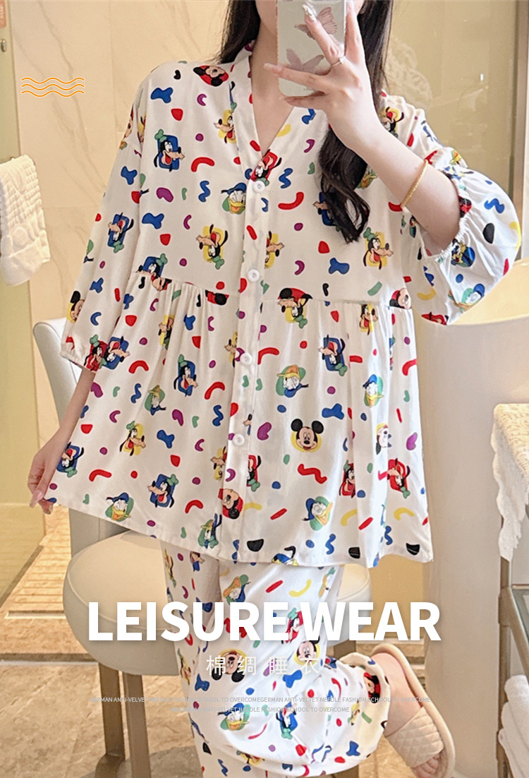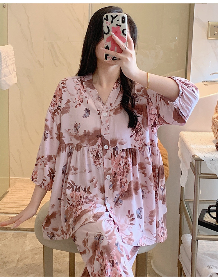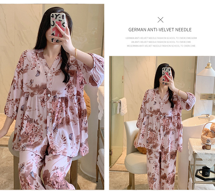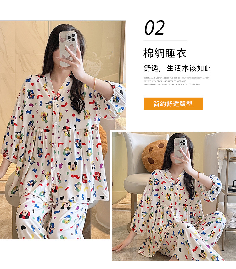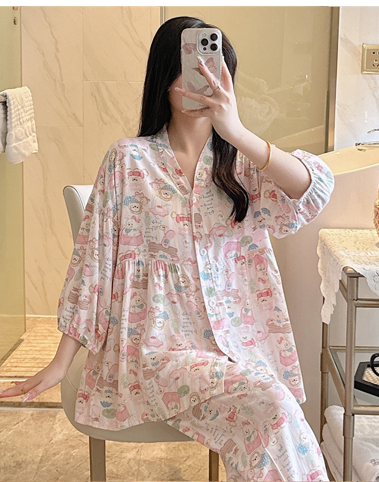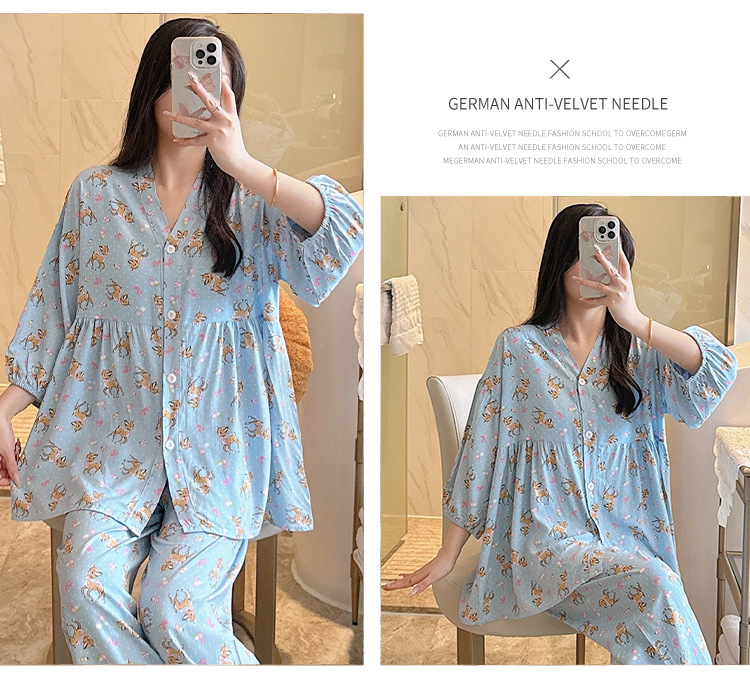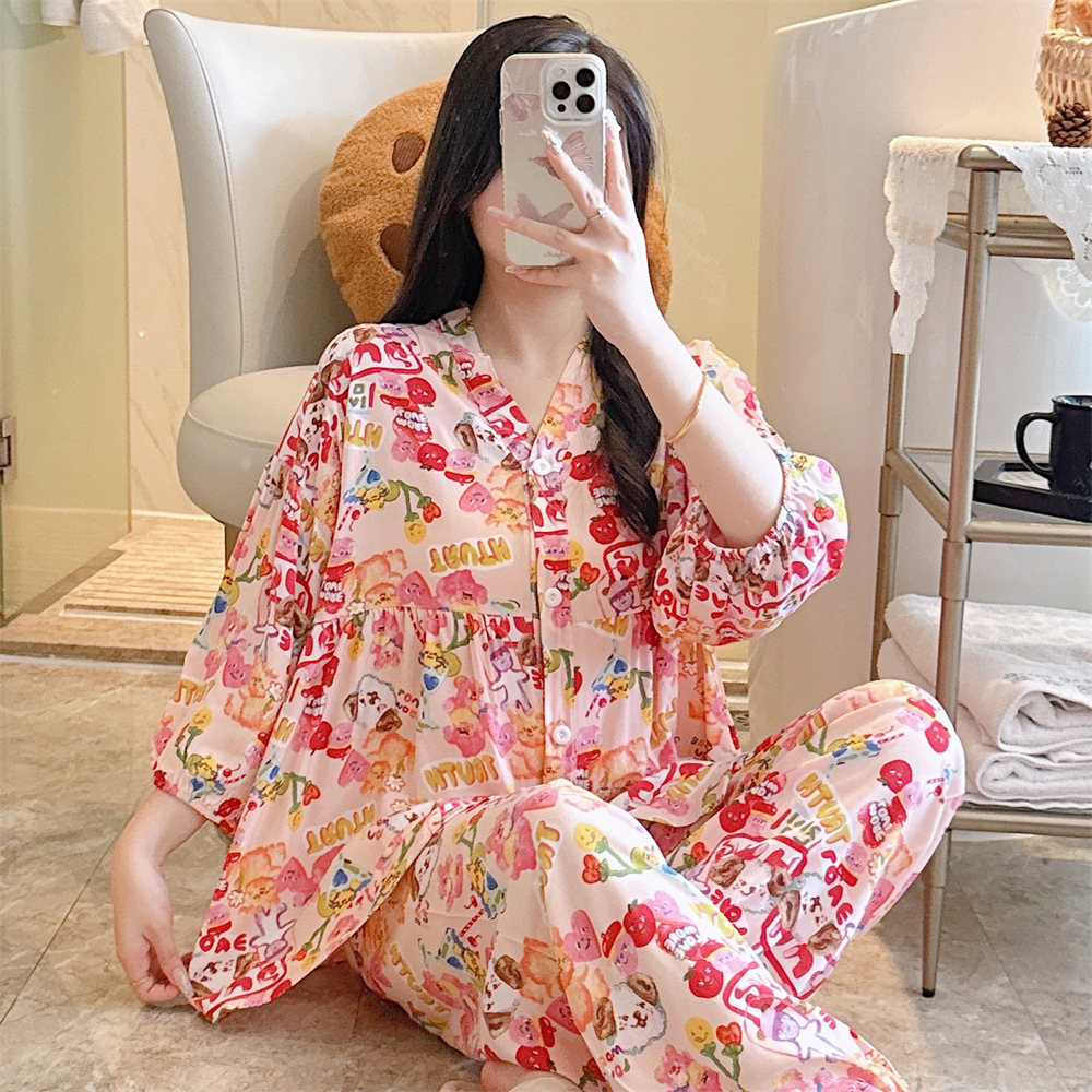 뉴 코튼 실크 파자마 여성 달콤한 봄과 여름 아우터 입고 플러스 사이즈 한국 스타일 달콤한 자른 슬리브 바지 하이 엔드 홈스토어 가기