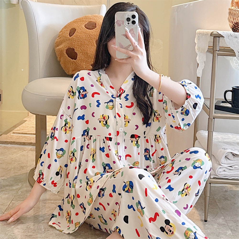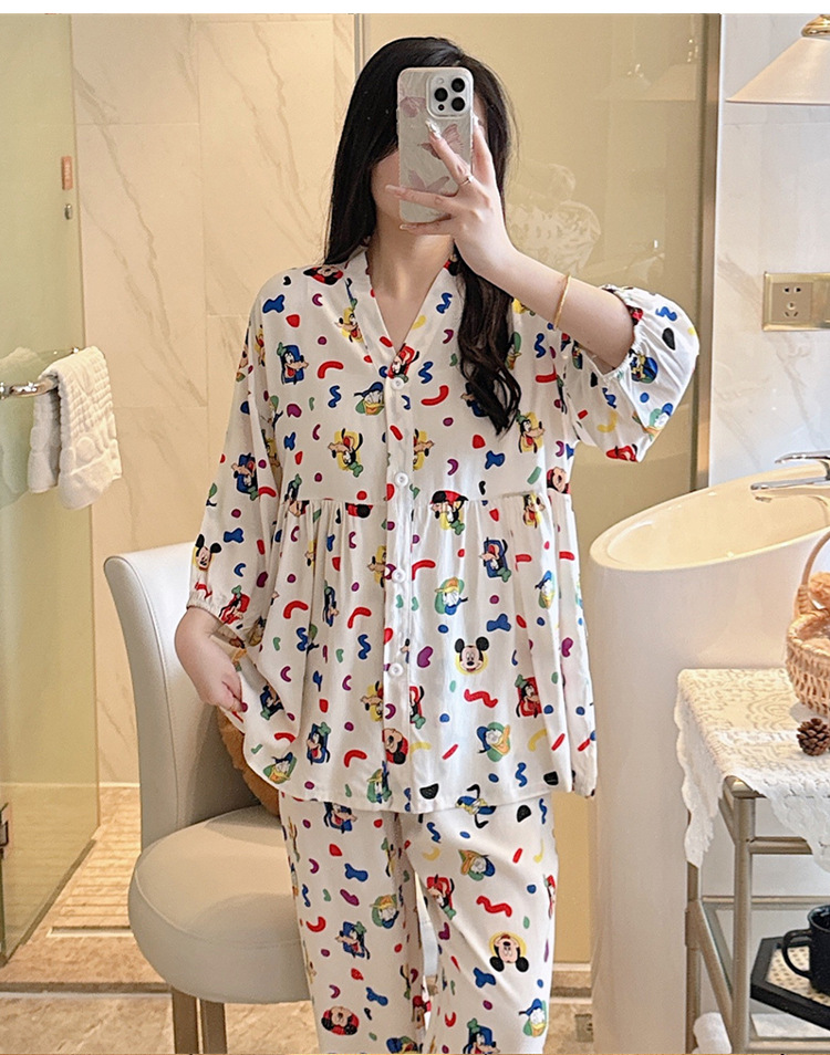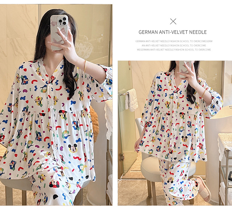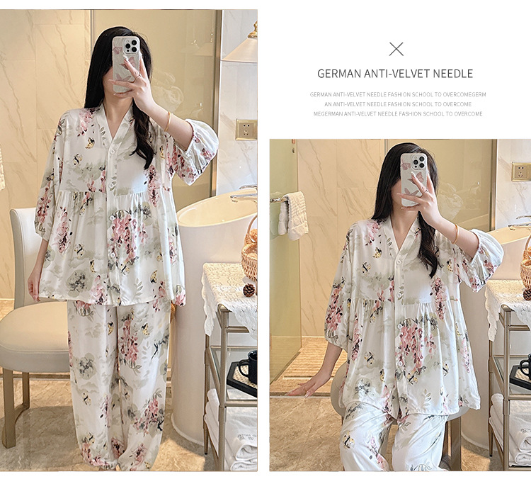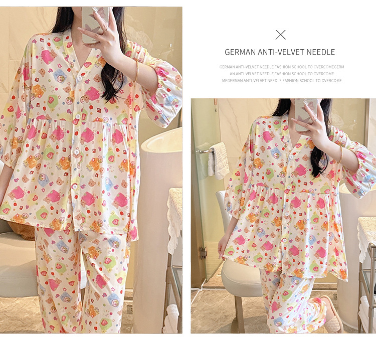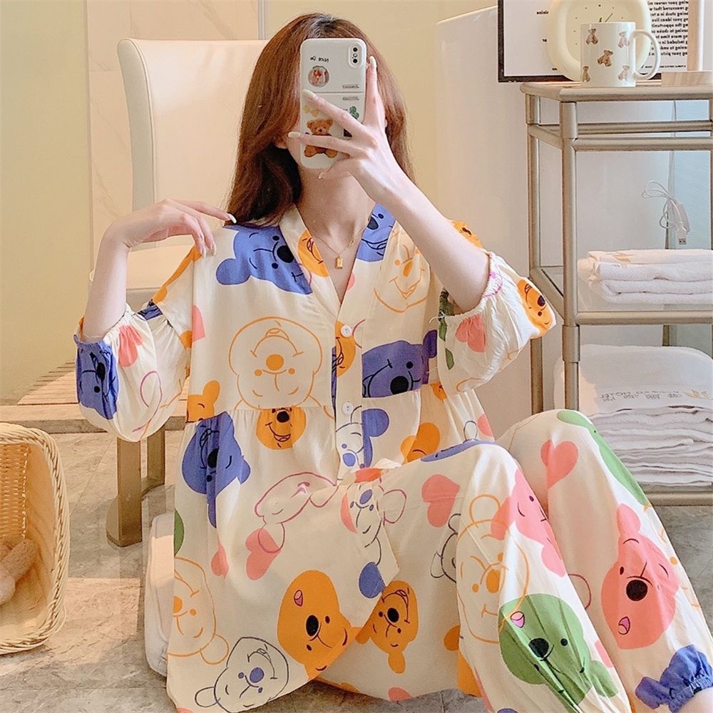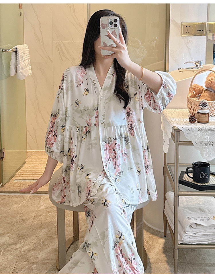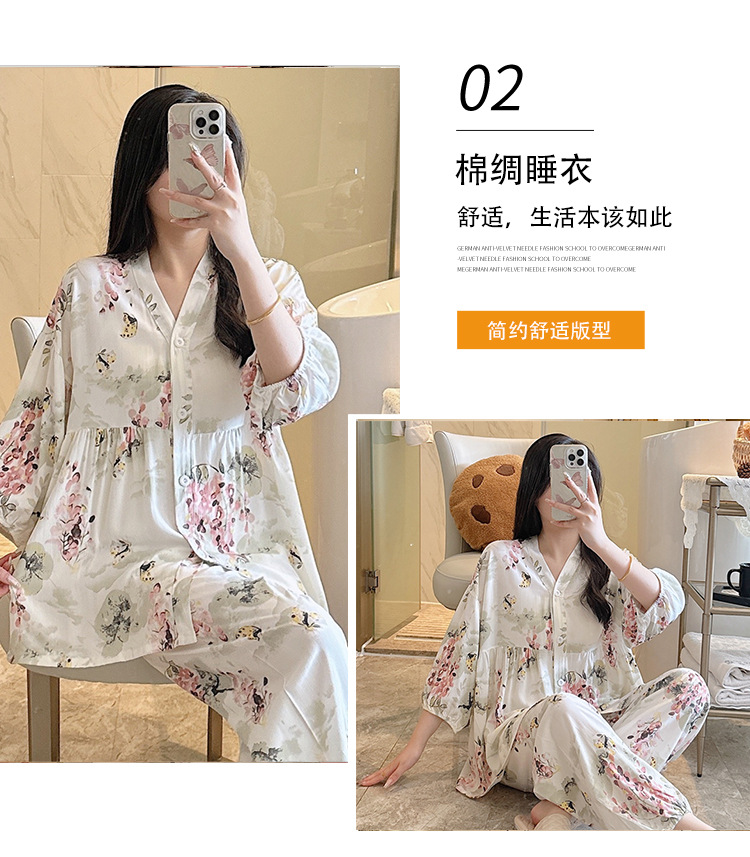 뉴 코튼 실크 파자마 여성 달콤한 봄과 여름 아우터 입고 플러스 사이즈 한국 스타일 달콤한 자른 슬리브 바지 하이 엔드 홈스토어 가기