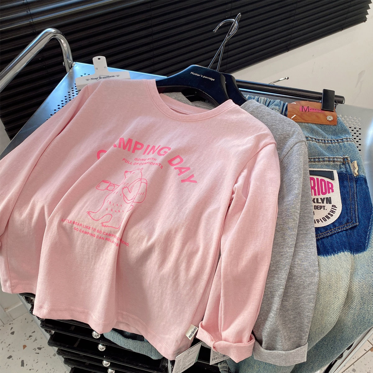 소년 순면 티셔츠 2025 중대형 어린이 대비 색상 접합 한국식 긴팔 바닥 셔츠 베이비 스웨트 셔츠 Little Boy t스토어 가기