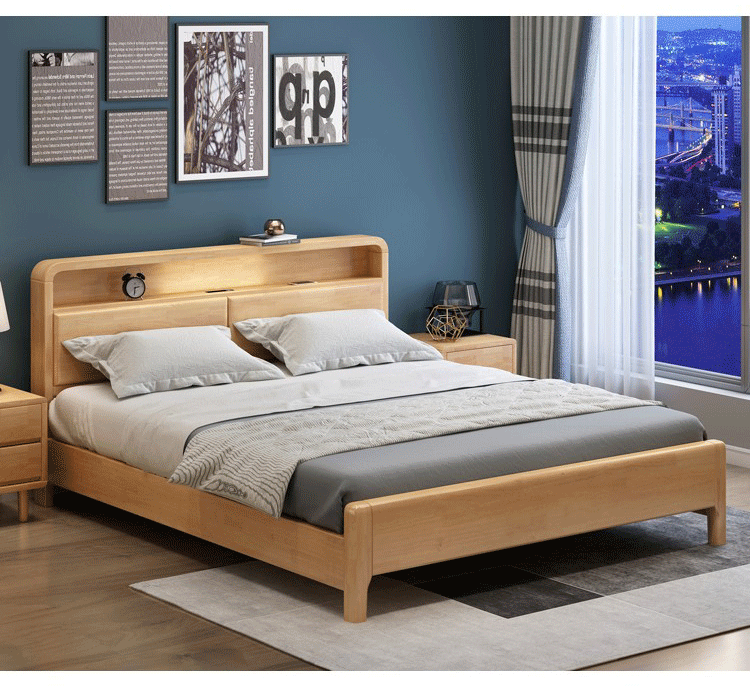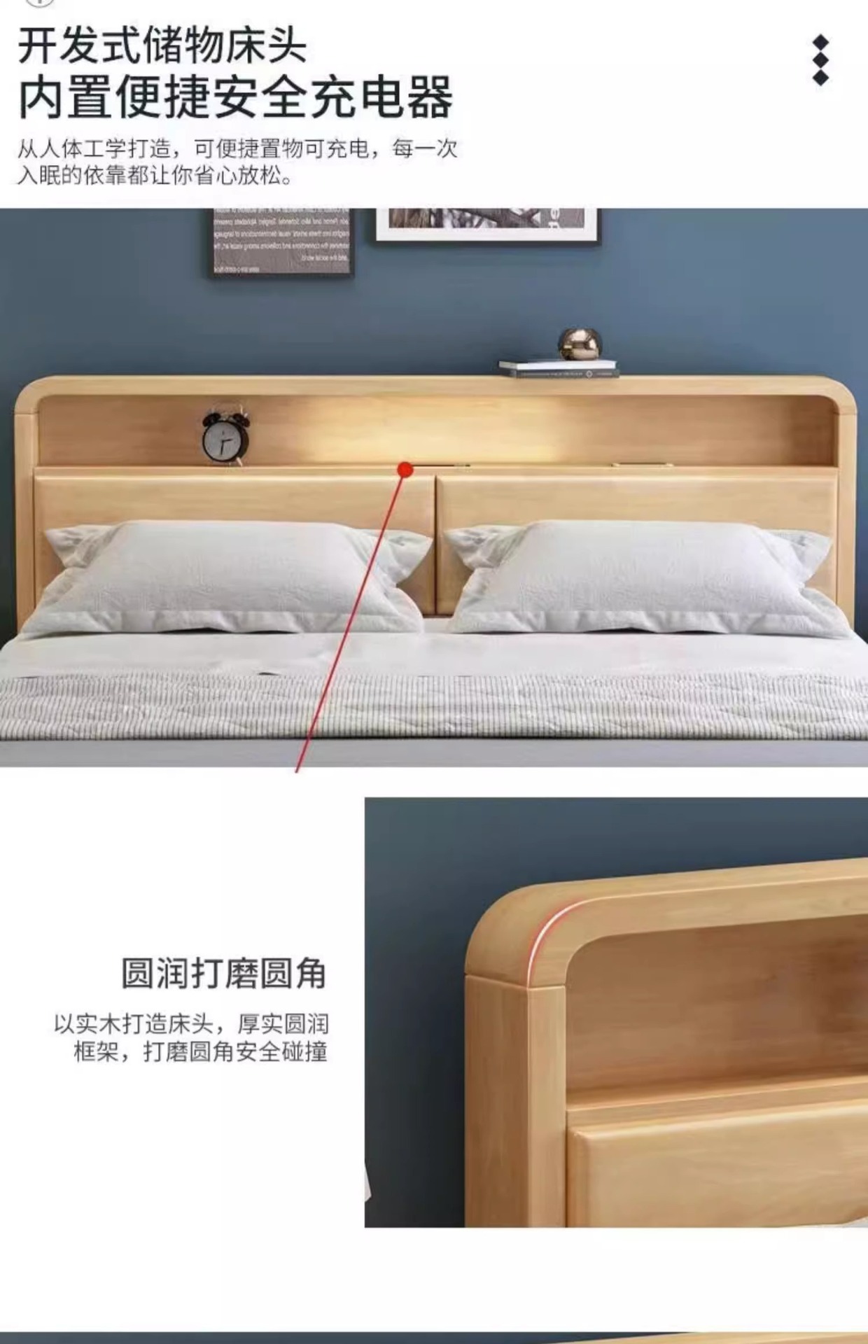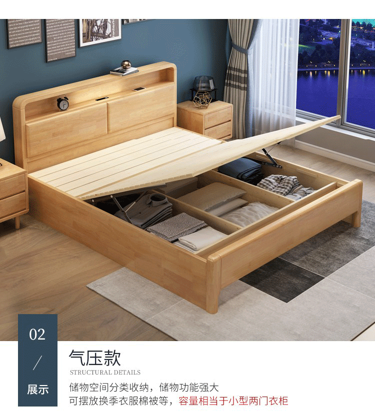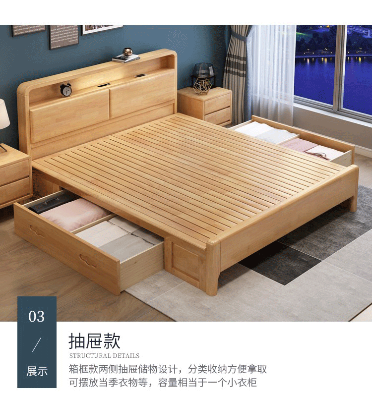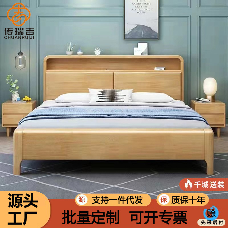 북유럽 통나무 가구 도매 단단한 나무 침대 마스터 침실 1.8 m 더블 퀸 침대 높은 상자 저장 침대 1.5 m 싱글 침대스토어 가기