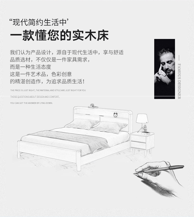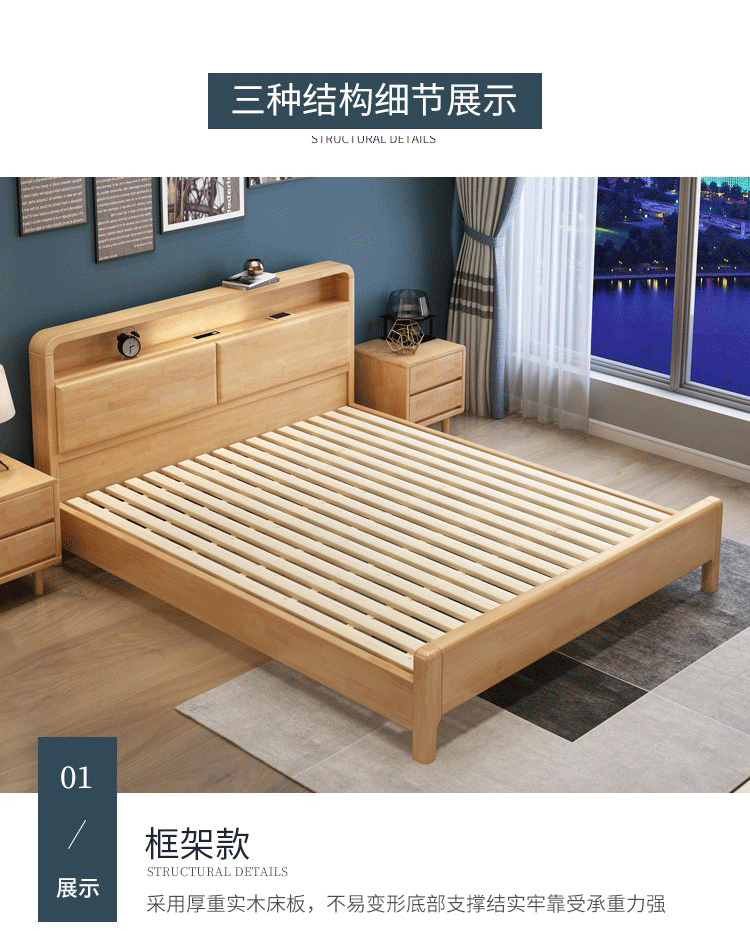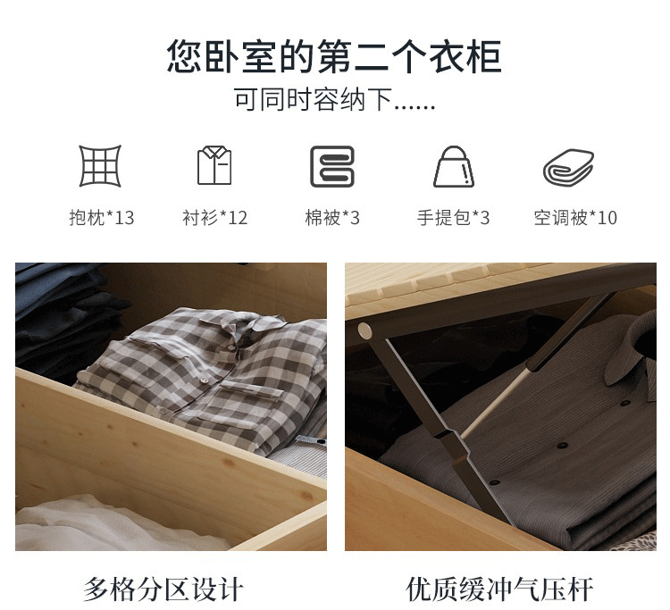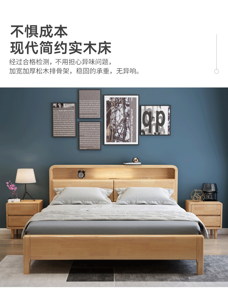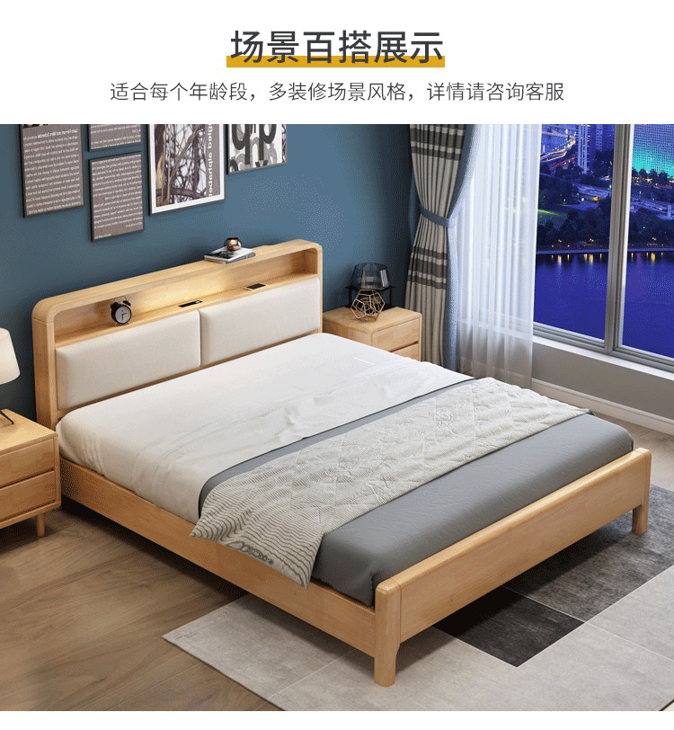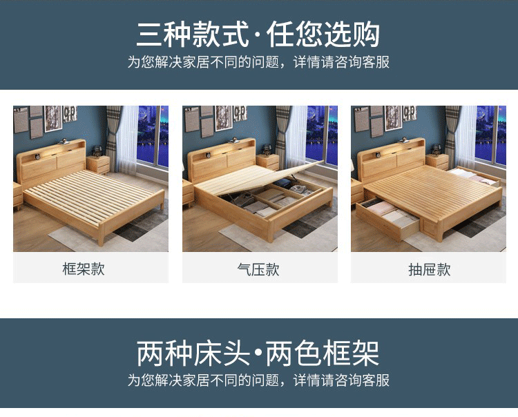 북유럽 통나무 가구 도매 단단한 나무 침대 마스터 침실 1.8 m 더블 퀸 침대 높은 상자 저장 침대 1.5 m 싱글 침대스토어 가기