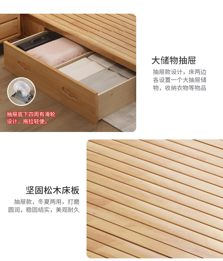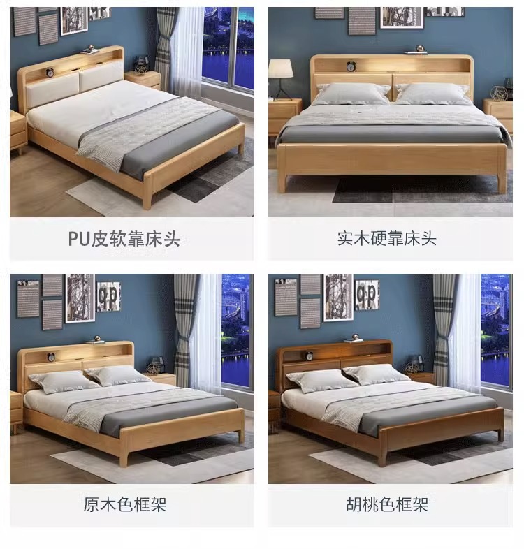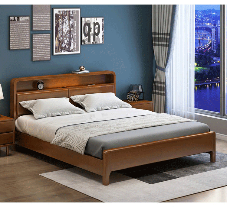 북유럽 통나무 가구 도매 단단한 나무 침대 마스터 침실 1.8 m 더블 퀸 침대 높은 상자 저장 침대 1.5 m 싱글 침대