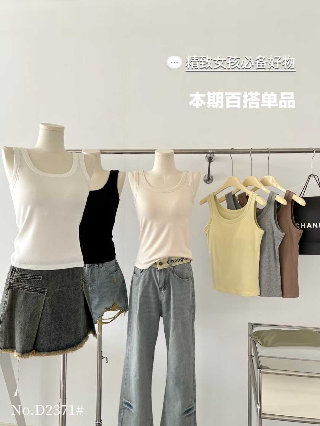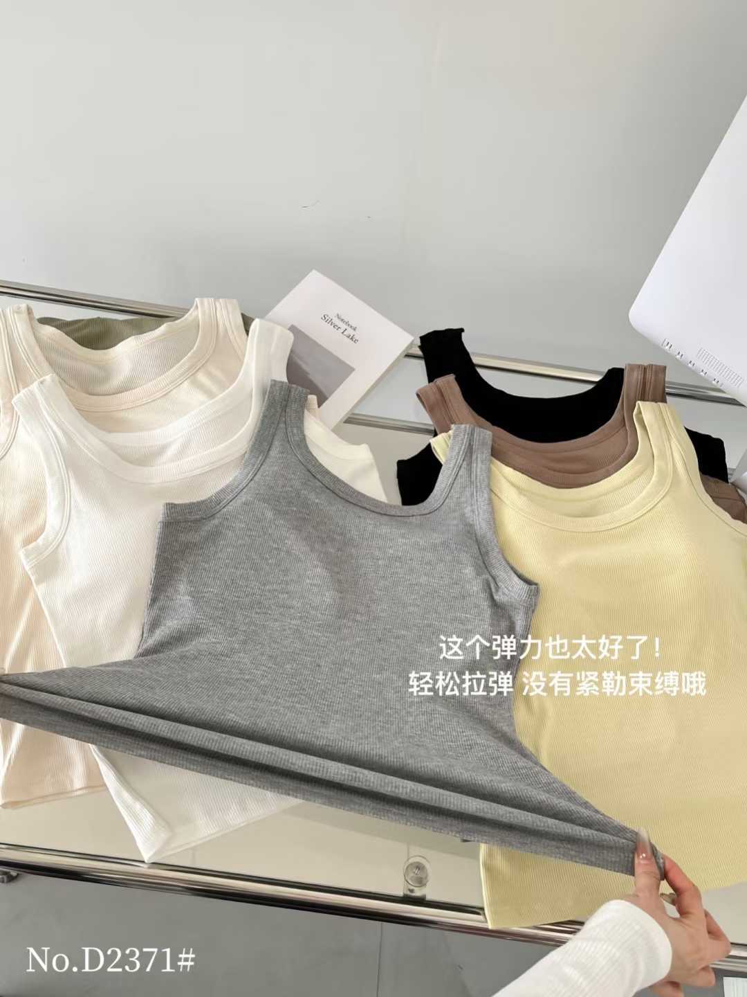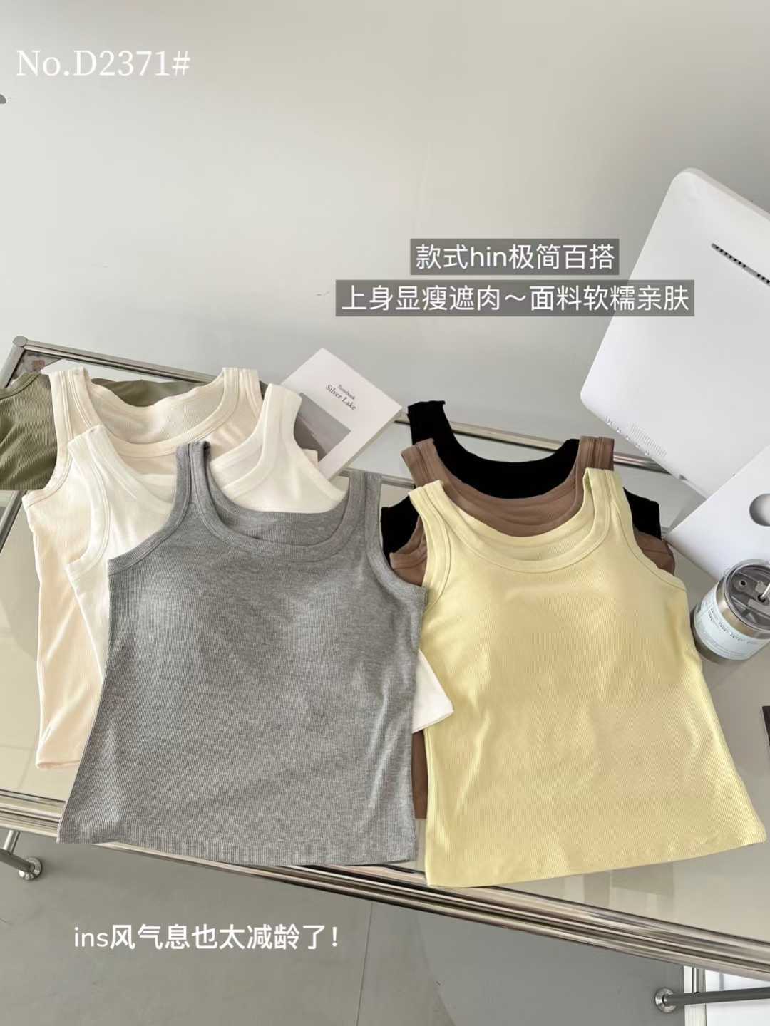 봄, 여름 가슴 패드 슬링 하이 엔드 센스 아우터 웨어 폭발 솔리드 라운드 넥 작은 니트 보텀 조끼 여성을위한스토어 가기