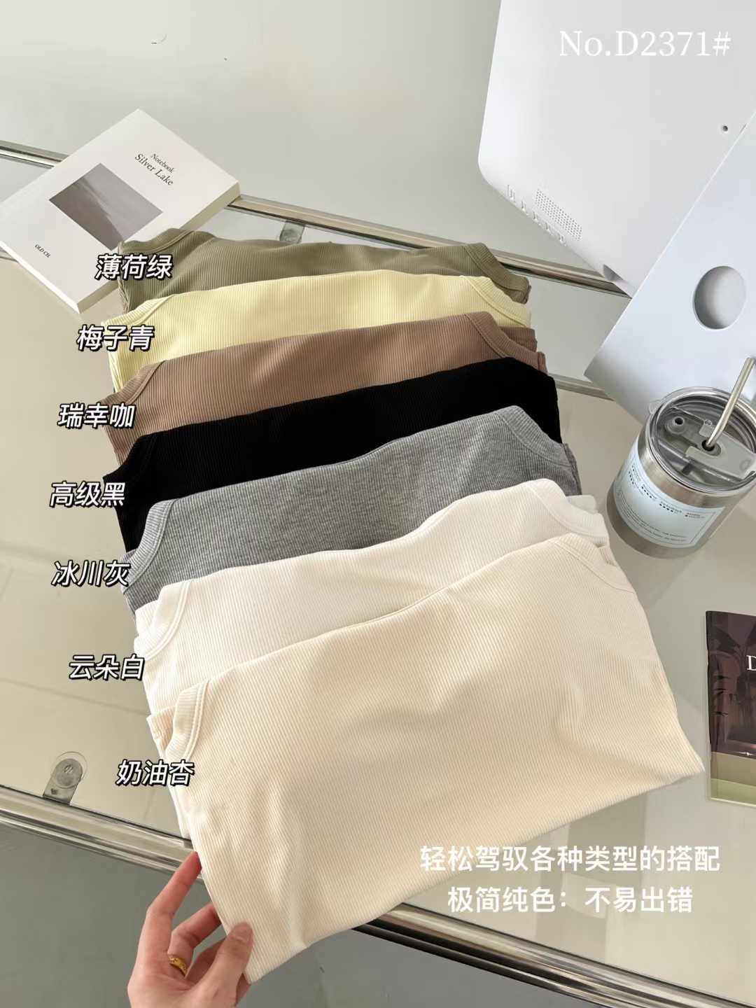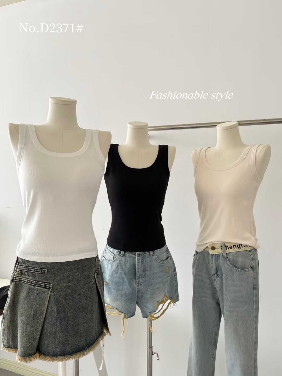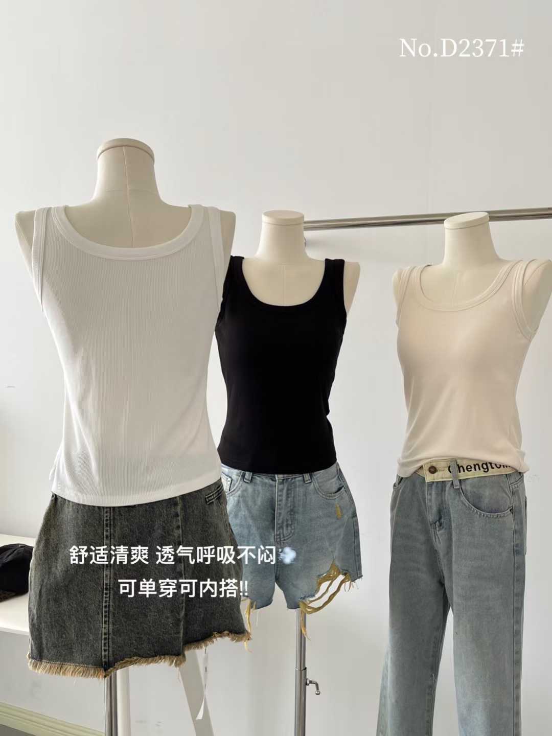 봄, 여름 가슴 패드 슬링 하이 엔드 센스 아우터 웨어 폭발 솔리드 라운드 넥 작은 니트 보텀 조끼 여성을위한스토어 가기