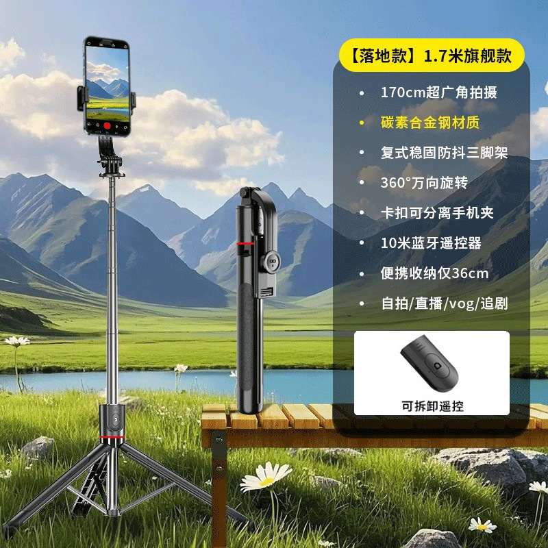 F15 확장형 1.7m 핸드헬드 셀카봉 여행용 휴대용 삼각대 블루투스 사진 촬영 라이브 방송 휴대폰 거치대스토어 가기