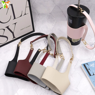新款夏日小清新皮革杯套海滨游玩百搭挂绳杯套便携实用出行道具