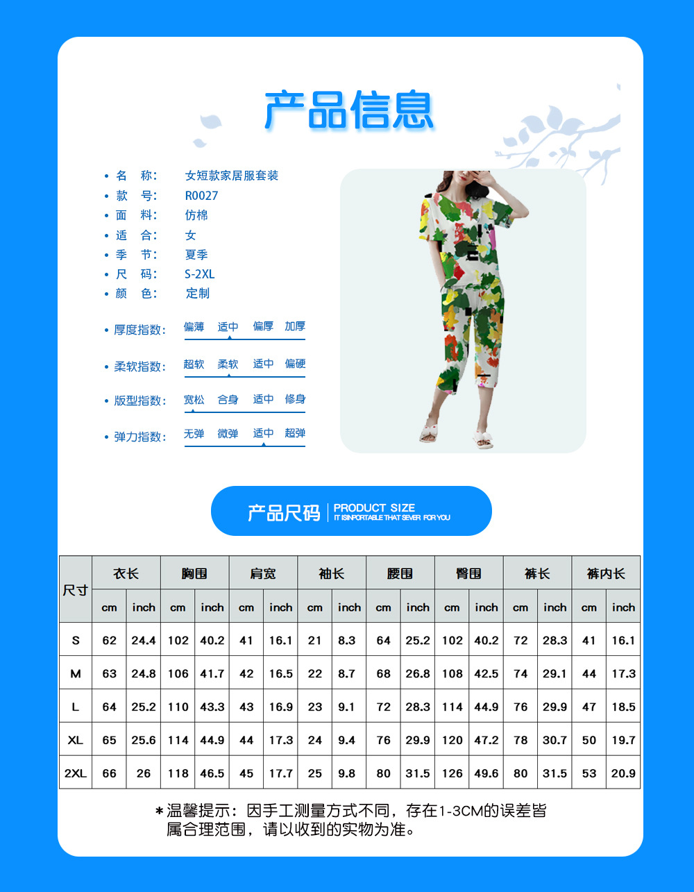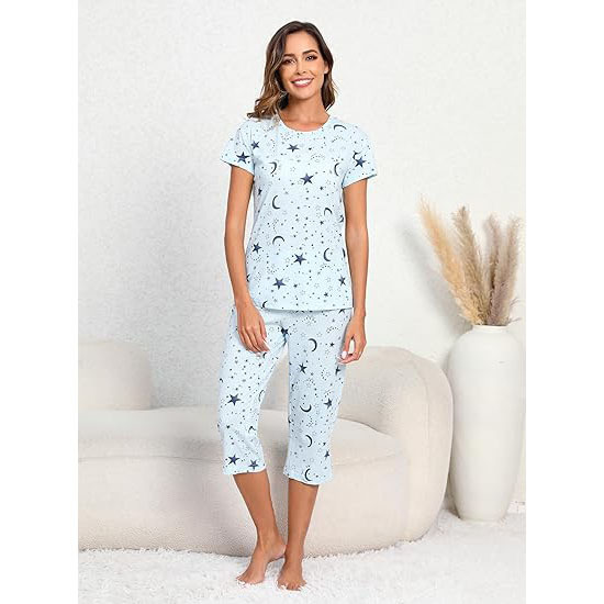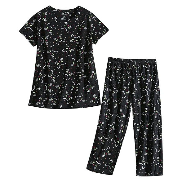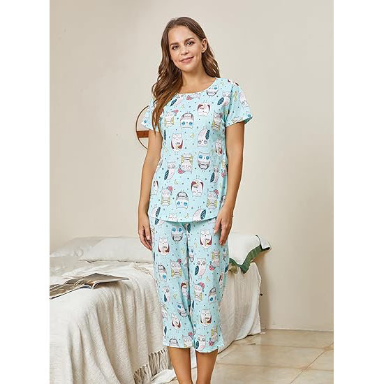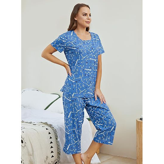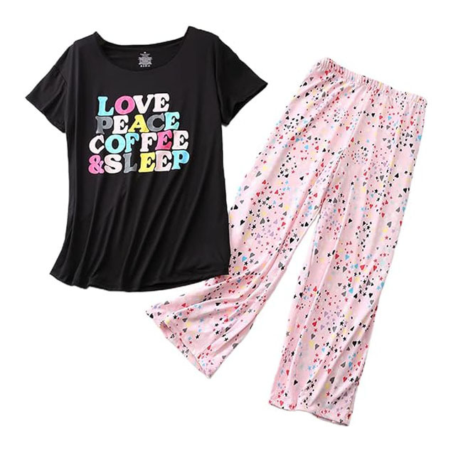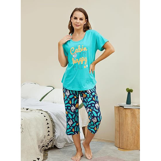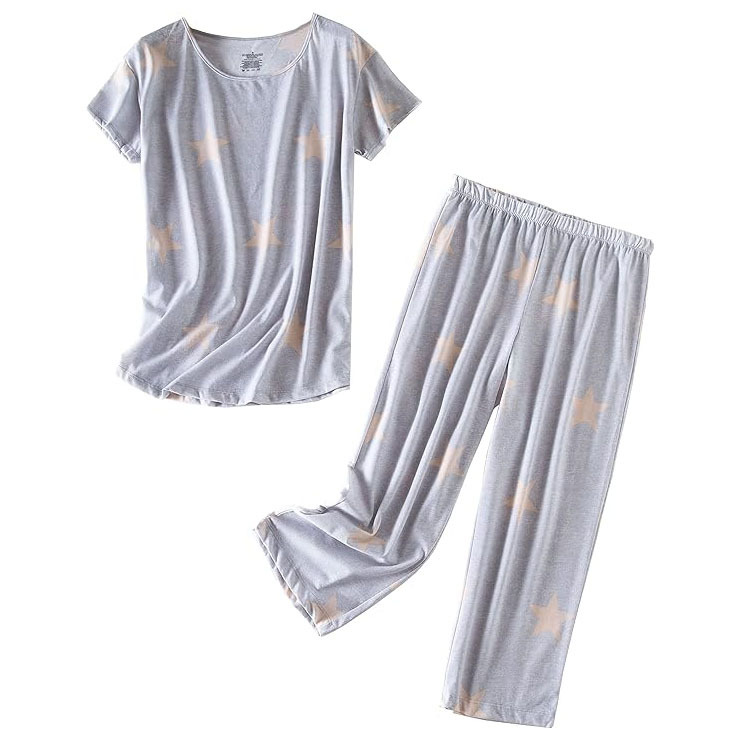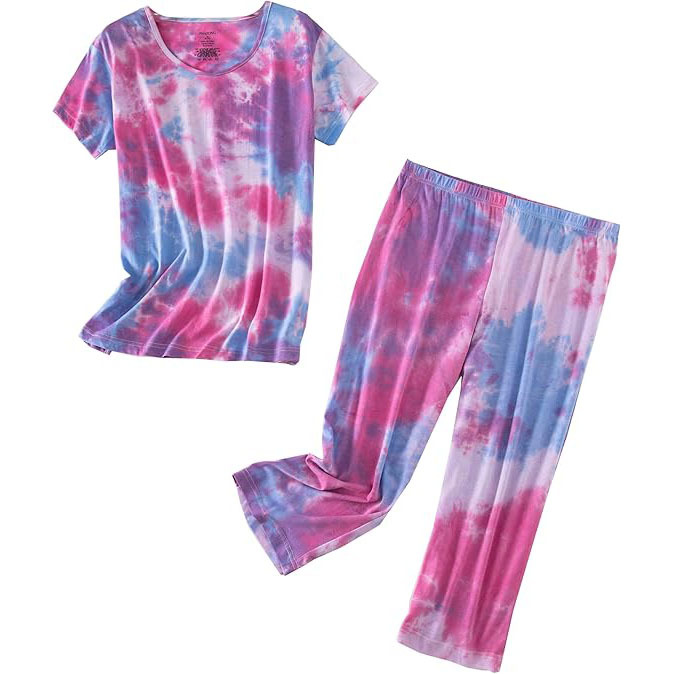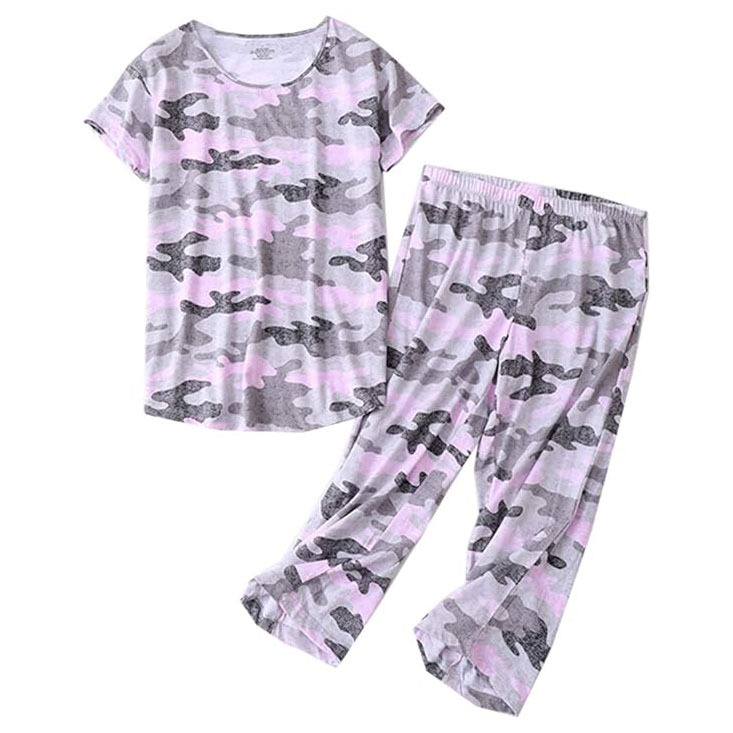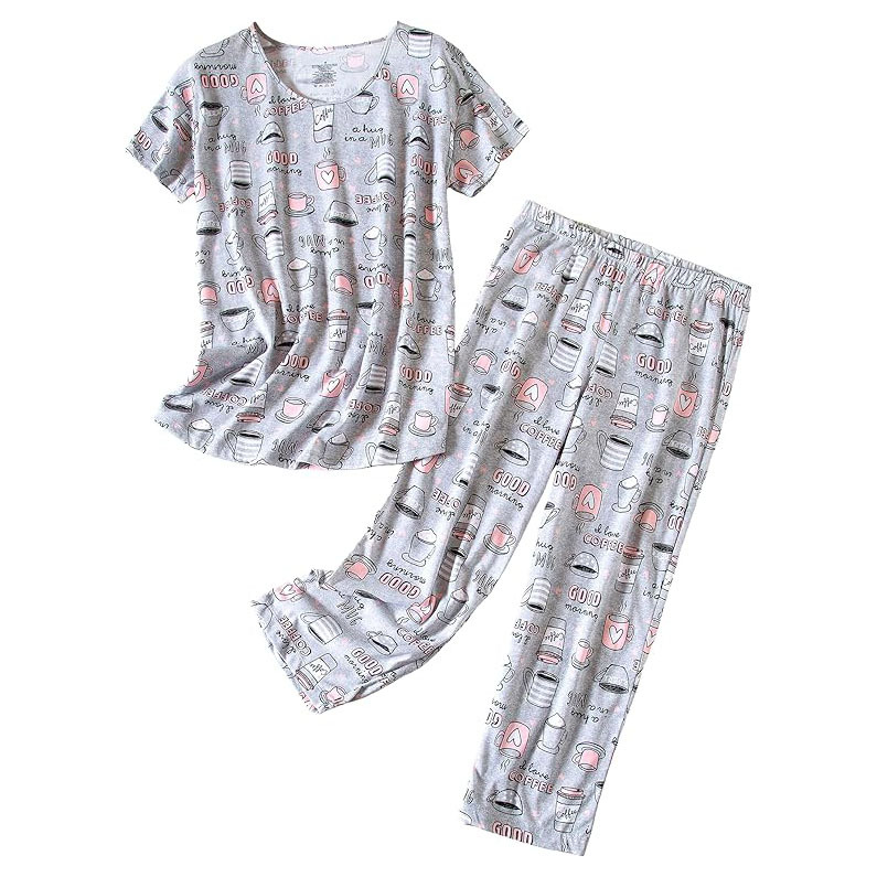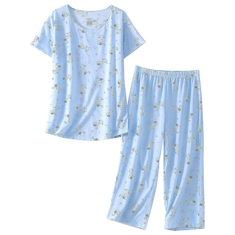 유럽과 미국의 여성 잠옷 재미있는 인쇄 세트 국경 간 새로운 캐주얼 편안한 통기성 홈 웨어 세트 자른 바지스토어 가기