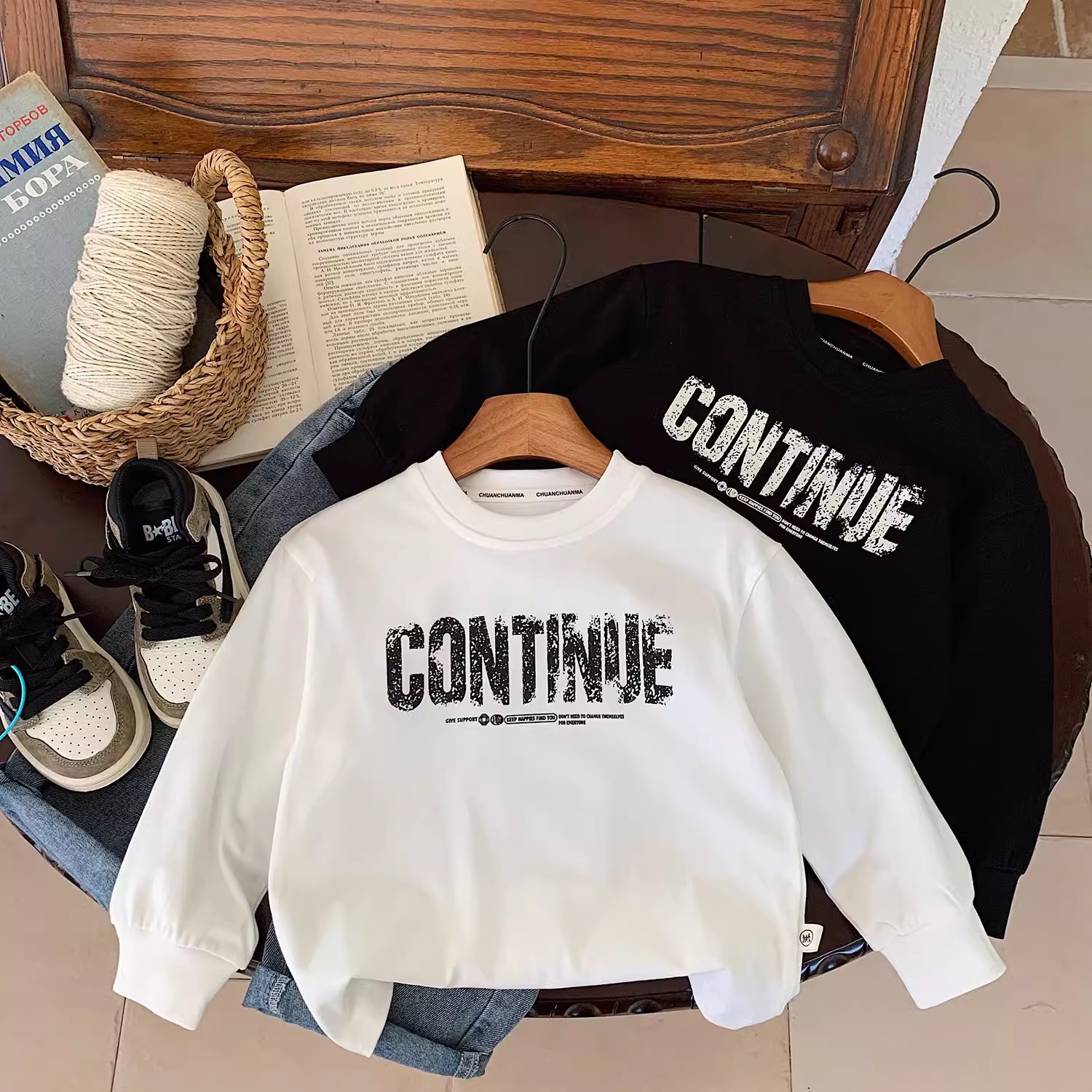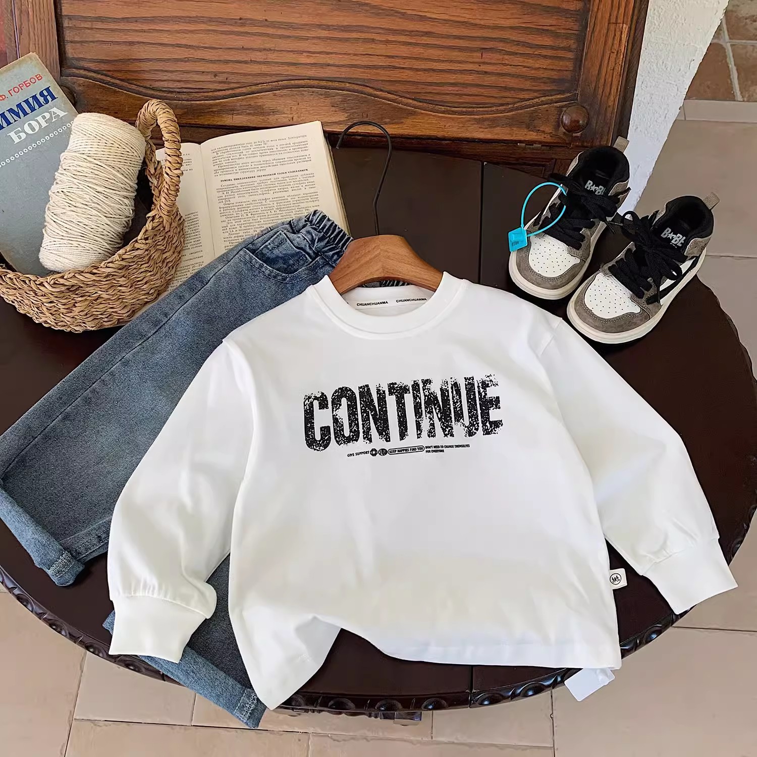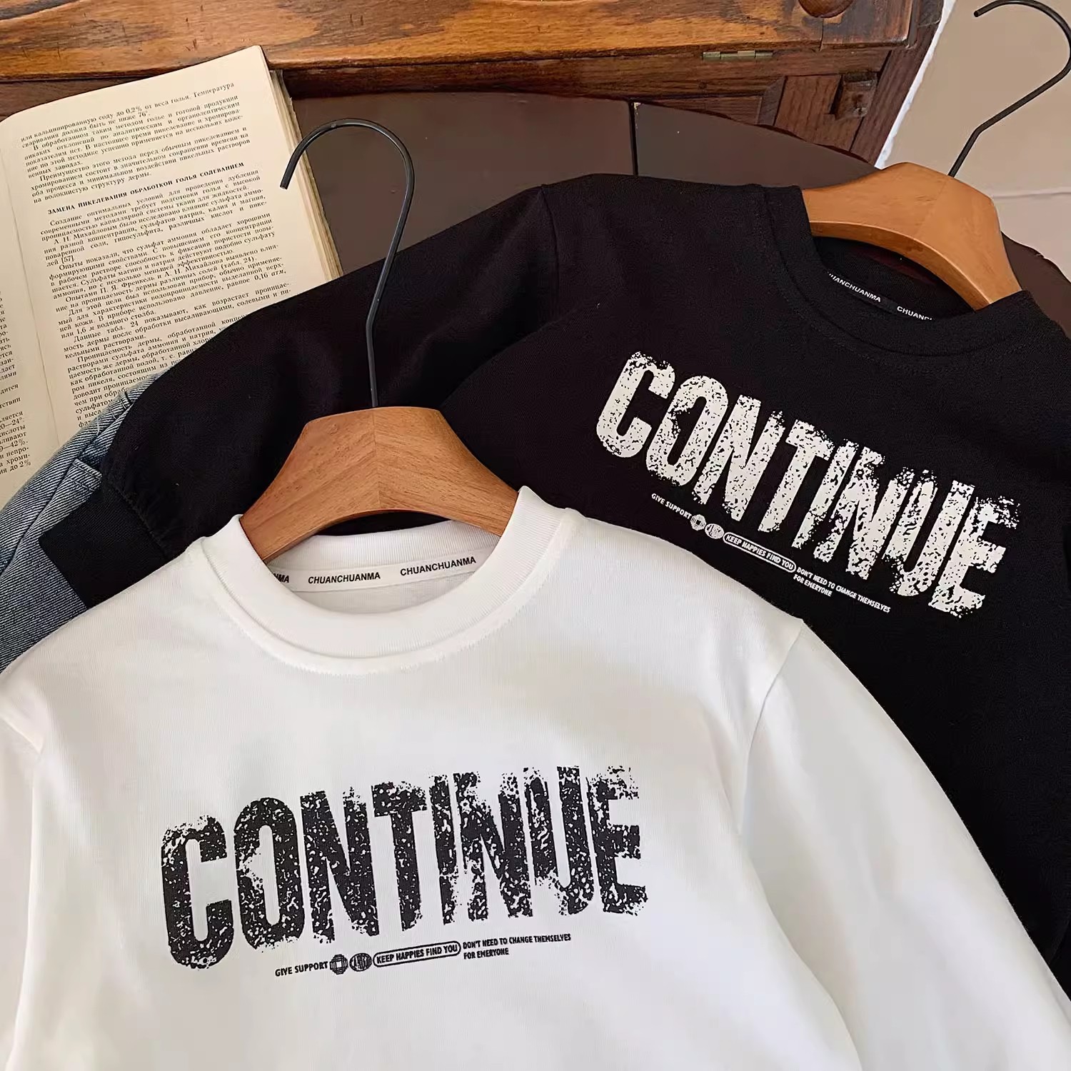 어린이 봄과 가을 새 면 긴팔 티셔츠 서양식 중대형 어린이 기지 남학생과 여학생을위한 내부 캐주얼 티셔츠스토어 가기