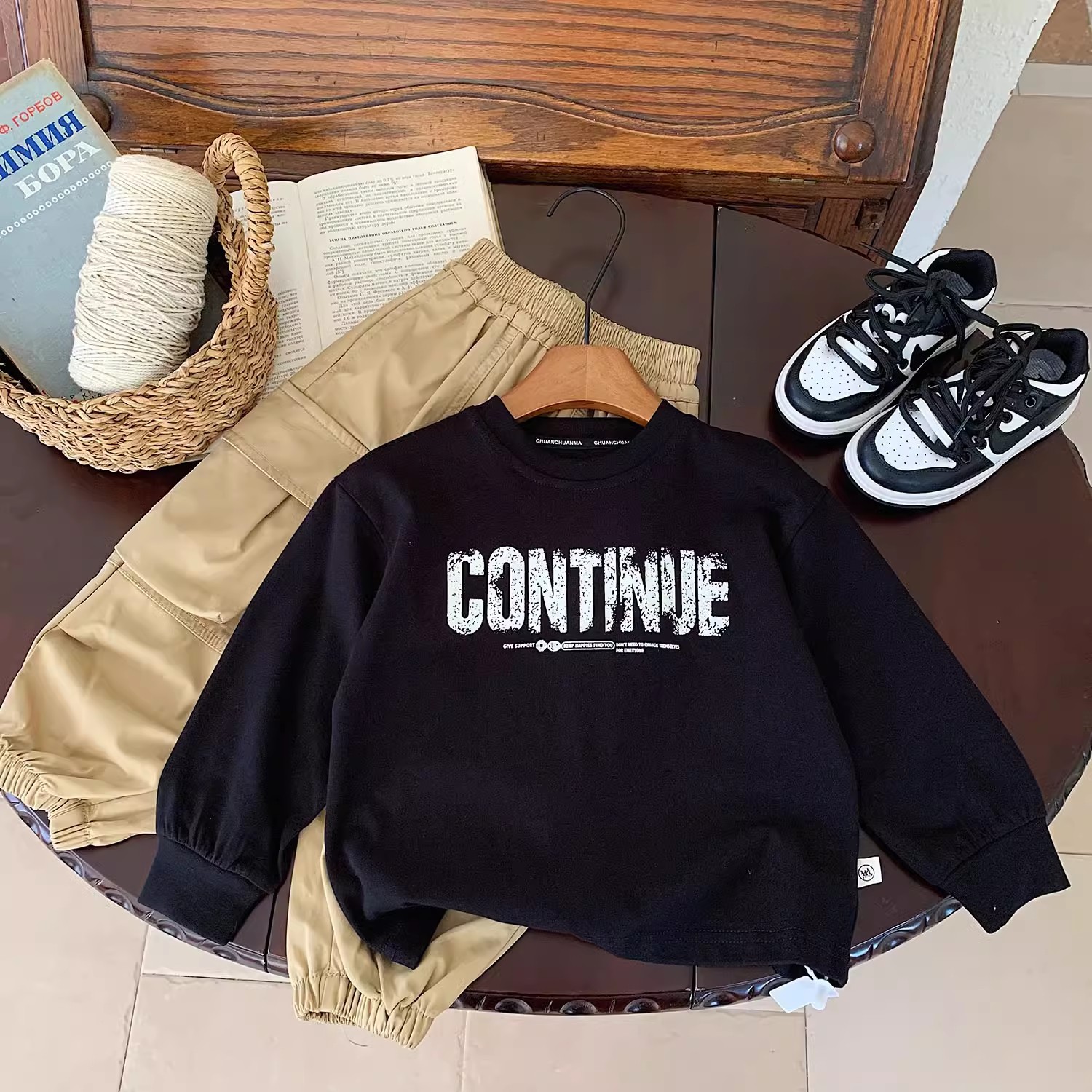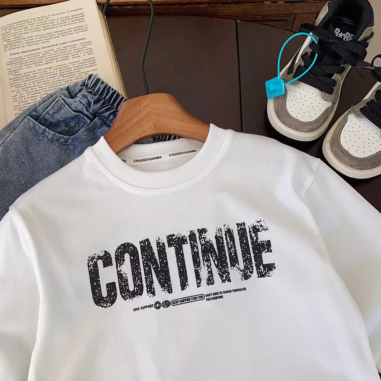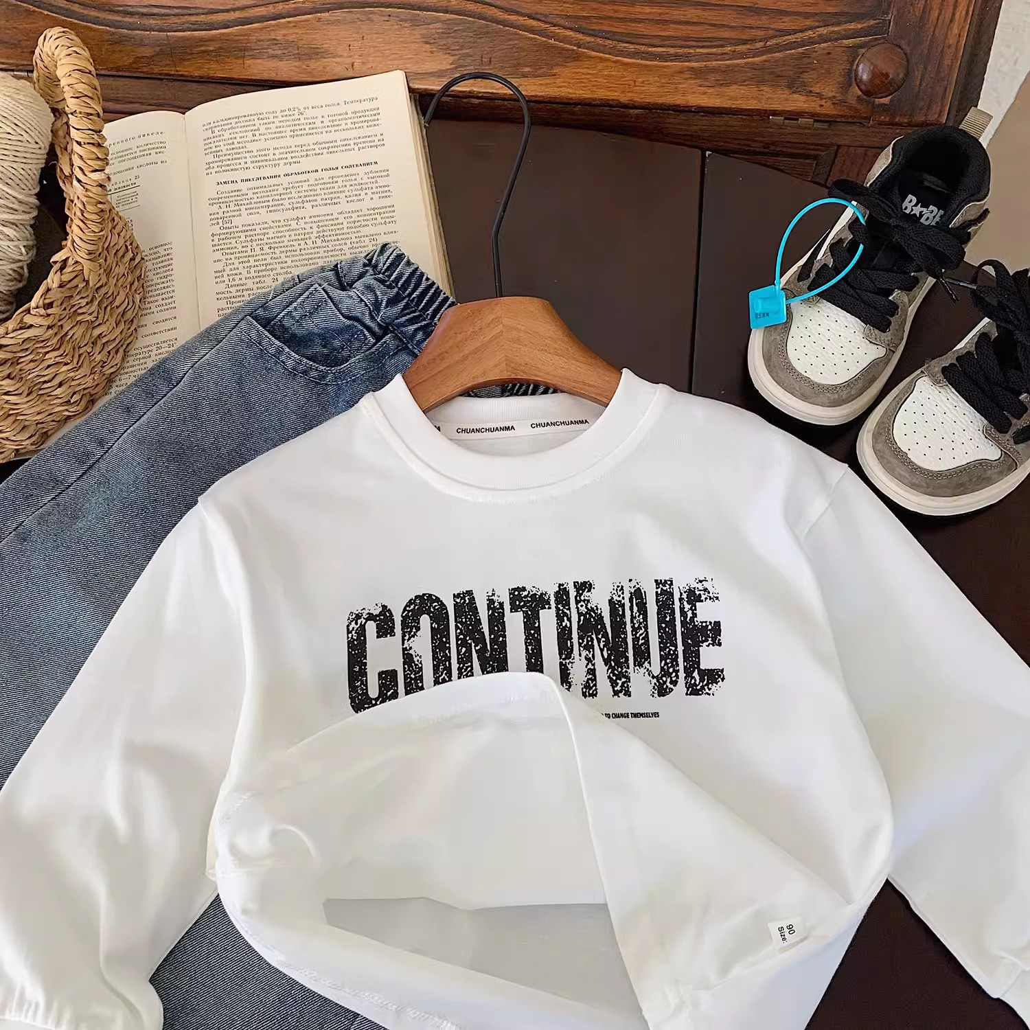 어린이 봄과 가을 새 면 긴팔 티셔츠 서양식 중대형 어린이 기지 남학생과 여학생을위한 내부 캐주얼 티셔츠스토어 가기