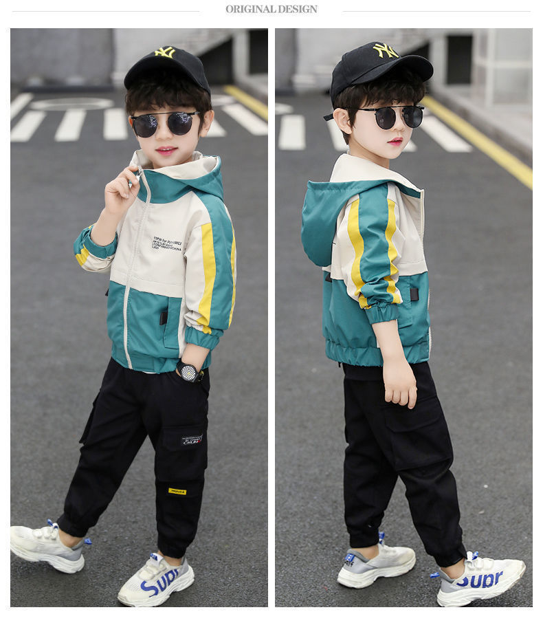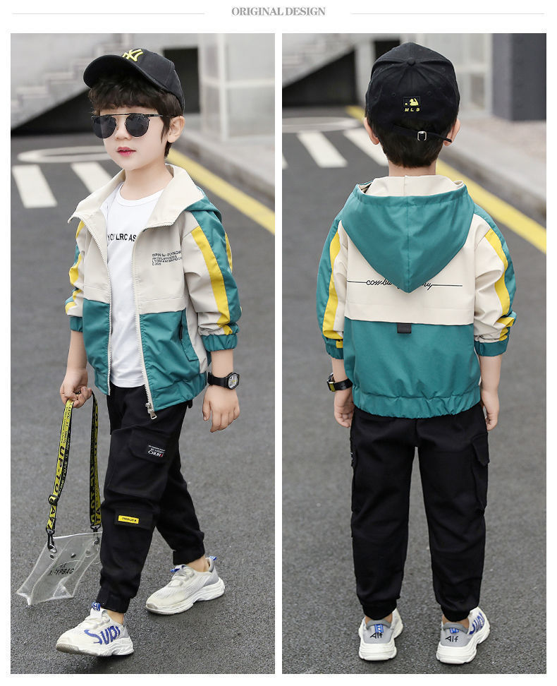 남학생 코트 2024 년 봄과 가을 새로운 소년 잘 생긴 바느질 최고의 어린이 서양식 중대형 어린이 캐주얼 코트스토어 가기