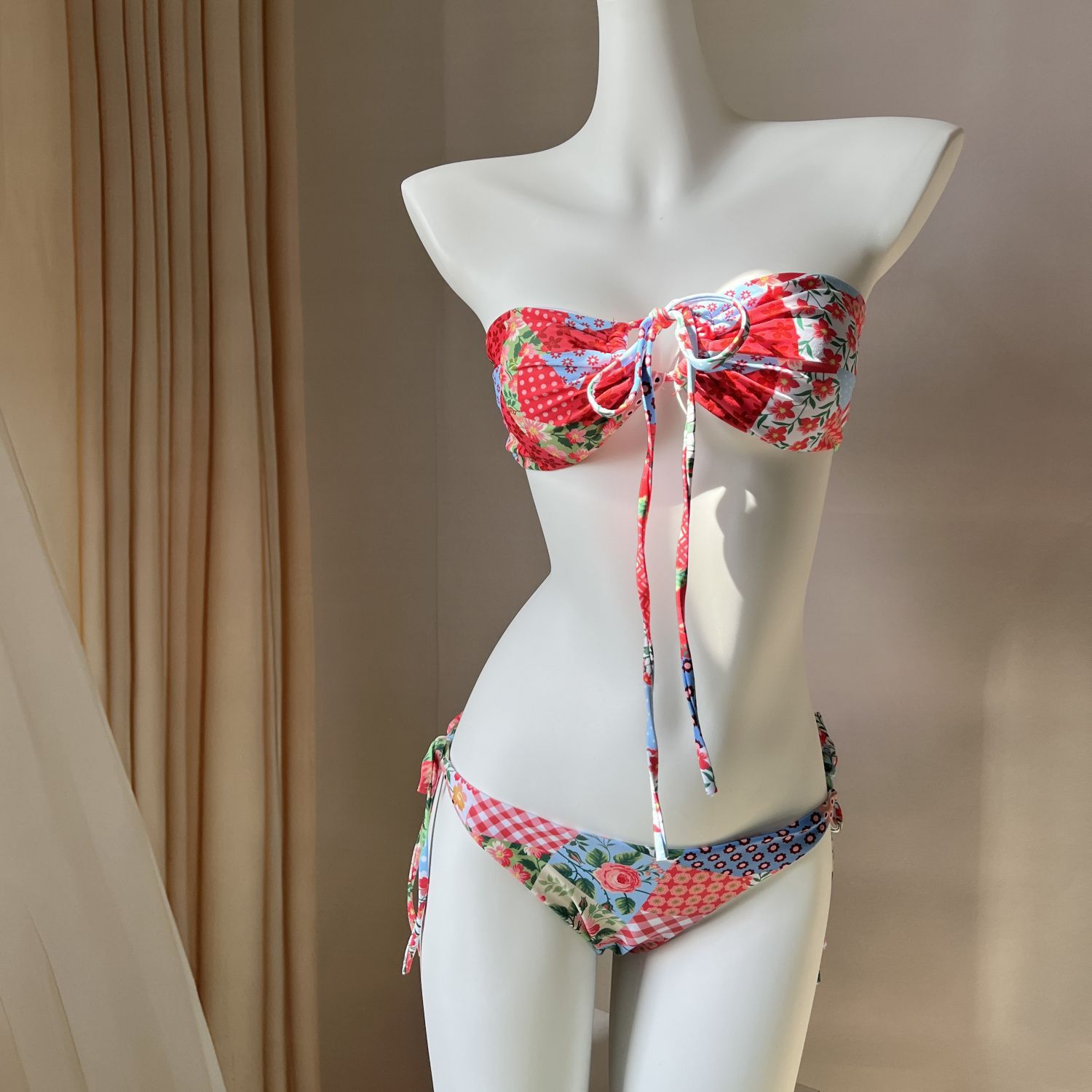 Mosricci 순수한 욕망 레드 화이트 민족 인쇄 비키니 분할 수영복 여성용 작은 가슴 튜브 상단 치마스토어 가기